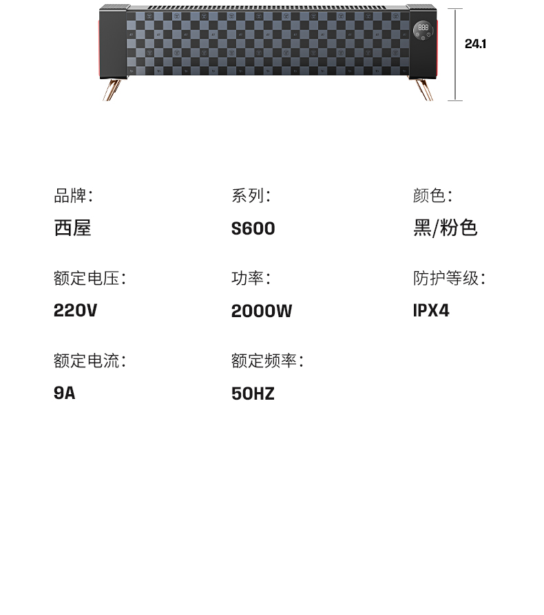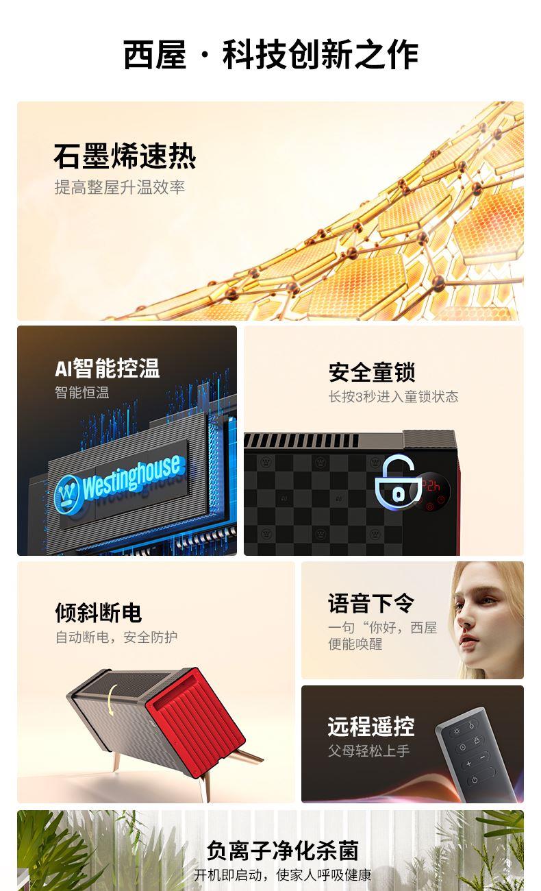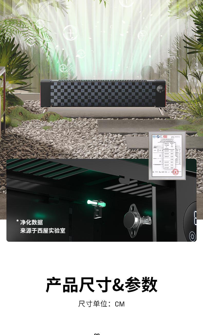 功率:1800W 毛重:3.6kg/4.4kg 衣架:0.76kg 产品尺寸:880*157*241mm 彩盒尺寸:930*175*240mm 衣架尺寸:745*180*35mm 石墨烯黑科技 智能语音交互 远程遥控 负离子群净化沉降 安全童锁多重保护 智能款遥控触屏