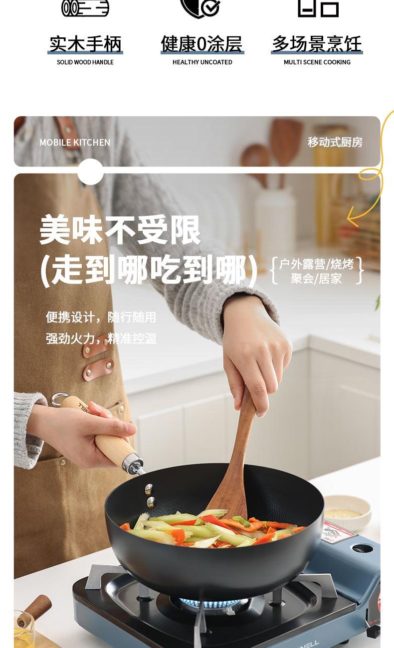 配 置:煎煮锅+卡式炉 材 质:优质铁基材 装 箱 数:8pcs/箱 两重防锈工艺,深层氮化,形成致密防锈层,锅体表面充分反应,硬度提高,耐磨性强。 煎炒炖煮炸,多样烹饪美食,随心烹饪,可上桌既是炊具又是餐具。 导热快速均匀,健康无涂层,肆意爆炒无负担。 实木手柄,握感舒适,铆钉工艺结构,坚固耐用。 便携设计,随行随用,强劲火力。 兼容性强,经济实用,电子脉冲点火,一按即燃,人性化设计,体验升级。 适用场景多,户外一炉搞定多元需求。