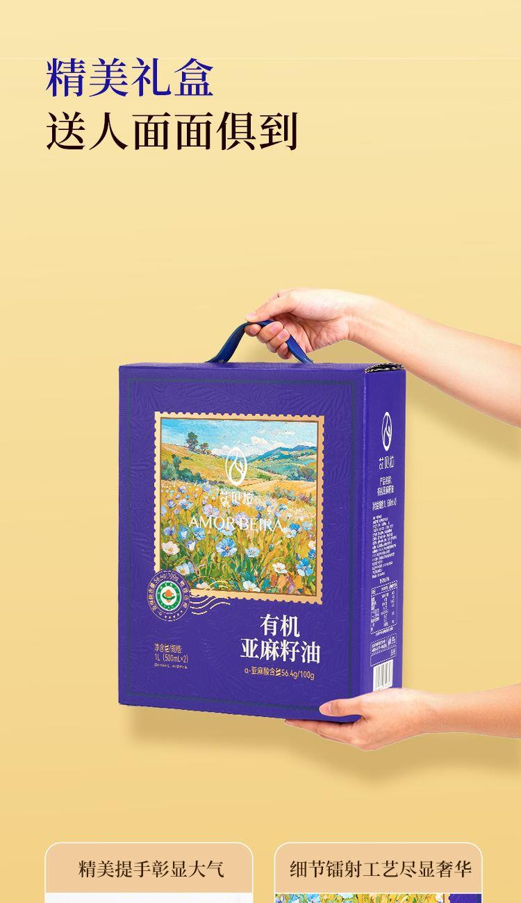 艾贝拉有机冷榨亚麻籽油礼盒500ml*2