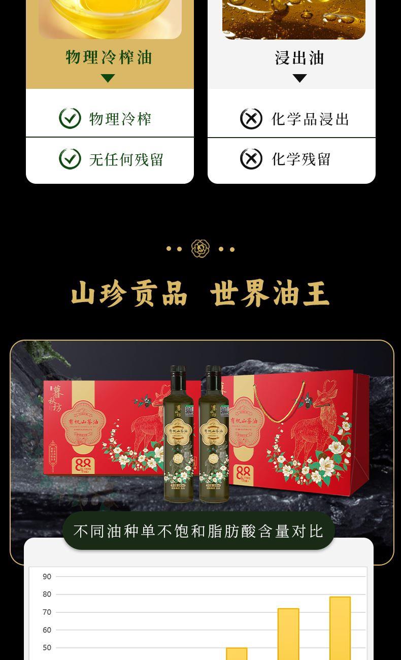 1、纯正有机,物理压榨,世界硒都,恩施原产; 2、脂肪酸黄金配比1:8:1,符合欧米伽膳食食用油标准; 3、不饱和脂肪酸含量为88.9%,居所列食用油首位; 4、高烟点,少油烟。