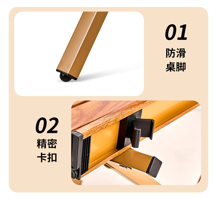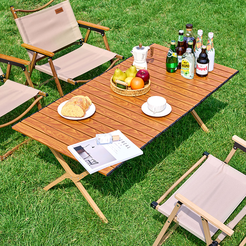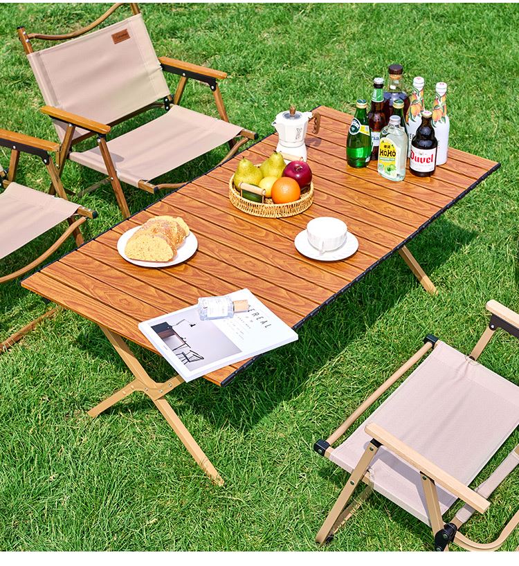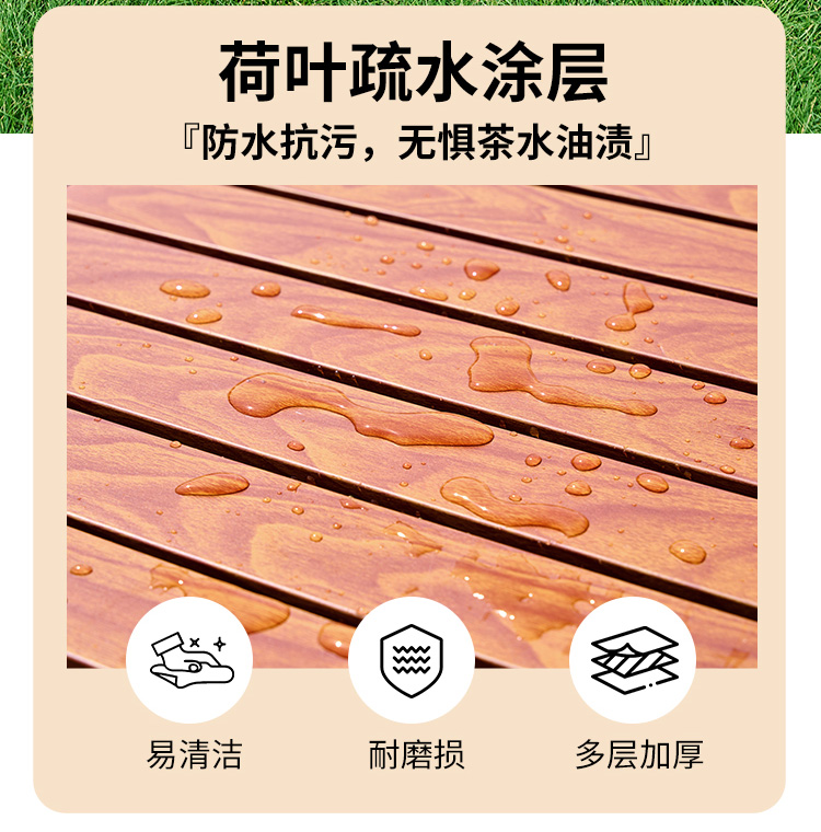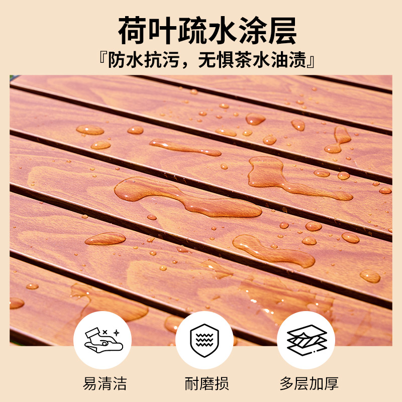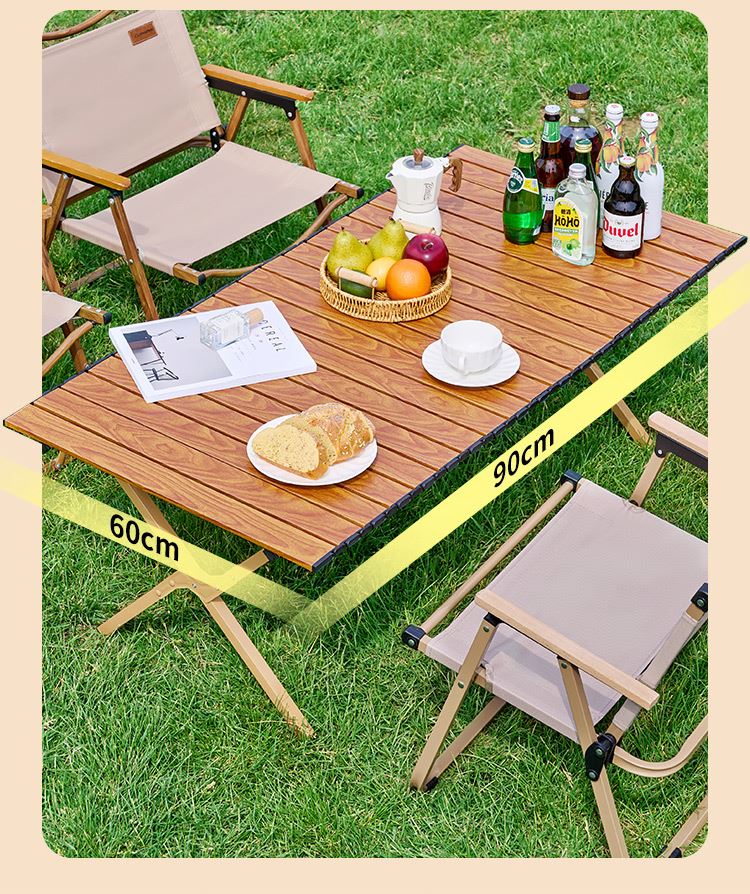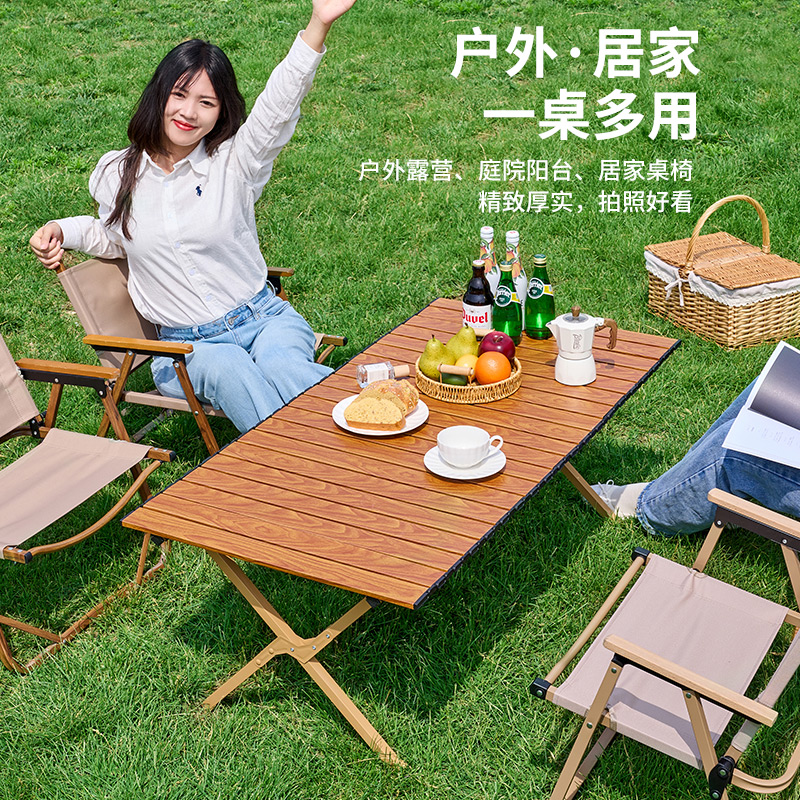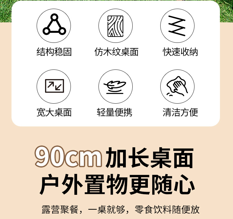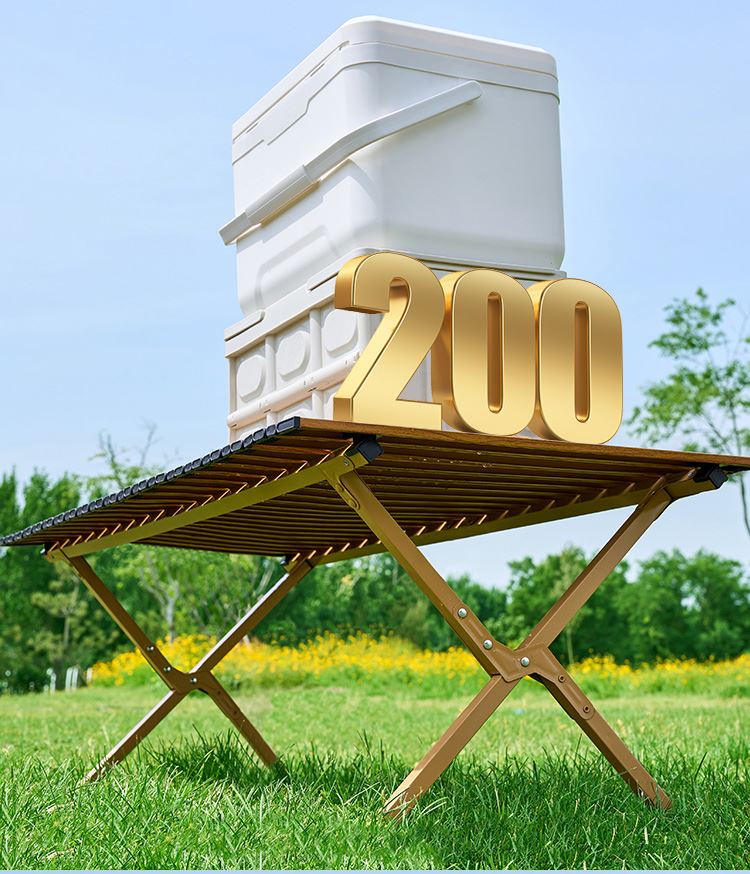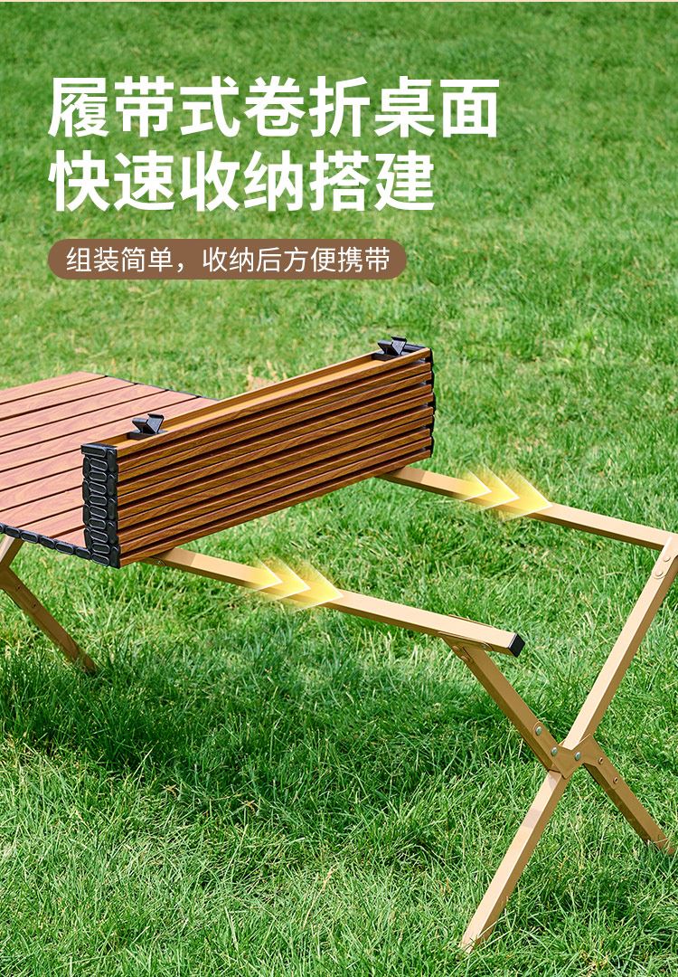 材质碳钢、PP、铁(连接件) 静压承重200斤 重量3.7kg 适用人数4-6人 结构稳固、宽大桌面、仿木纹桌面、轻量便携、快速收纳、清洁方便、 精选优质碳钢经久耐用 桌面精致木纹多层防护工艺 碳钢防水·耐腐蚀·防刮蹭