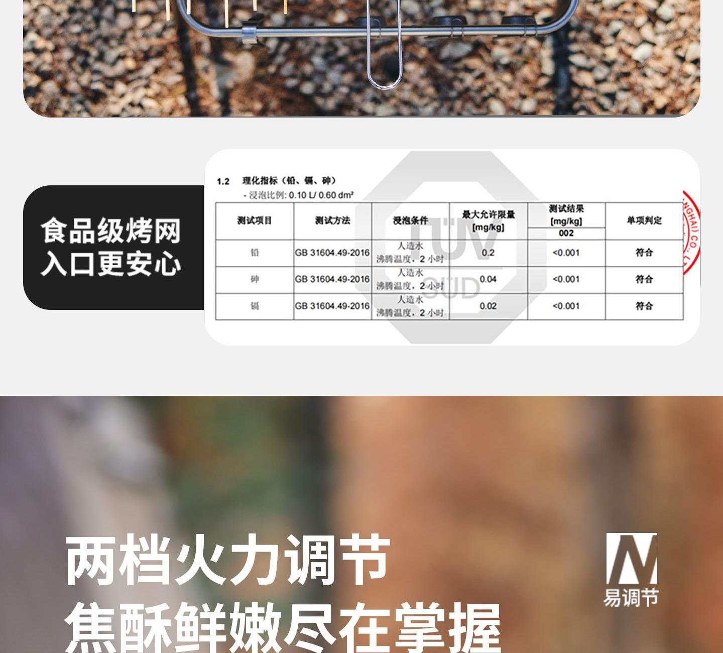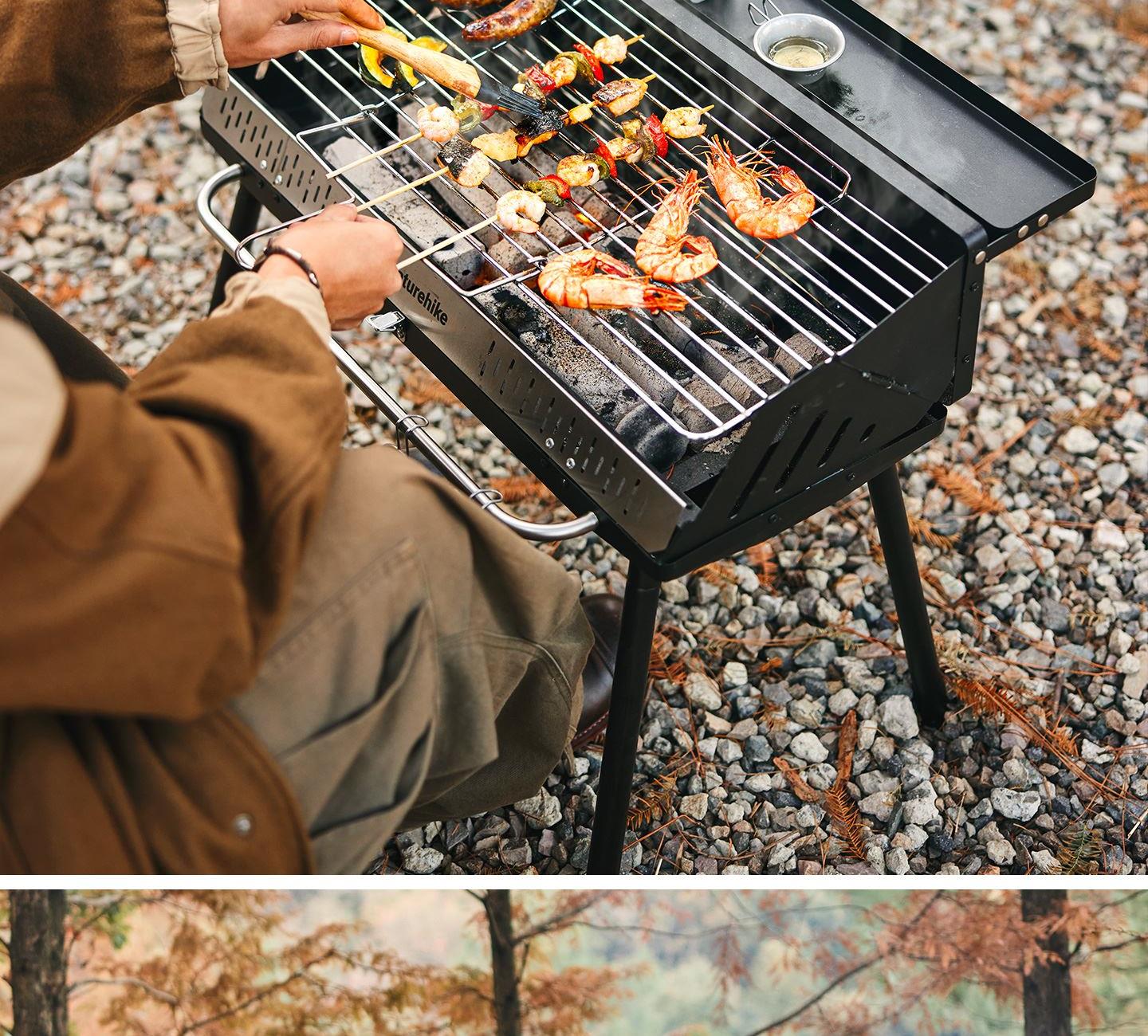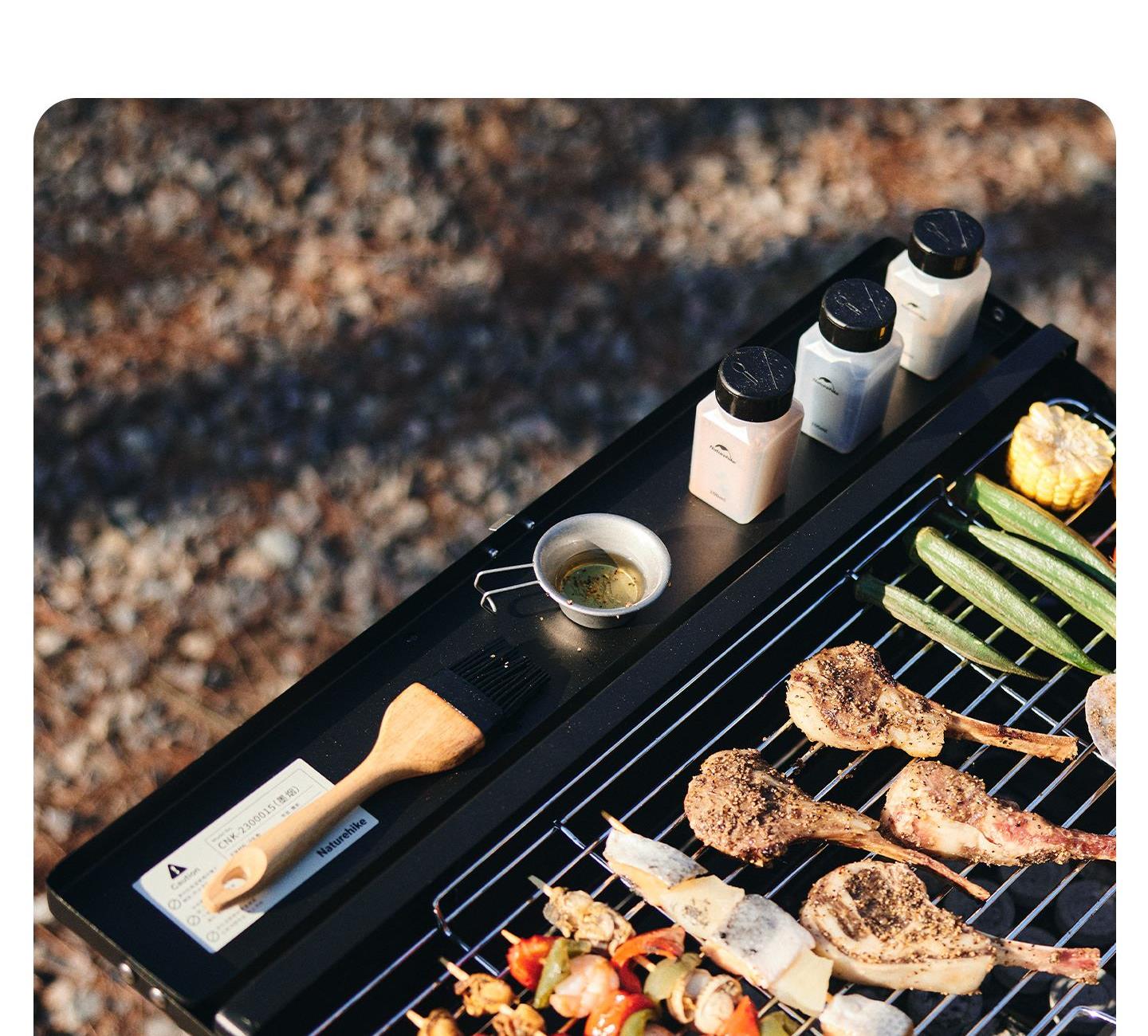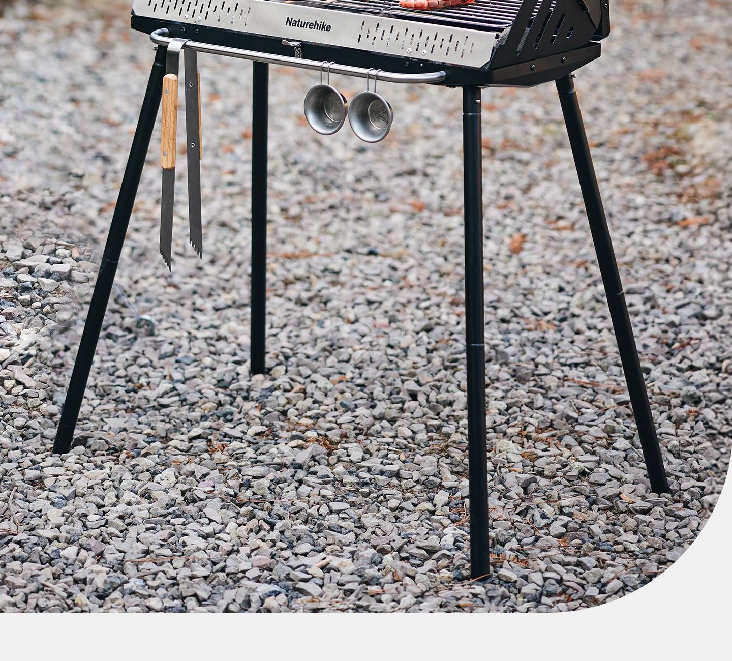 Naturehike CNK2300015 墨烟立式烧烤架 尺寸:80*48*84cm重量:约6.7kg 颜色:暗夜黑、岩砂色 材质:冷轧板、不锈钢、搪瓷 产品特点: 烧烤架新升级,解锁N+新玩法 三种烧烤模式,站着坐着都能烤。 轻松开合,携带更方便。 独立搪瓷炭盆一擦即净易清灰。 加粗八角形炉腿扎实稳固不晃。