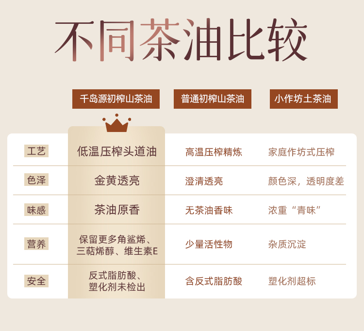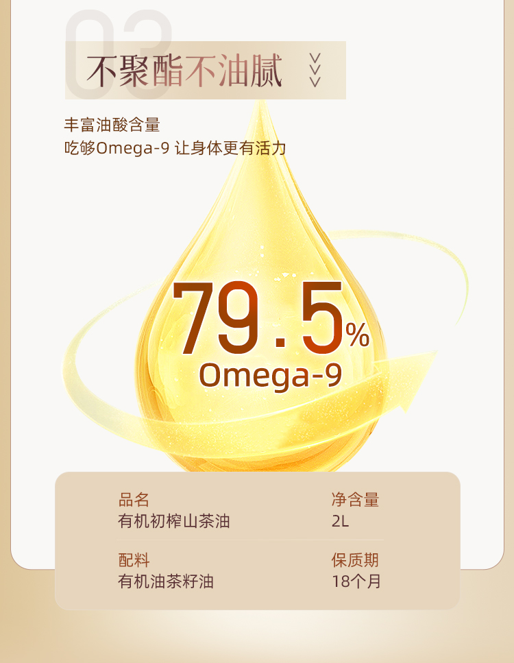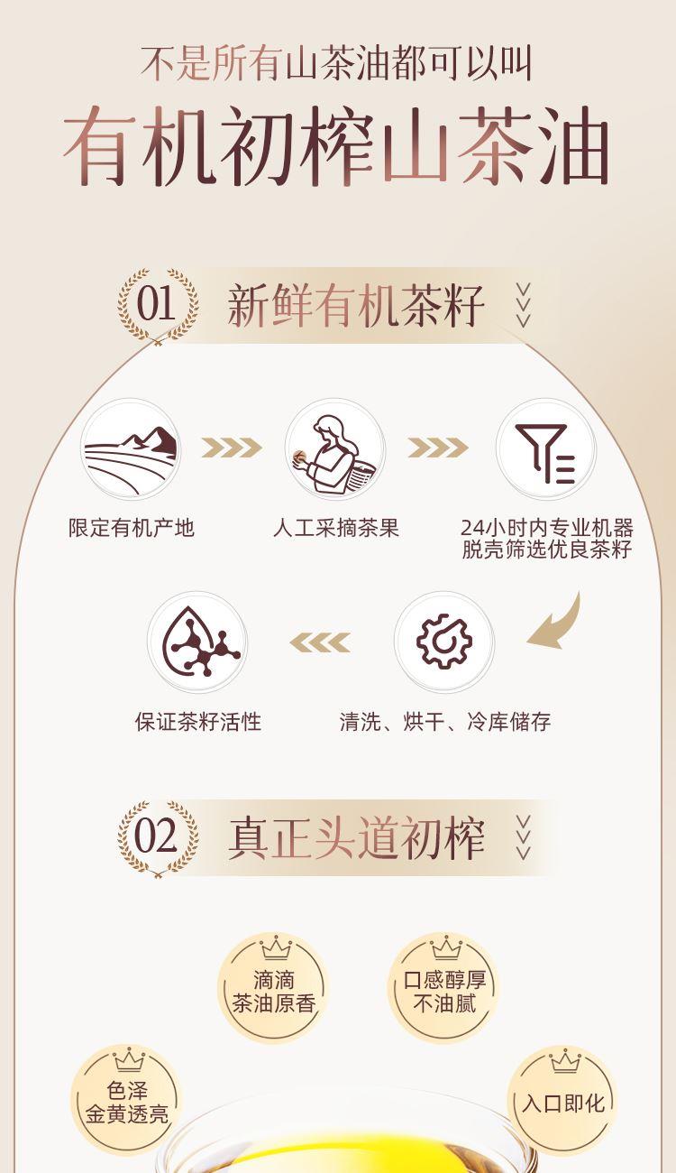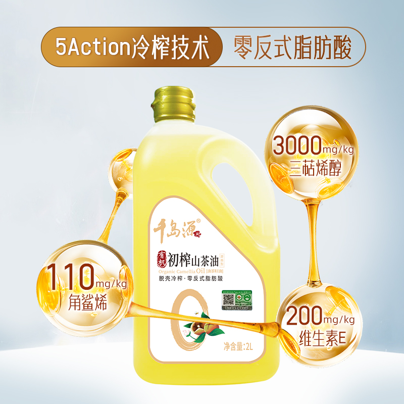 等级:一级 榨取工艺:冷榨 是否有机:有机 包装形式:瓶装 加工工艺:压榨 包装规格:1瓶 保质期:540天 包装清单:有机初榨山茶油2L*1 有机初榨山茶油2L,原香风味茶籽油,0零反式脂肪酸,一级茶油