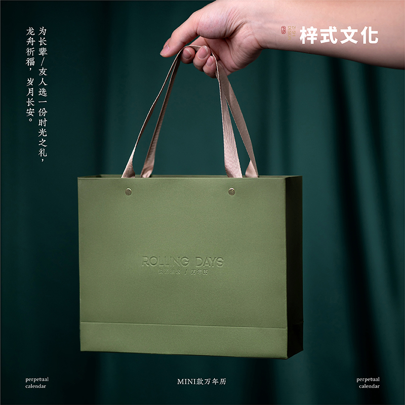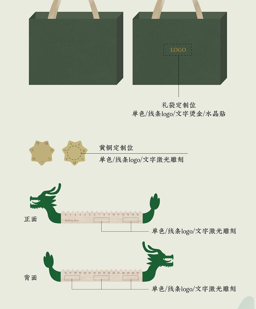 青玉龙舟,在端午的艾草清香中启航,感知时间的力量,滚过四季,竞渡时光。造型取意龙舟竞渡,清透亚克力雕琢的青龙首尾,蕴含驾驭风浪的磅礴力量。龙舟化作mini万年历,枫木精雕而成,以独特的滚轴设计承载时光流转。让时间的流逝宛如龙舟竞渡般从容而坚定。轻拨七芒星,如舟桨划过时间之流。不必翻页、不必撕纸,轻轻一拨,日子便如龙舟前行,静默而有力。 礼盒清单 1.枫木月份底座 2.七芒星滚轮 3.PU多用垫 4.龙头/龙尾 5.礼盒 6.礼袋