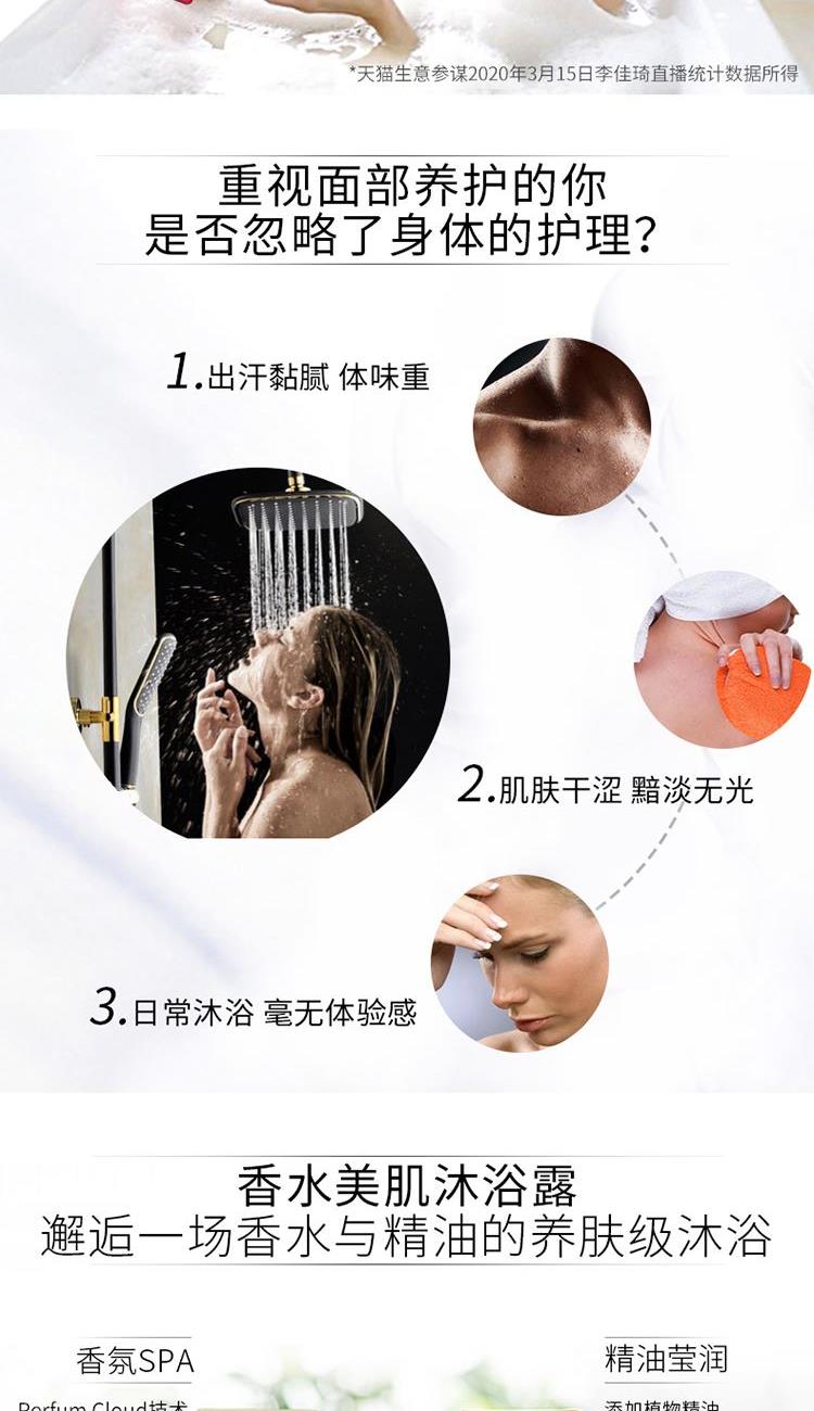 香水级——香氛(馥郁香气 丝丝索饶),产品功效:清洁皮肤,滋润美肌,留香更长,植物精油成分,细致渗透力,肌肤易吸收,打造润泽美肌。 ----洗发水:蕴含百种植物精粹,100种天然原料成分,带来全效合一营养护理,令秀发富有弹性,散发透亮光彩。补水水分,带给秀发健康和弹性,赋予秀发真正的耀眼光泽。 使用发质:针对失去活力缺乏润泽发质。