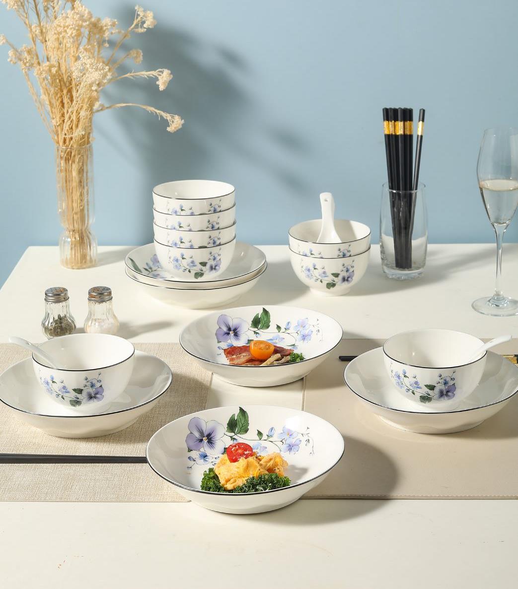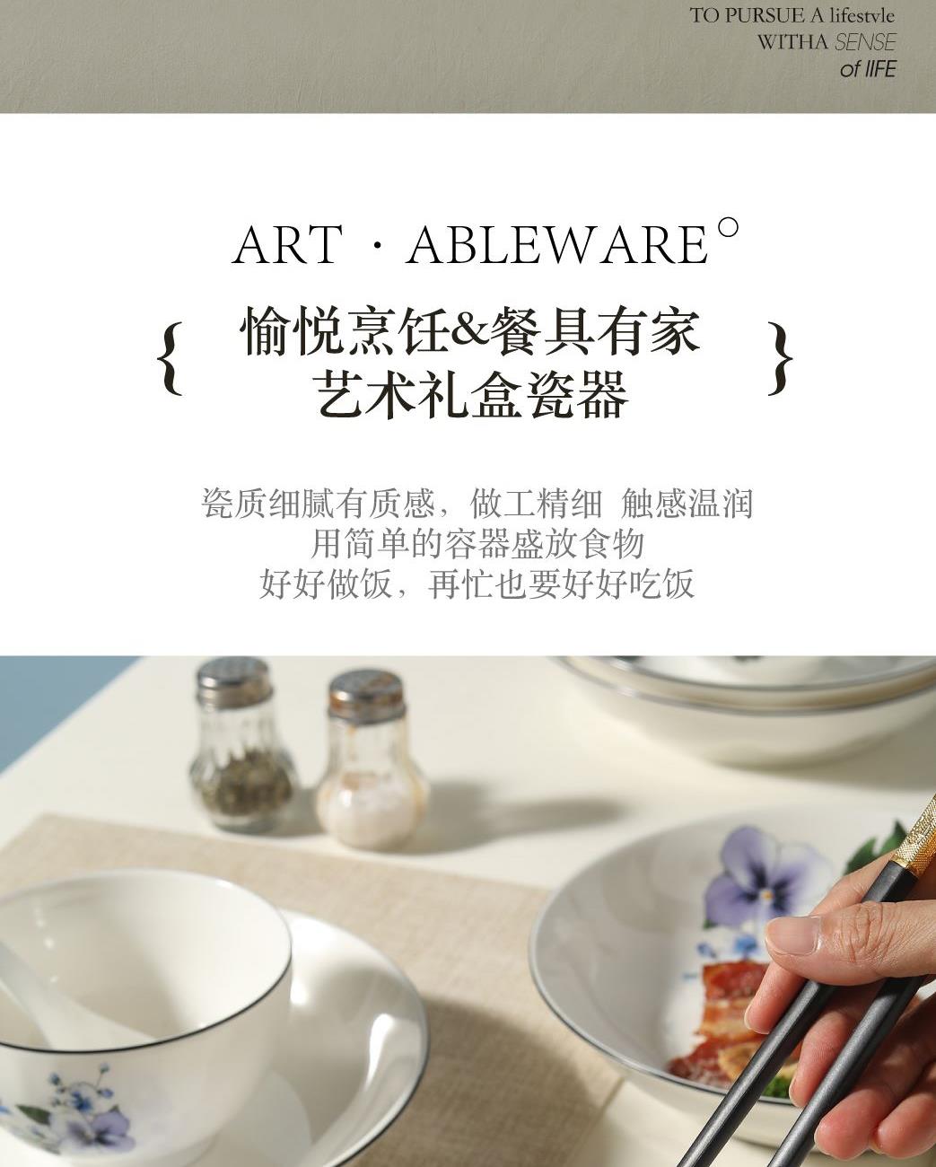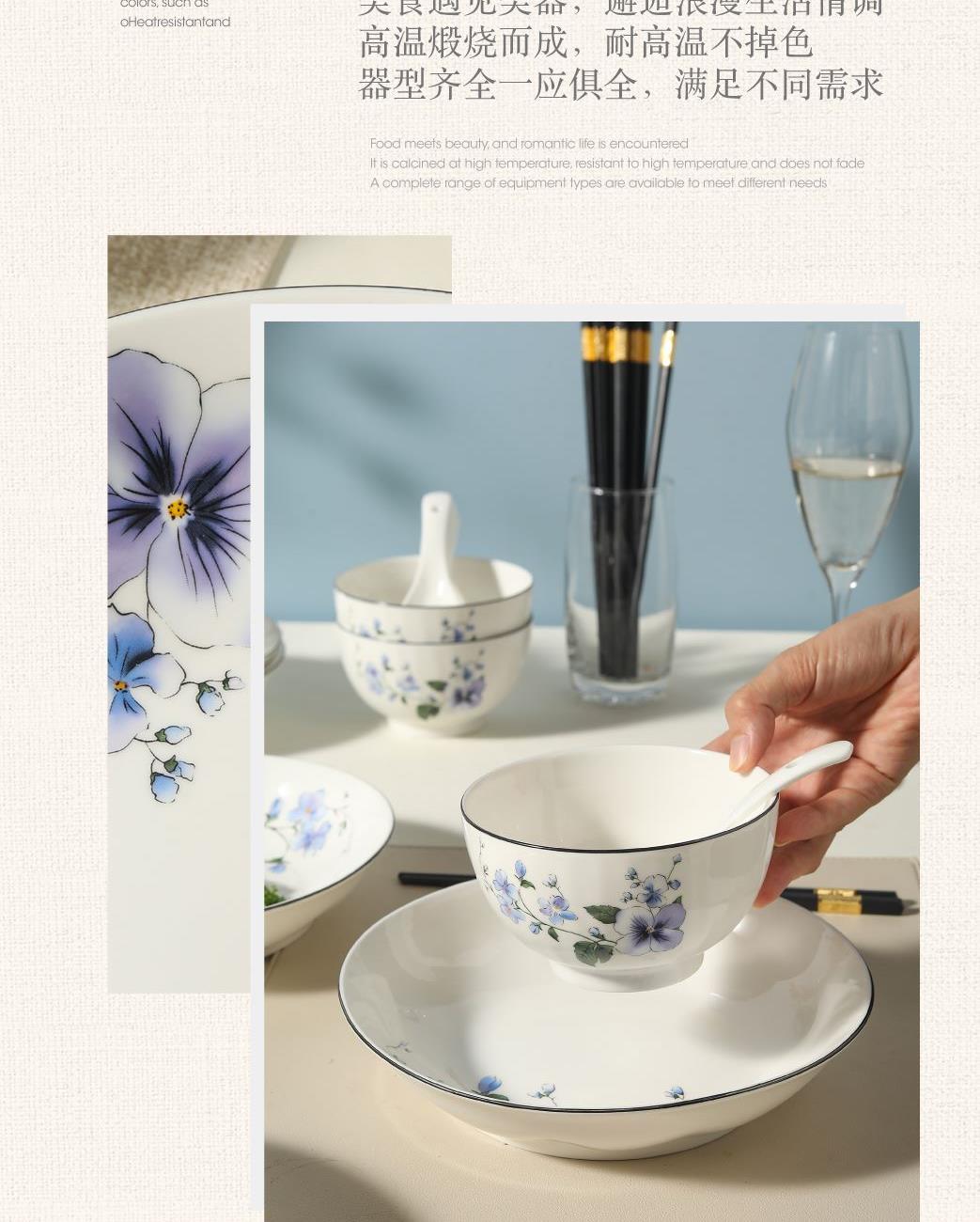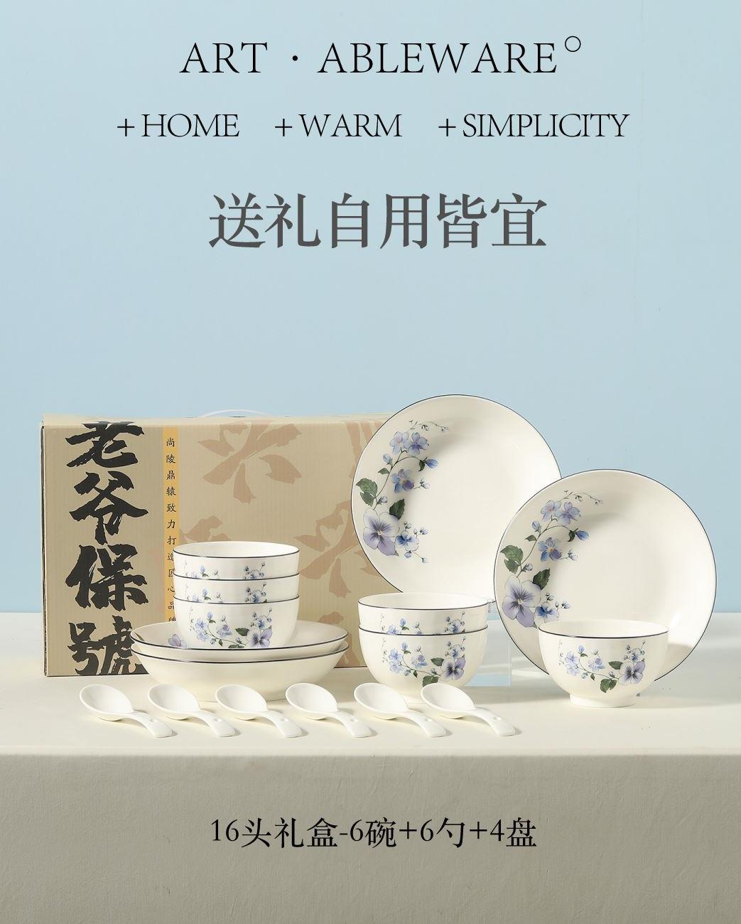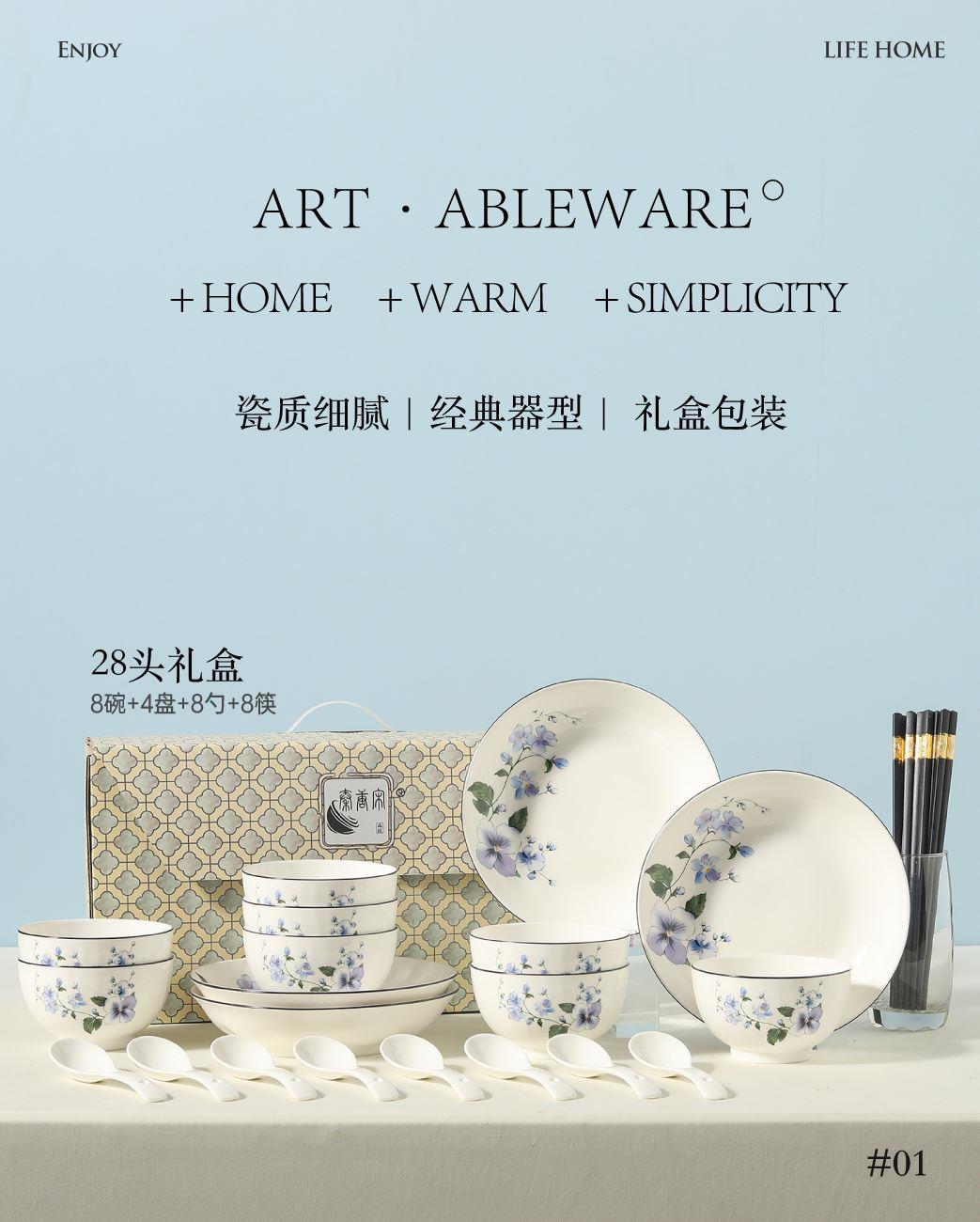 产品组成:8碗+4勺+4盘+8筷+礼盒 产品材质:高温瓷 产品工艺:烤花+素烧 产品规格:4.5寸碗,三弯小勺,8寸盘 包装尺寸:43*18.5*22cm 外箱尺寸:44.5*39*45.5cm