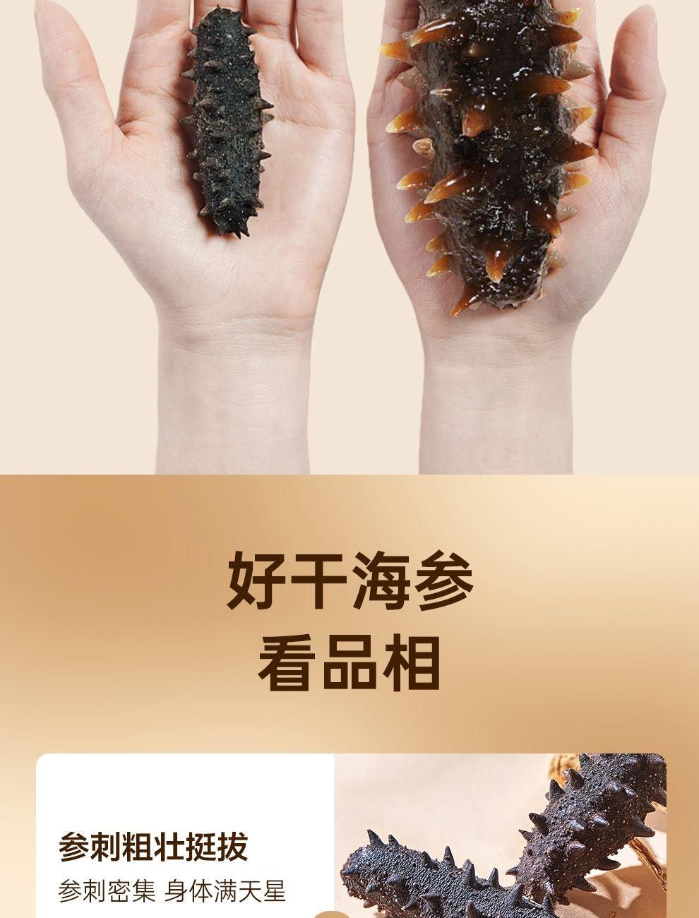 - 淡干工艺保留了海参的营养成分。通过自然晾晒或者低温烘干,减少了海参营养在加工过程中的流失。
