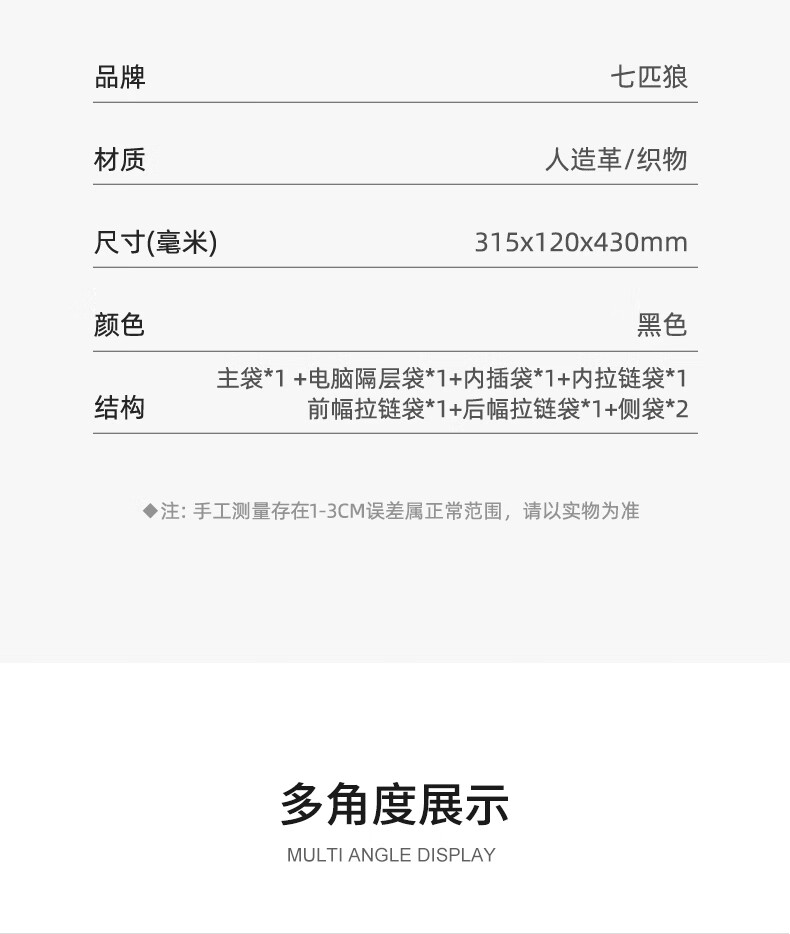 七匹狼双肩包电脑包休闲轻便大容量CA021755-1
