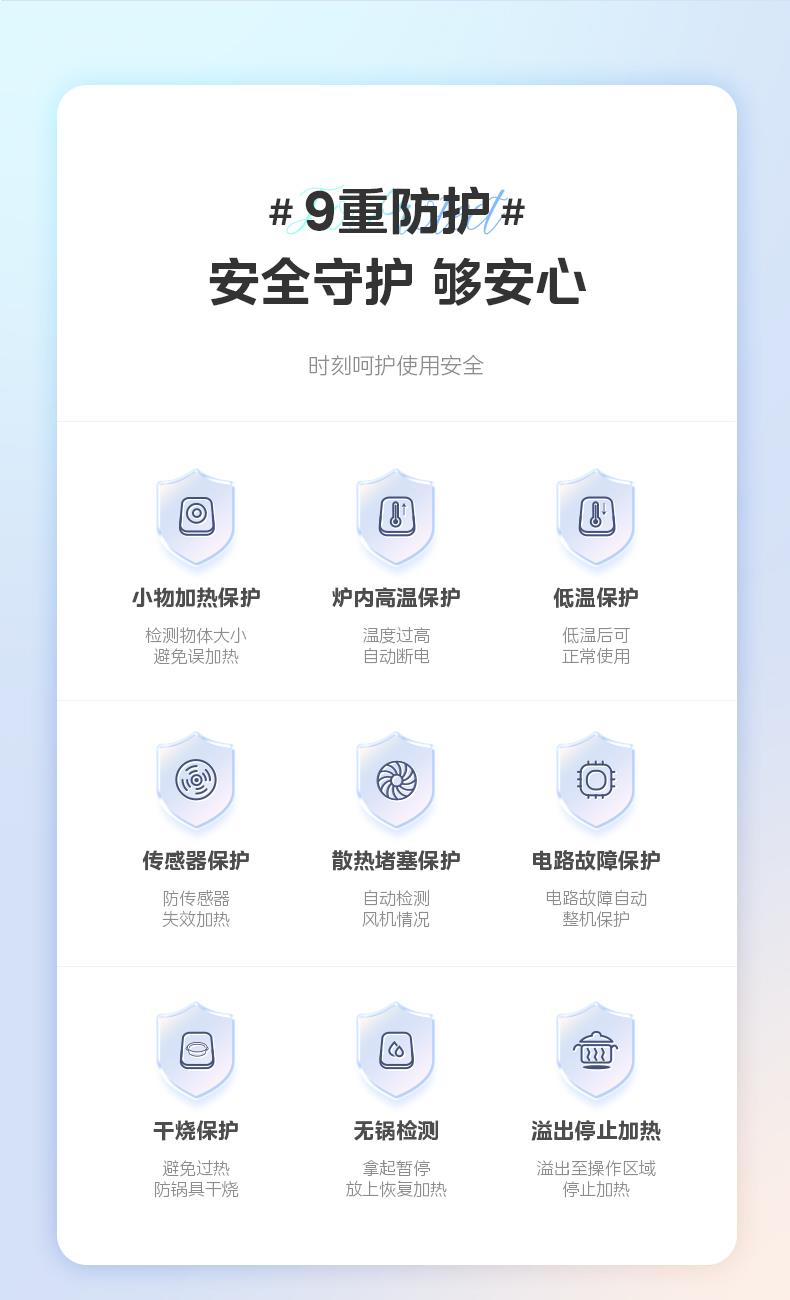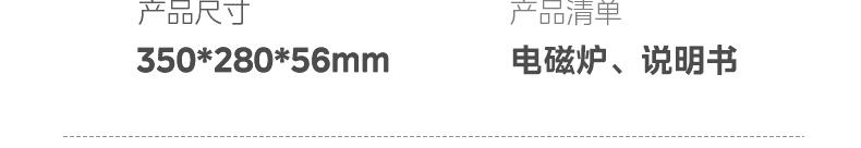 产品规格: 产品尺寸:350 x 280 x 58 mm 包装尺寸:330 x 110 x 475 mm 产品毛重:2.6 kg 产品特点: 350琉晶溢彩设计,晶透浅色点亮厨房; 2200W 3D悬浮大火,170mm匀火线圈盘,火更匀更稳; 时尚彩色晶透美观面板:耐高温、防刮花、耐磨损;