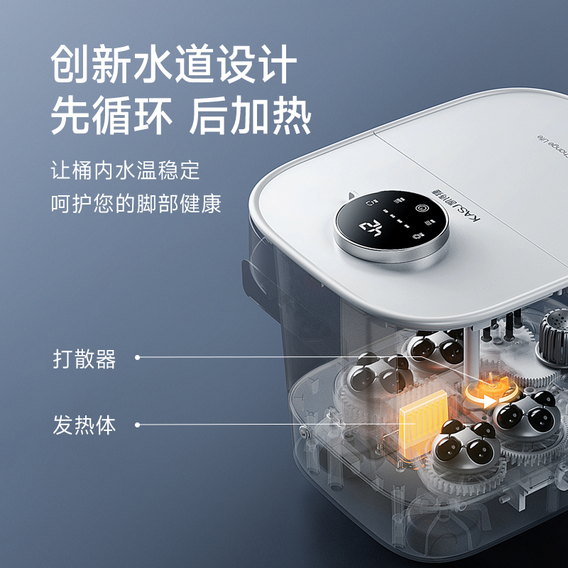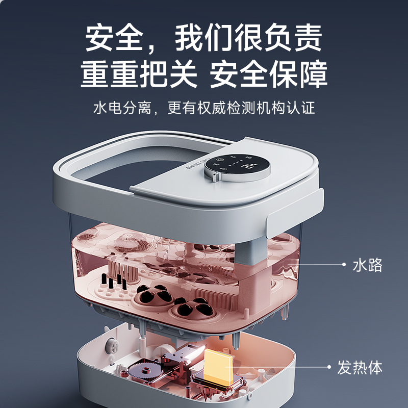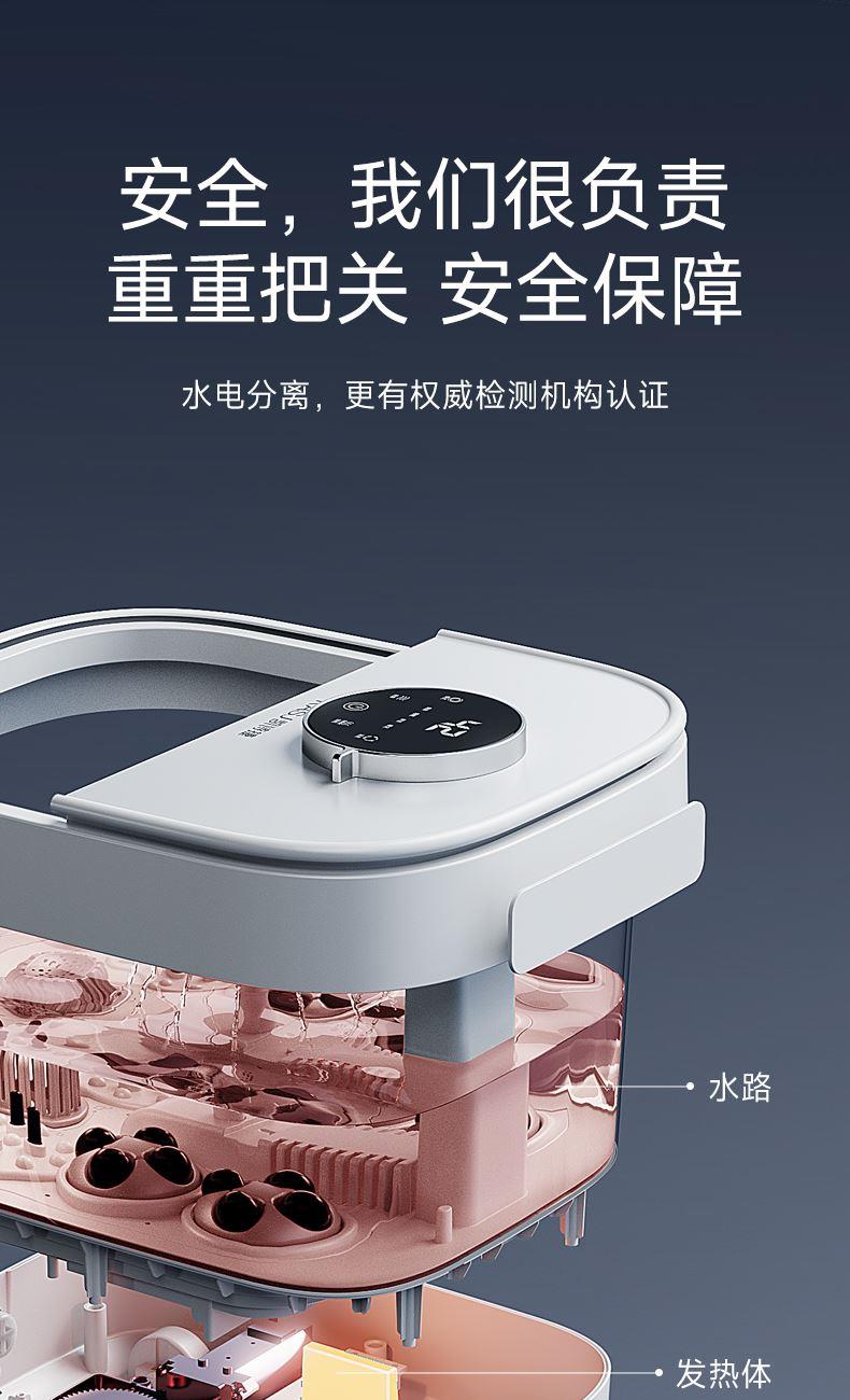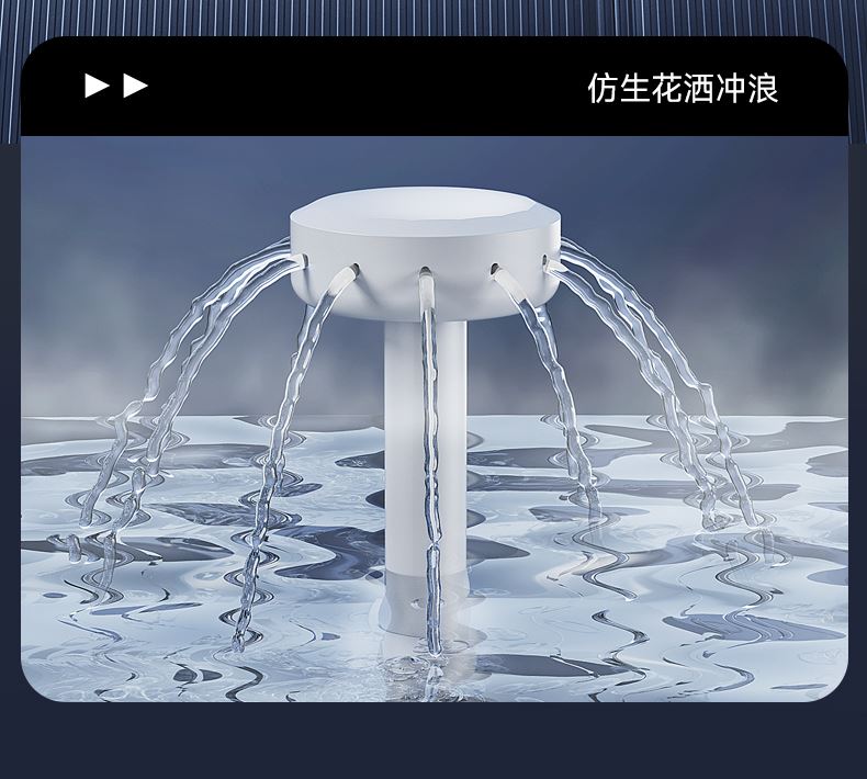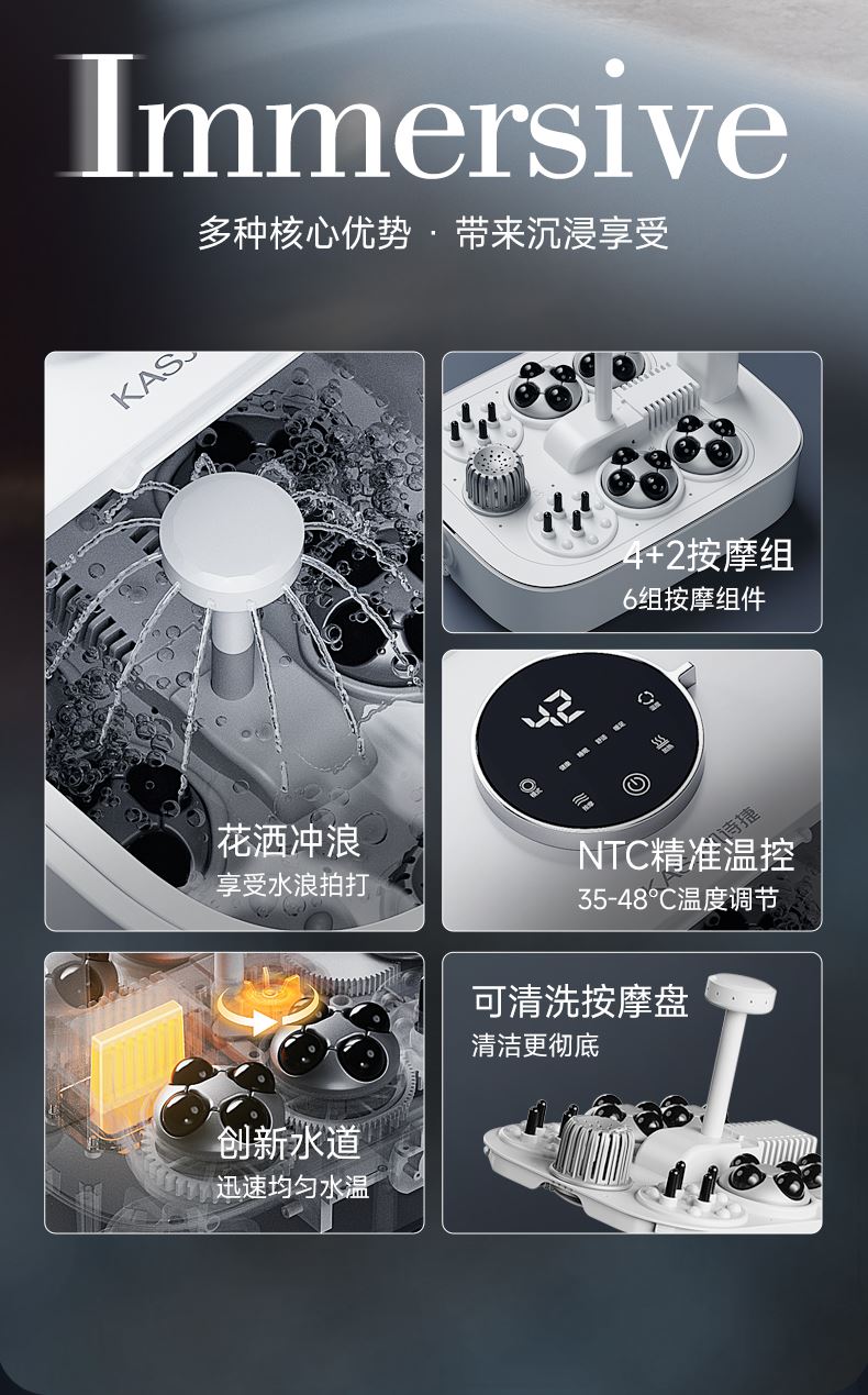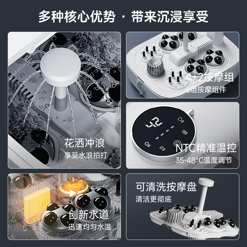 1.多种核心优势·带来沉浸享受 2.4+2按摩组,6组按摩组件 3.花洒冲浪,享受水浪拍打 4.创新水道,迅速均匀水温 5.可清洗按摩盘,清洁更干净