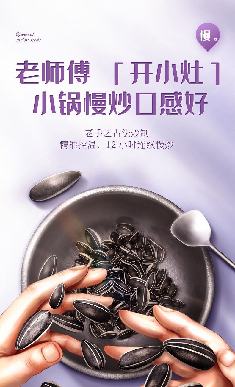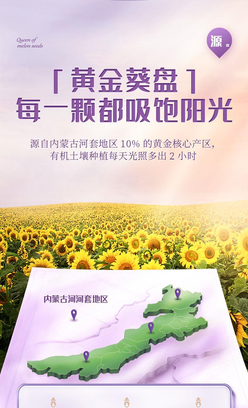 原料,颗颗精选:严选内蒙古巴彦淖尔 363 大瓜子,一葵盘仅选 10 粒,大颗粒饱满、无坏籽。