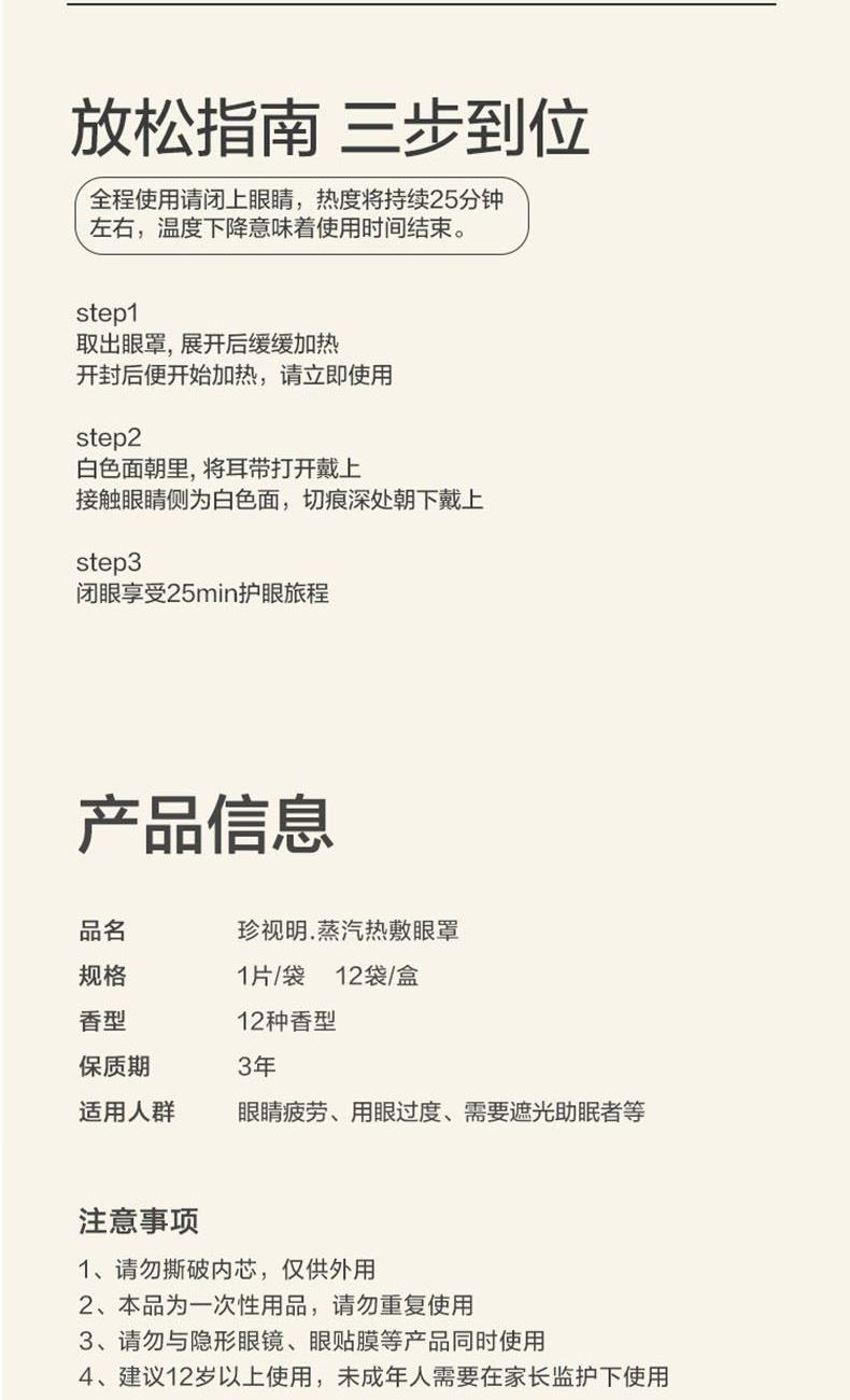 珍视明12蒸味蒸汽眼罩自发热遮光透气12蒸味