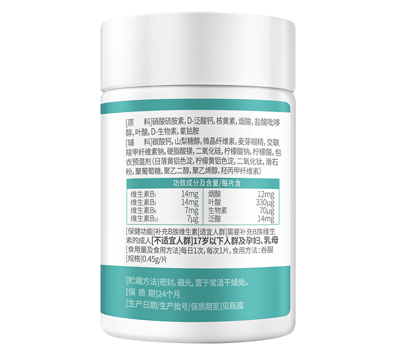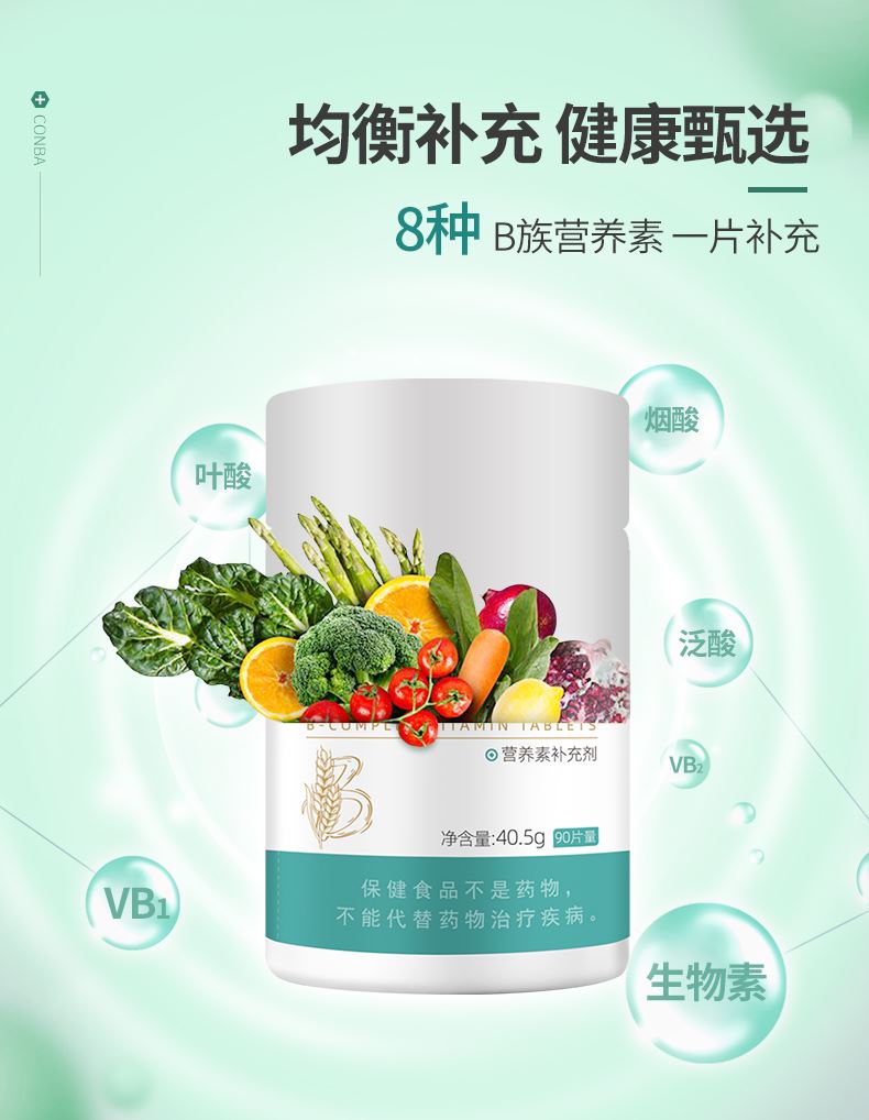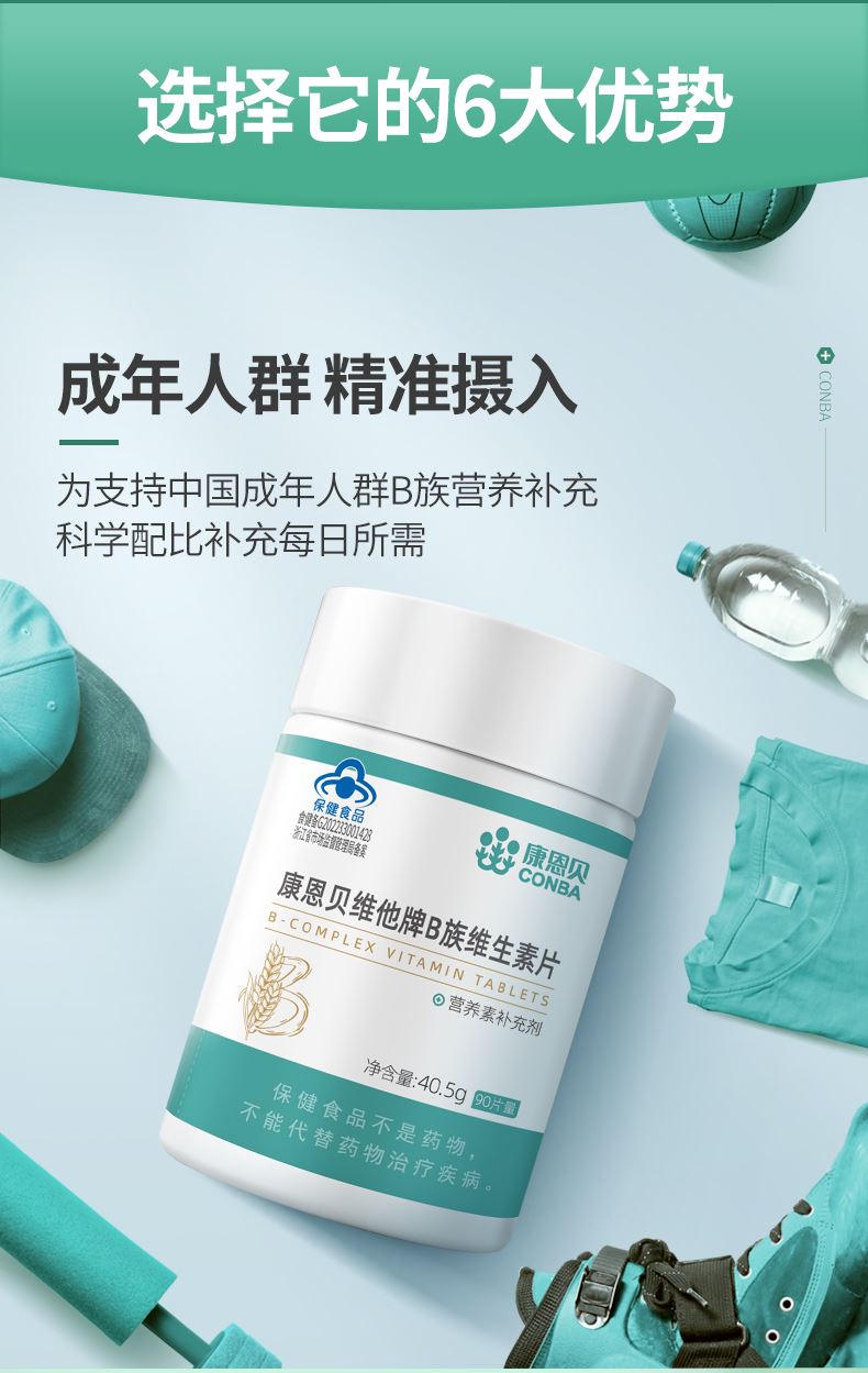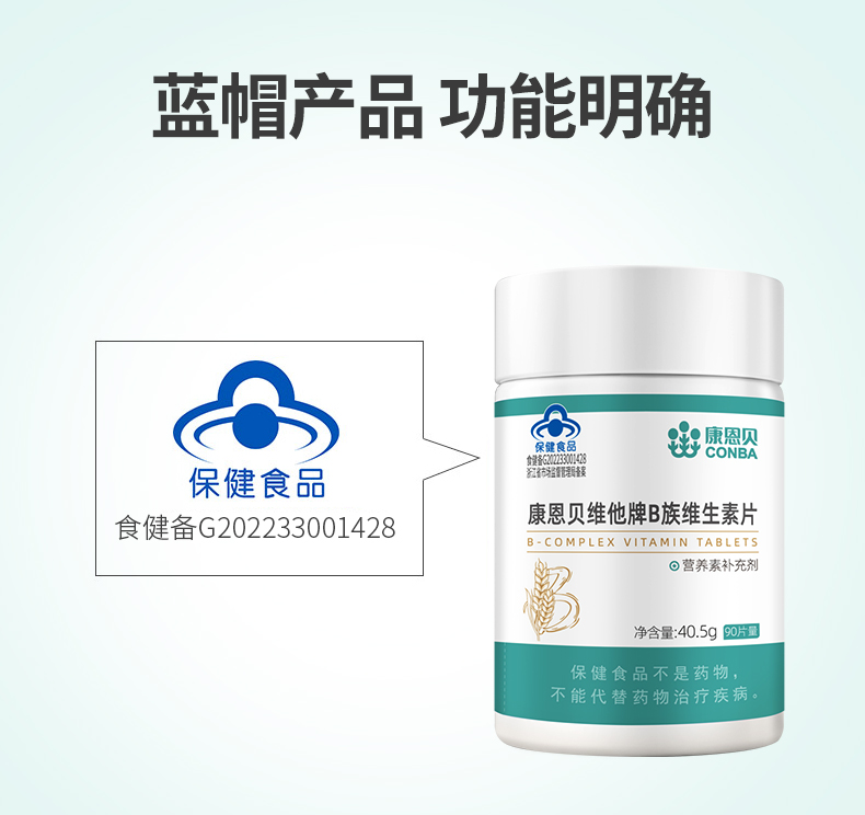 0.45g/片*90片 为支持中国成年人群B族营养补充科学配比补充每日所需 均衡补充,健康甄选,8种B族营养素 一片补充 高活性,先进包衣技术,高效包裹成分 蓝帽产品 功能明确