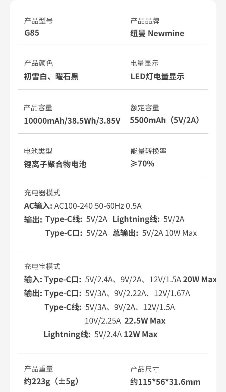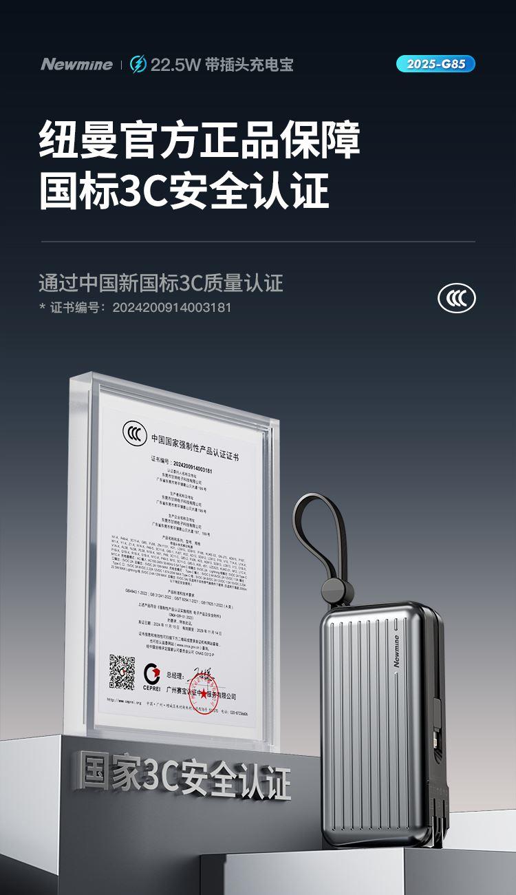纽曼自带插头充电宝G85