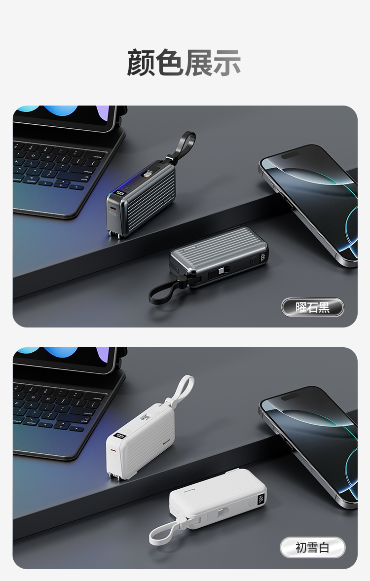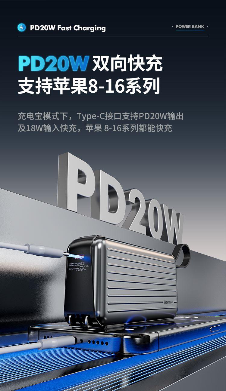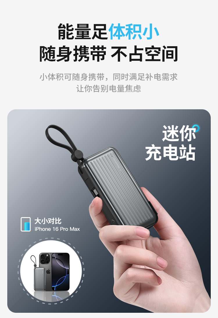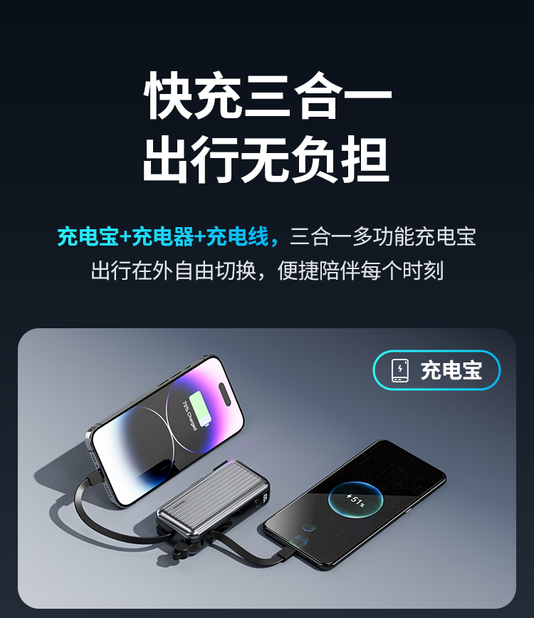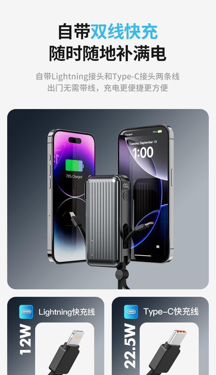 自带220V插头,自带双线,1万毫安,22.5W快充。