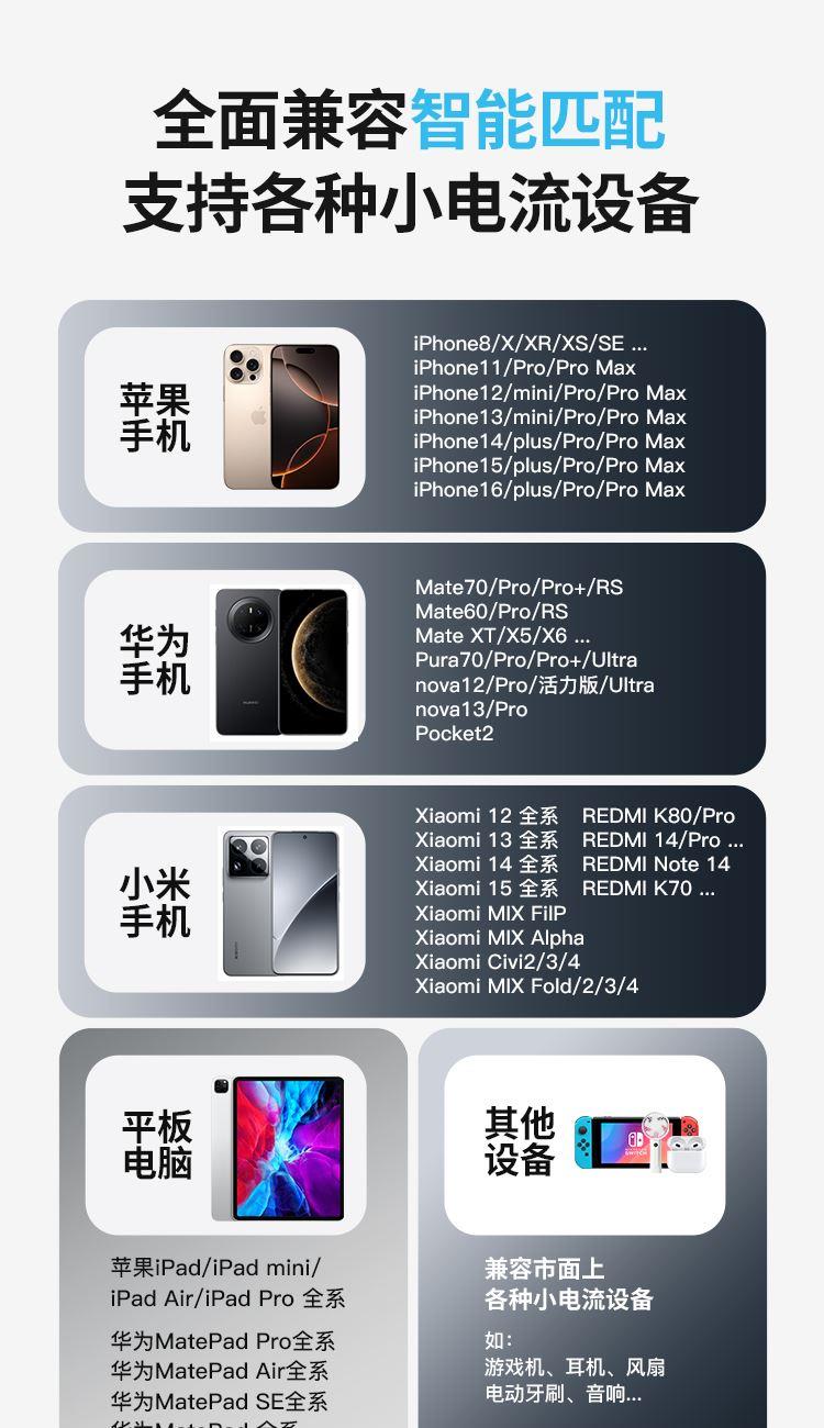 USB口输出:5V /4.5A; 9V /2A;12V/ 1.5A;(22.5W)