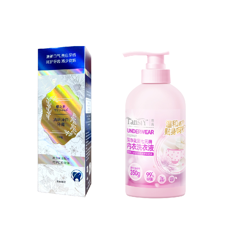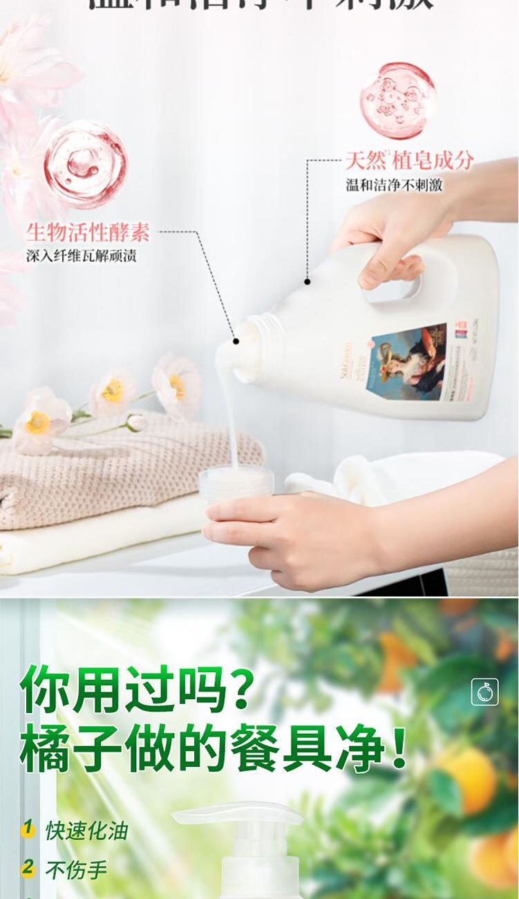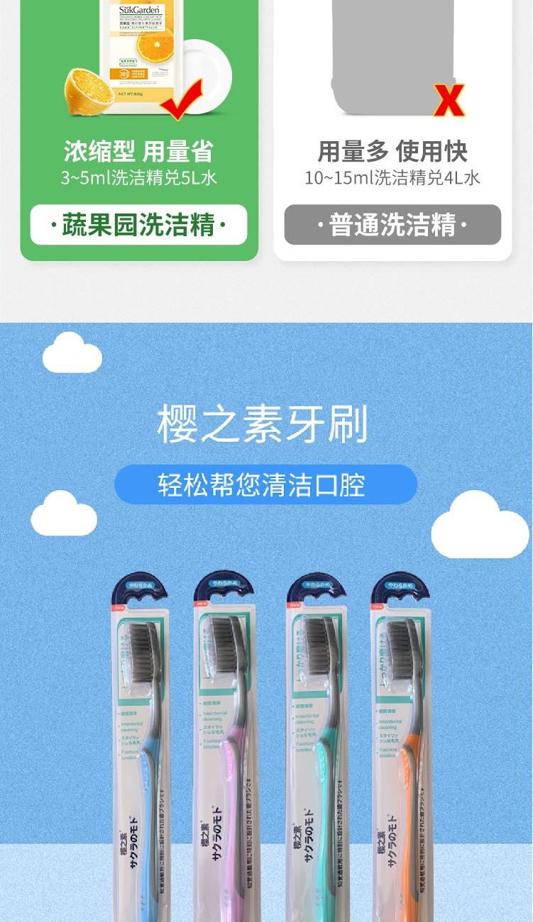 【套装配置】(香型随机/新老包装随机) 1.SukGarden蔬果园珞珈樱花经典留香洗衣液1.1kg*2 2.SukGarden蔬果园橘采星光果蔬餐具净808g*1 3.日本樱之素牙刷单支装*1 4.日本樱之素清新净白牙膏120g*1 5.唐茜&洁丽雅联名款毛巾70g*1 6.唐茜樱花香氛泡泡洗手液300ml*1 7.唐茜莫奈花园七元酶内衣洗衣液350g*1 8.美国进口DDOXOO防串色片40片*1盒 9.家清系列精美彩盒*1 赠:新春红包*1