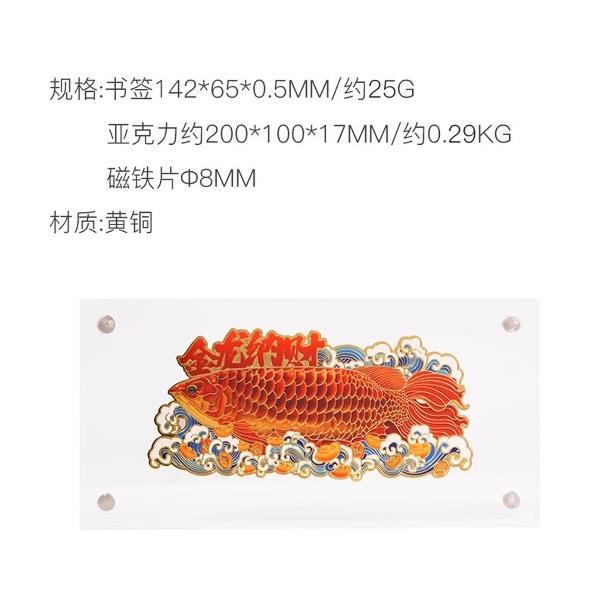 规格:书签142*65*0.5MM/约30G 亚克力约200*100*17MM/约0.35KG 磁铁片の8M 材质:黄铜