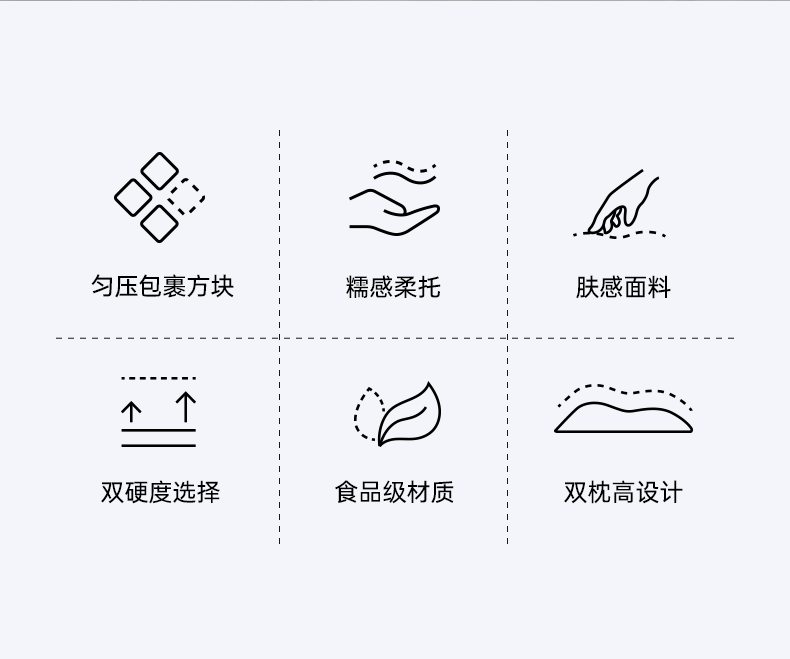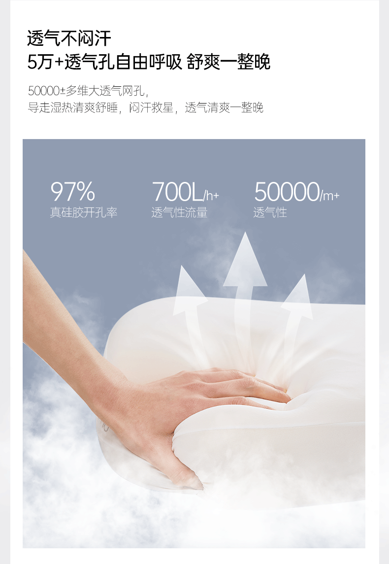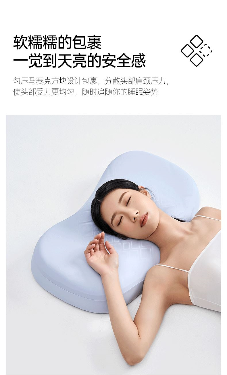 产品规格:630*360*100mm 产品净重:1.38kg 外箱毛重:2.3kg 外箱尺寸:660*390*110mm 产品颜色:雾蓝紫 包装方式:彩盒 用材亮点: 1.食品硅胶材料,FDA食品级材质,可水洗、可机洗 2匀压马赛克方块:自由伸展睡姿,柔软有支撑,趴睡、侧靠、托脸,怎么睡都舒服 面料亮点: 四季控温面料:体感舒适,冬暖夏凉,透气舒适,四季适用 细节设计亮点: 1. 0级长效防霉,由内而外长效洁净 2.高低双枕区,可按需调节,睡感更贴合 3.环保包装设计,多功能二次利用,可收纳,可晾晒