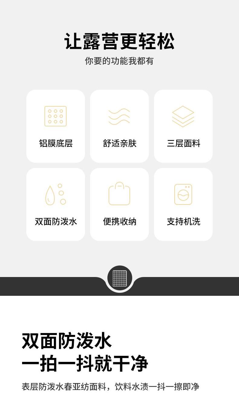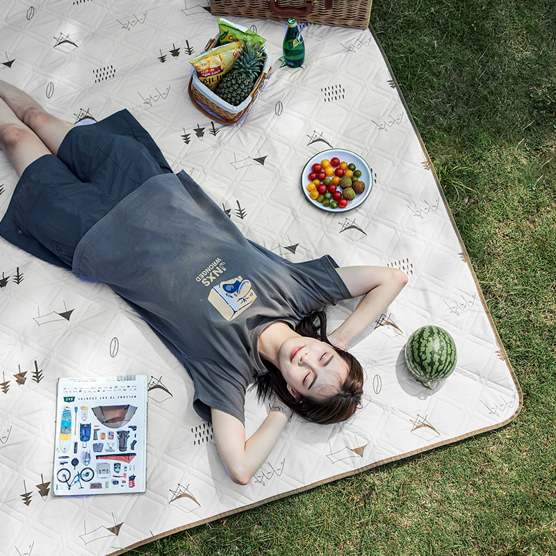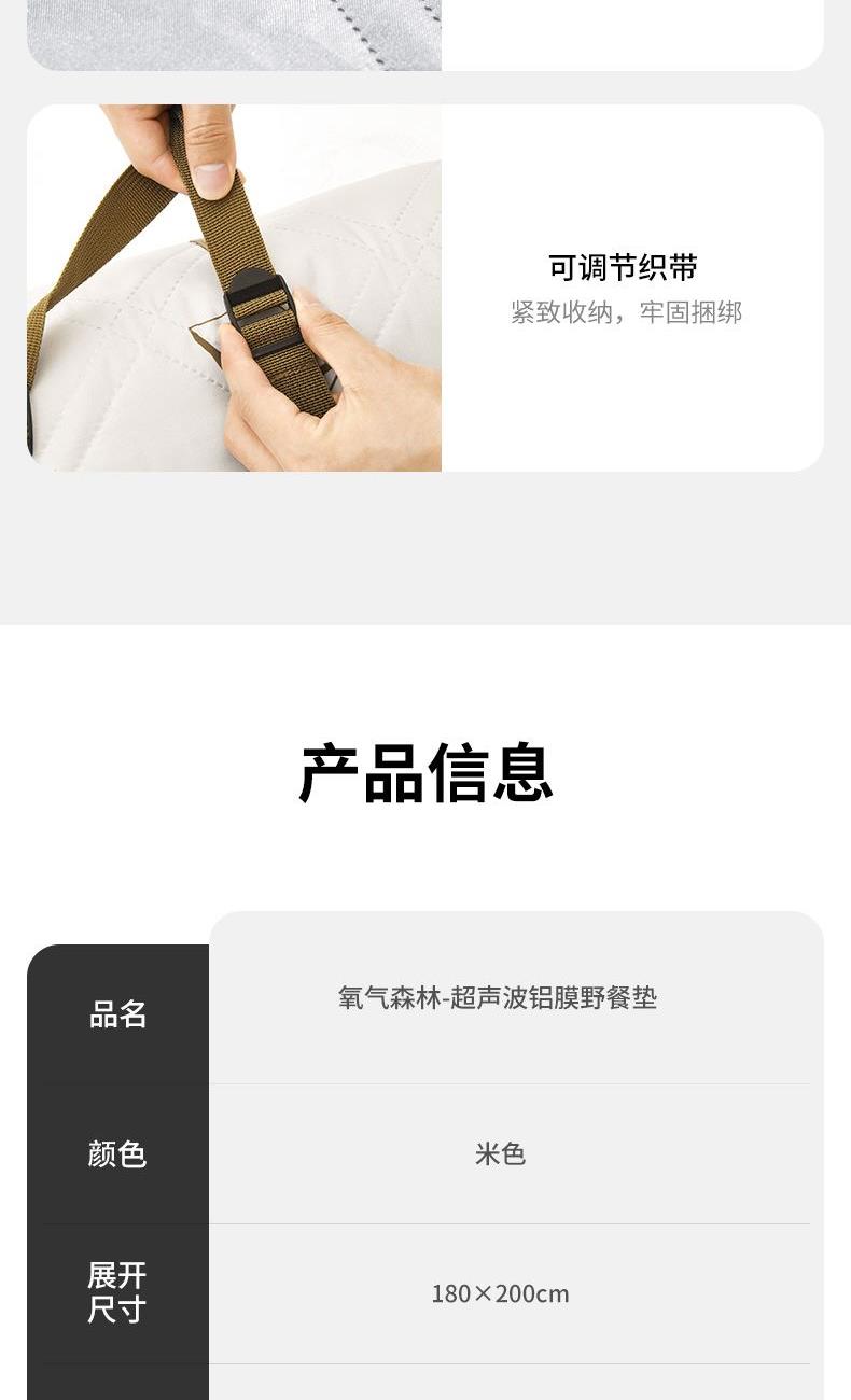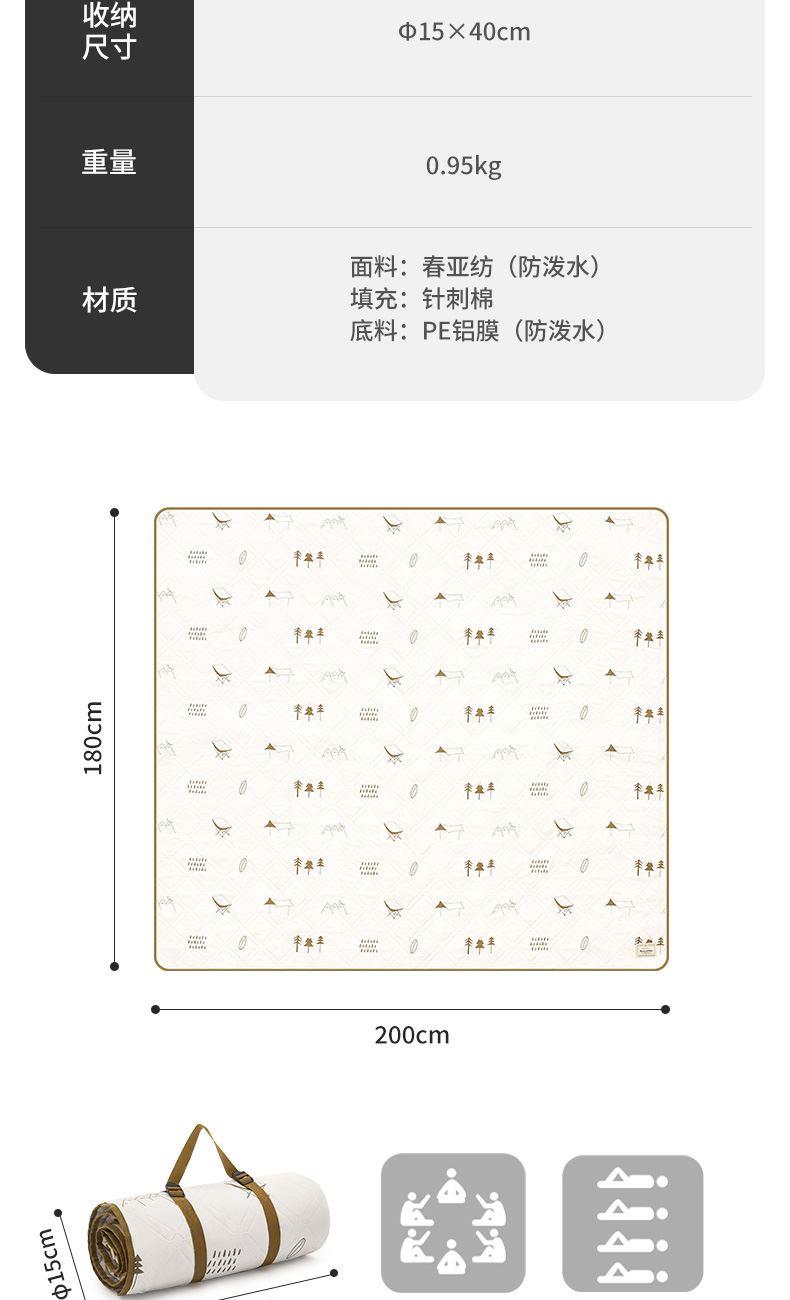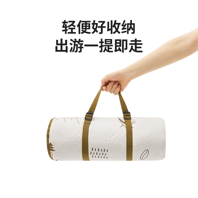 氧气森林-超声波铝膜野餐垫 米色 展开尺寸:180x200cm 重量:0.95kg 面料:春亚纺(防泼水) 填充:针刺棉 底料:PE铝膜(防泼水)