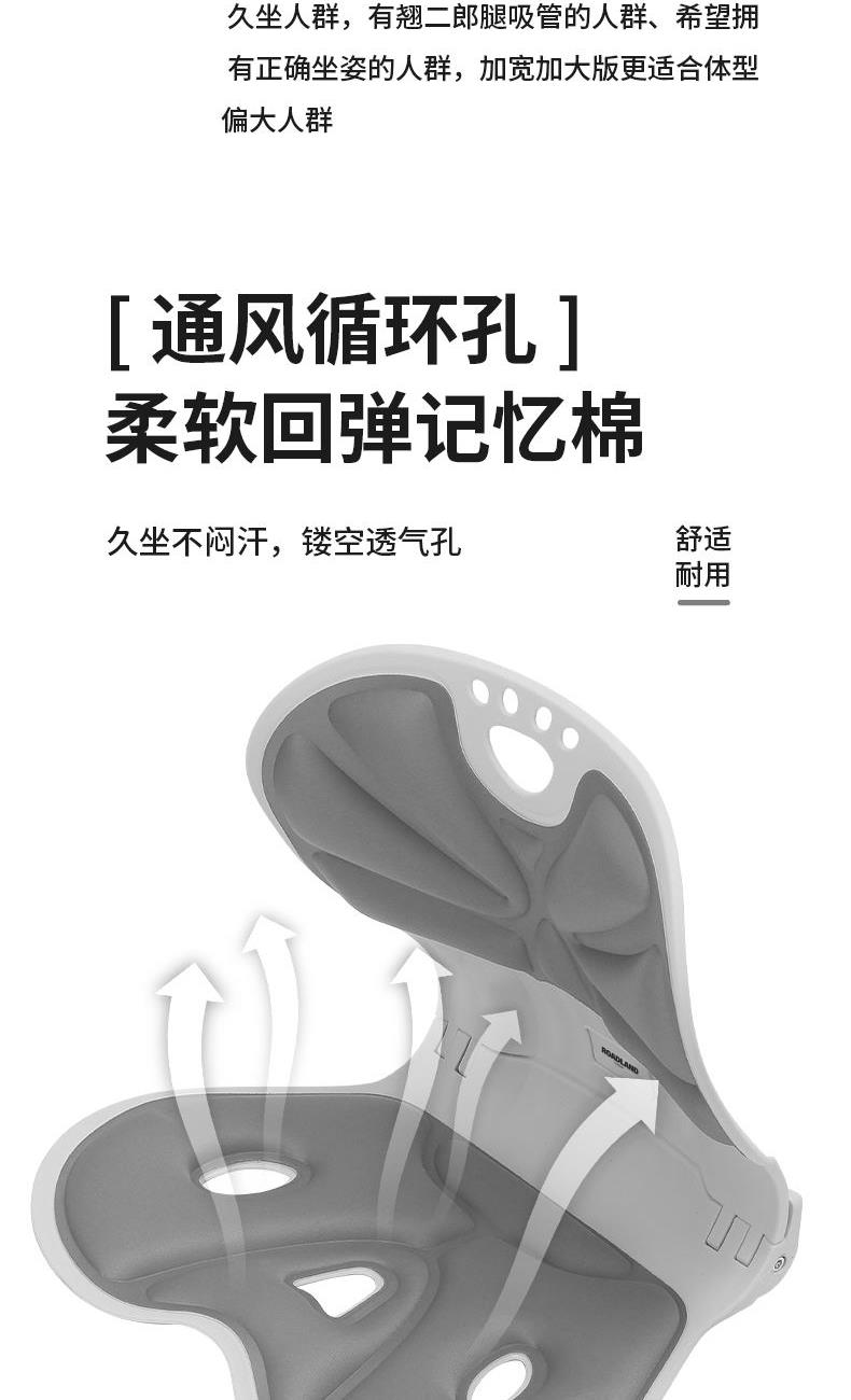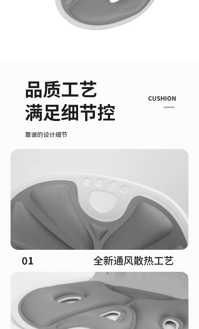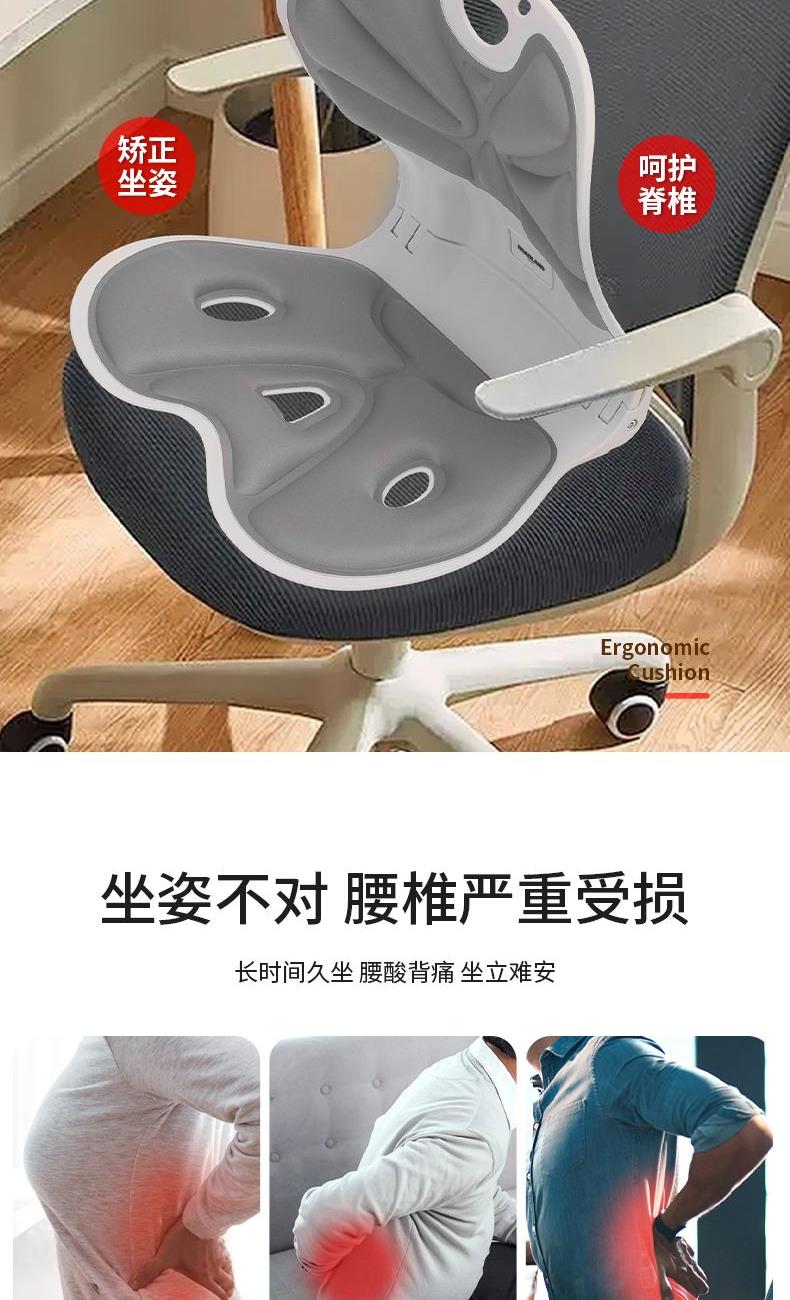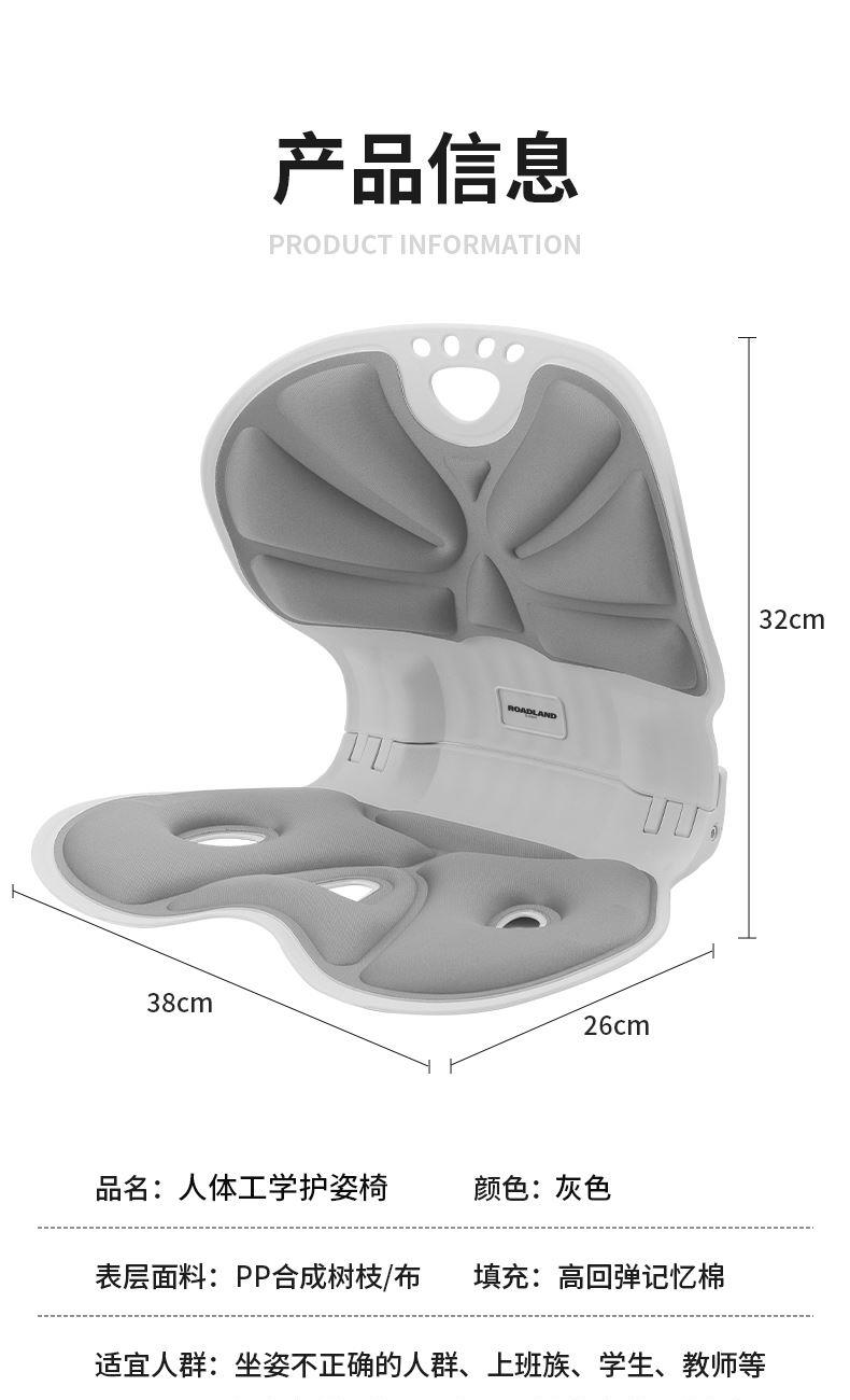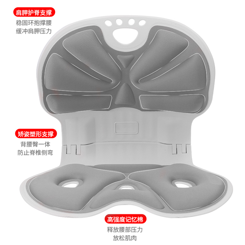 颜色:灰色 材质:PP合成树脂/布 适合体重:200斤以内 展开尺寸:380*260*320mm 1、人体工程学分区支撑系统 支撑您的腰背,保持正确坐姿 2、可折叠设计 轻量便携出门 3、通风循环孔 柔软回弹记忆棉 4、曲面撑腰塑形 久坐也舒适