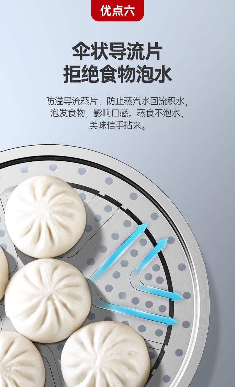密封热循环设计,形成蒸汽内循环,360°受热,新鲜美味不久等,蒸出食材鲜味,好吃又营养。