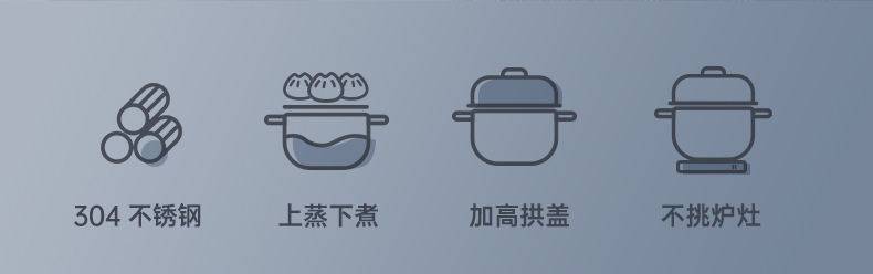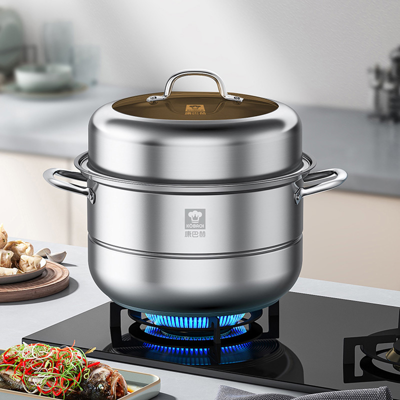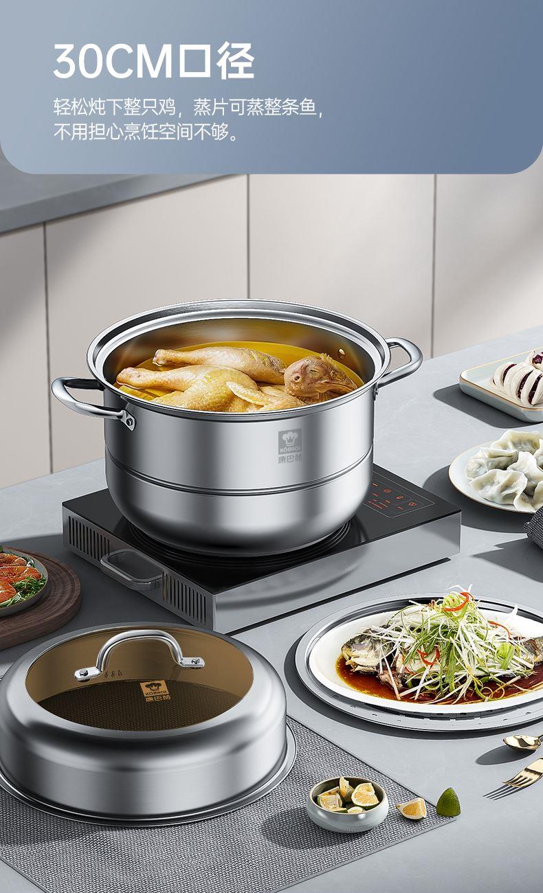 ◎康巴赫不锈钢蒸锅精选 304 食品级不锈钢,符合质量标准,耐腐蚀不易生锈,让烹饪远离重金属危险;