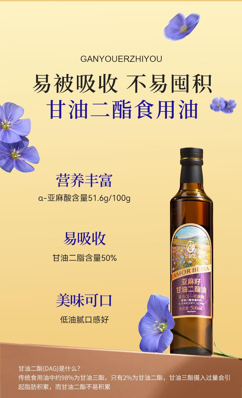 亚麻籽甘油二酯油500ml*2 (甘油二酯含量50%)