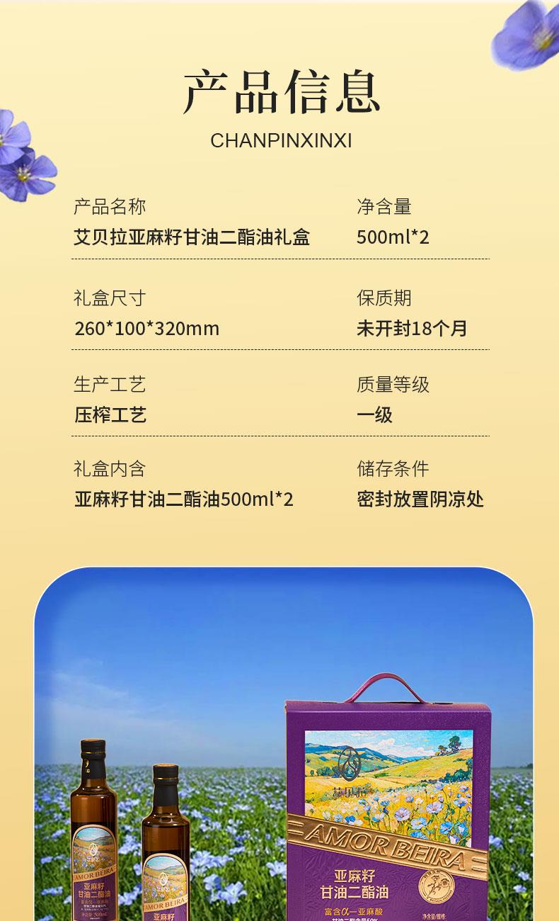 艾贝拉亚麻籽甘油二酯油礼盒500ml*2