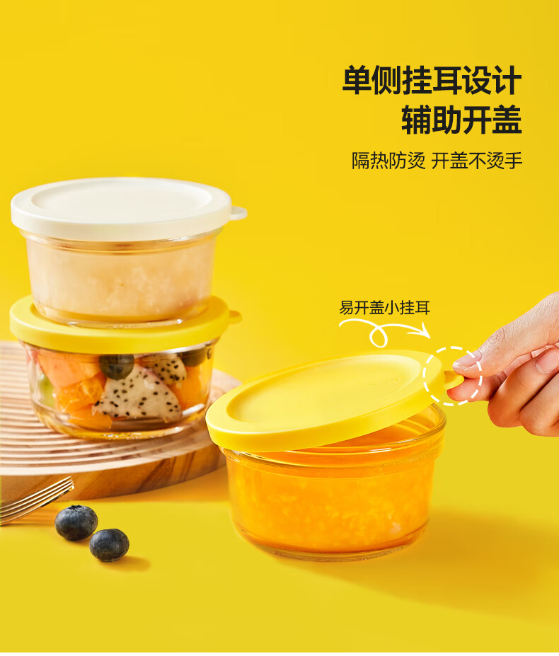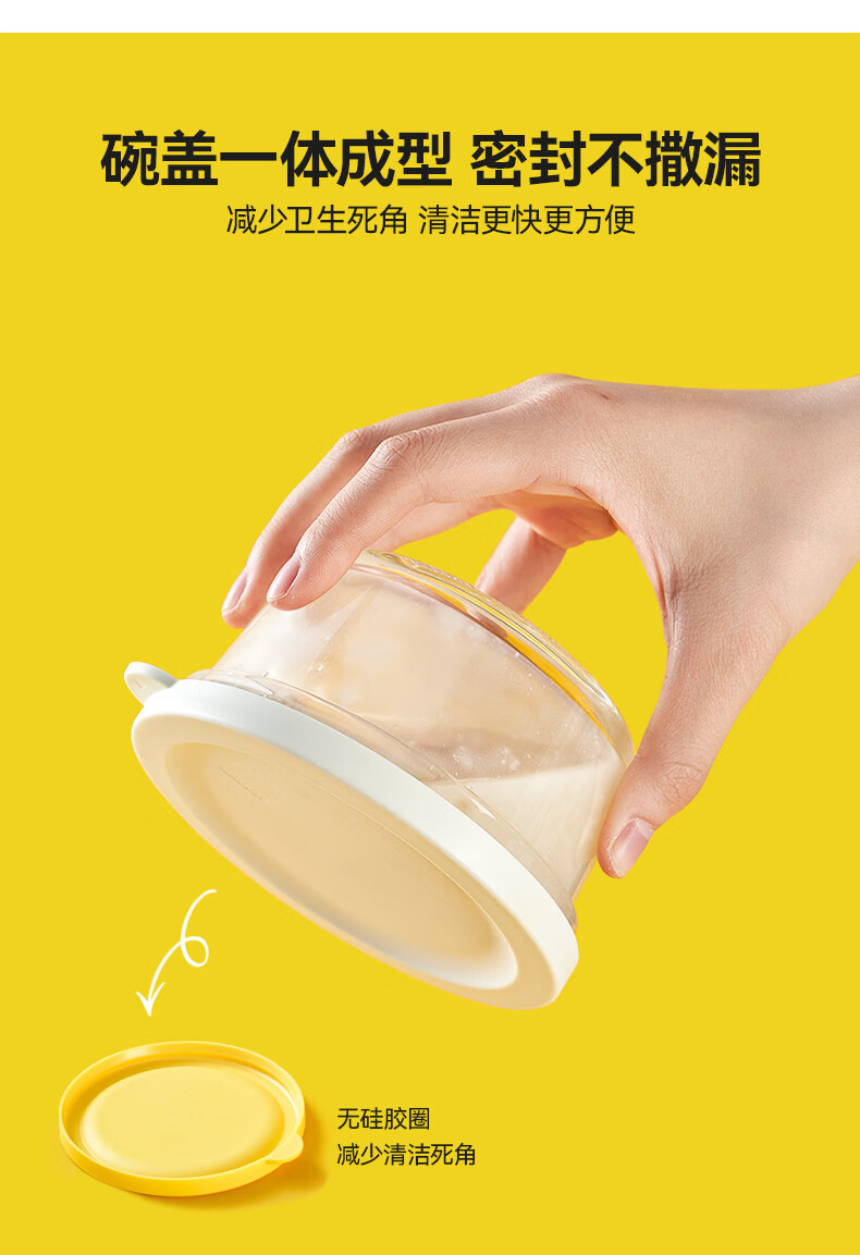 健康早餐唤醒营养每一天 350ml精致容量可叠加可冷藏 可叠加放置,方便收纳省空间 碗底对应盖子凹槽 稳固不易倒 碗盖可做隔热垫 刚出锅的食物可以先放在碗盖上再放在桌面,即隔热又避免烫坏桌面 材质安全,多种食物放心装 容量小巧·密封保鲜·明亮色彩 单侧挂耳设计辅助开盖 隔热防烫 开盖不烫手 碗盖一体成型 密封不撒漏 减少卫生死角 清洁更快更方便