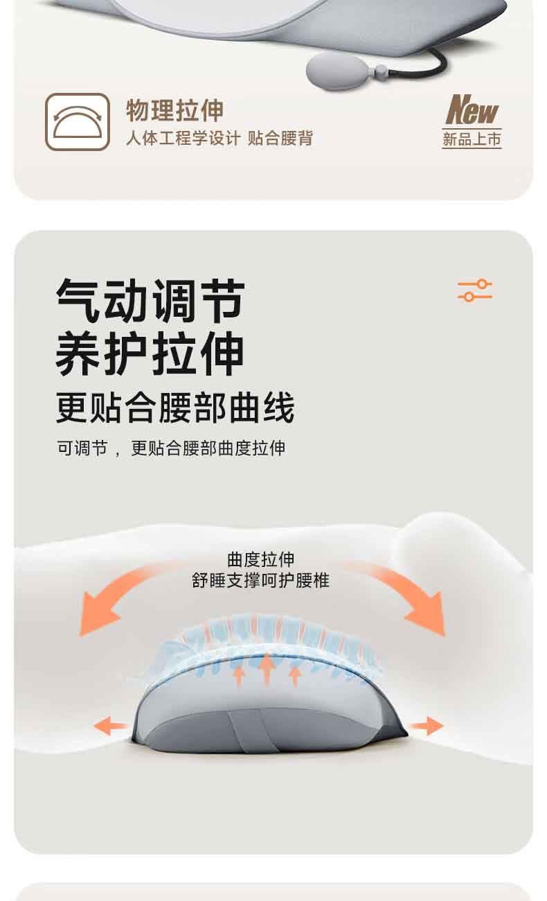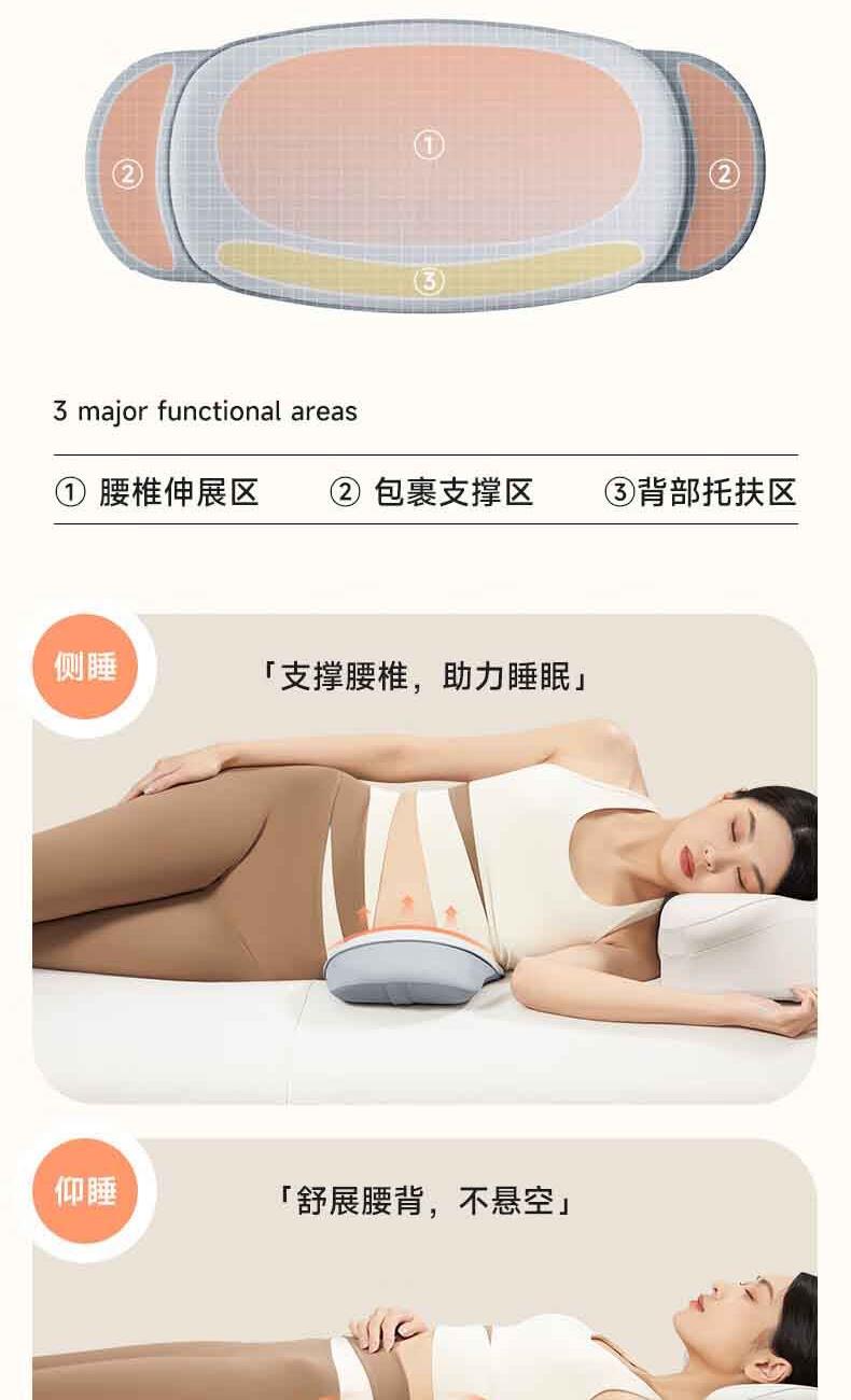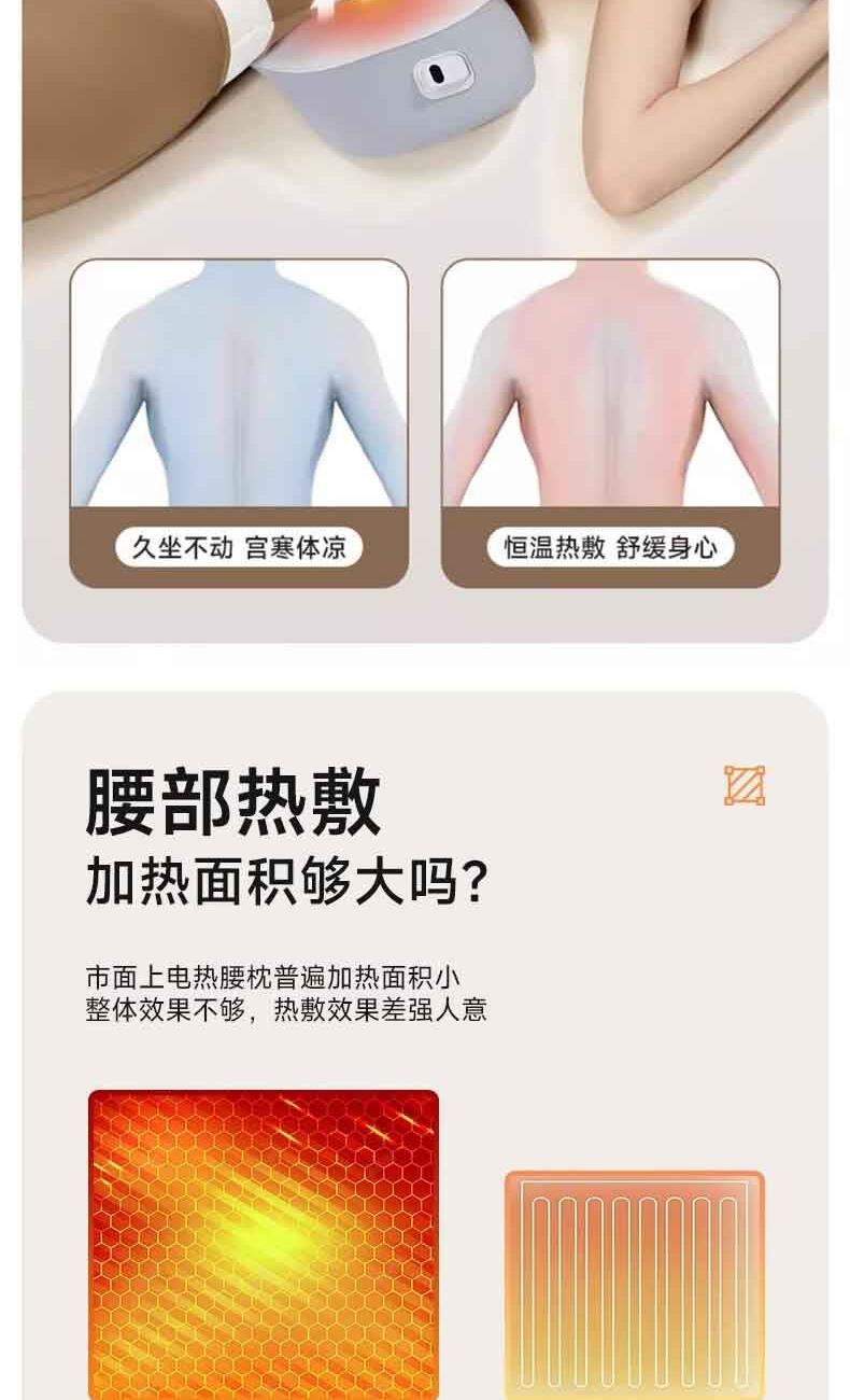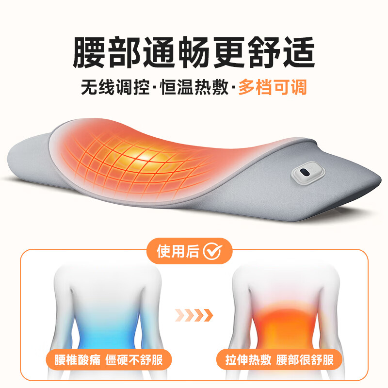 【轴向拉伸】改善“腰椎突出”,缓解“疼痛僵硬”。 【3维度拉伸】分区拉伸, 3D无死角,腰椎呵护。 【巴斯夫进口记忆棉】间隙更小,吸收冲击动能,不易变形。 【新科技面料】体感细腻,柔弹健康面料。 【可控温】热敷,三档控温: 45度、55度、65度,温暖您的身心。 【智能定时】设计: 15分钟、30分钟、45分钟,到点停止加热。