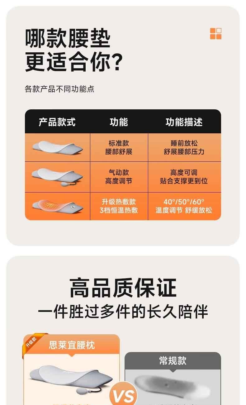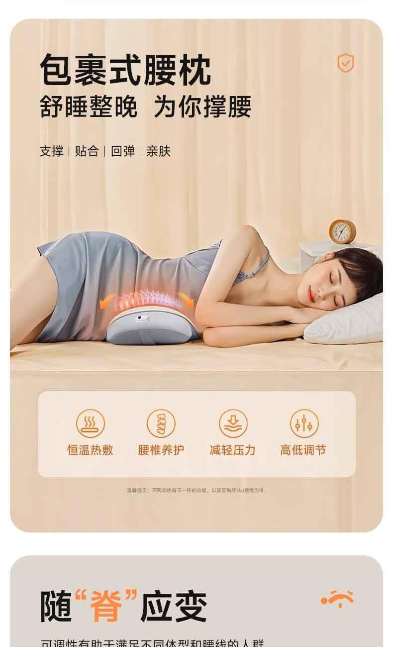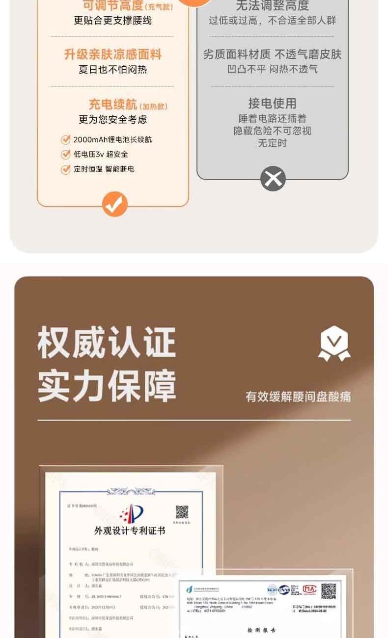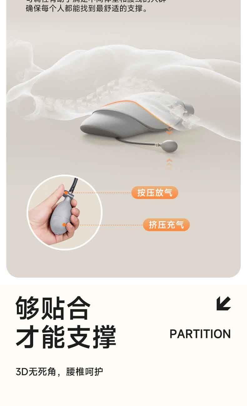 【轴向拉伸】改善“腰椎突出”,缓解“疼痛僵硬”。 【3维度拉伸】分区拉伸, 3D无死角,腰椎呵护。 【巴斯夫进口记忆棉】间隙更小,吸收冲击动能,不易变形。 【新科技面料】体感细腻,柔弹健康面料。 【可控温】热敷,三档控温: 45度、55度、65度,温暖您的身心。 【智能定时】设计: 15分钟、30分钟、45分钟,到点停止加热。