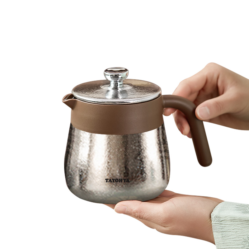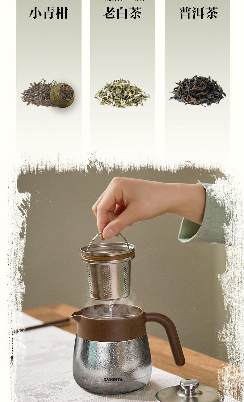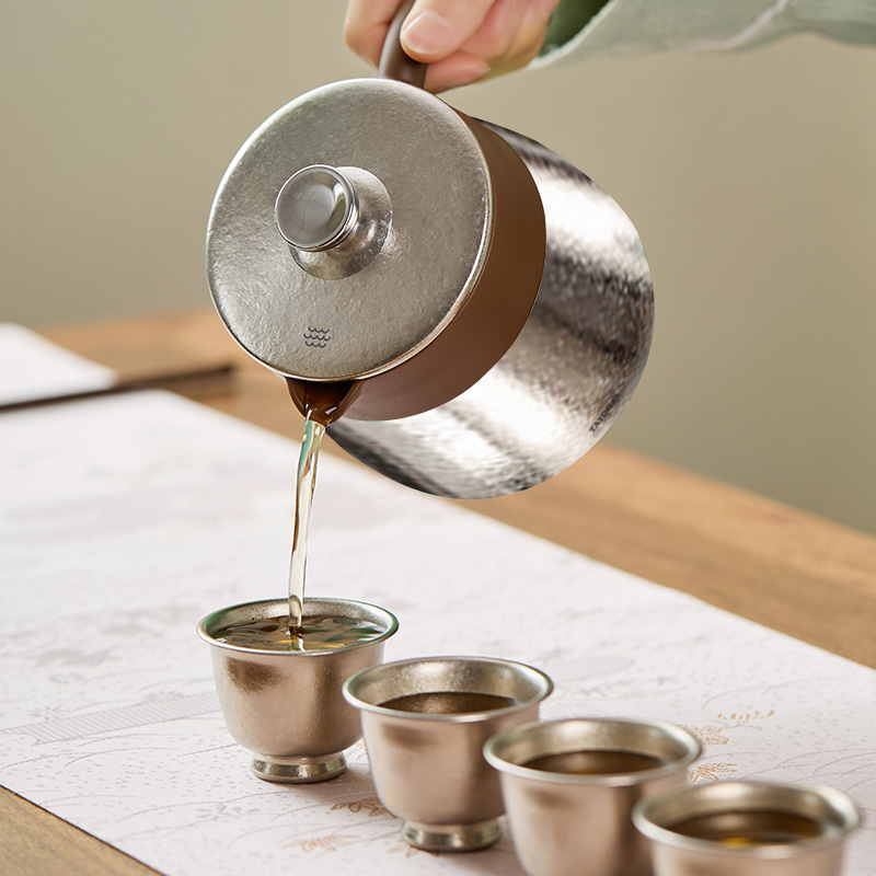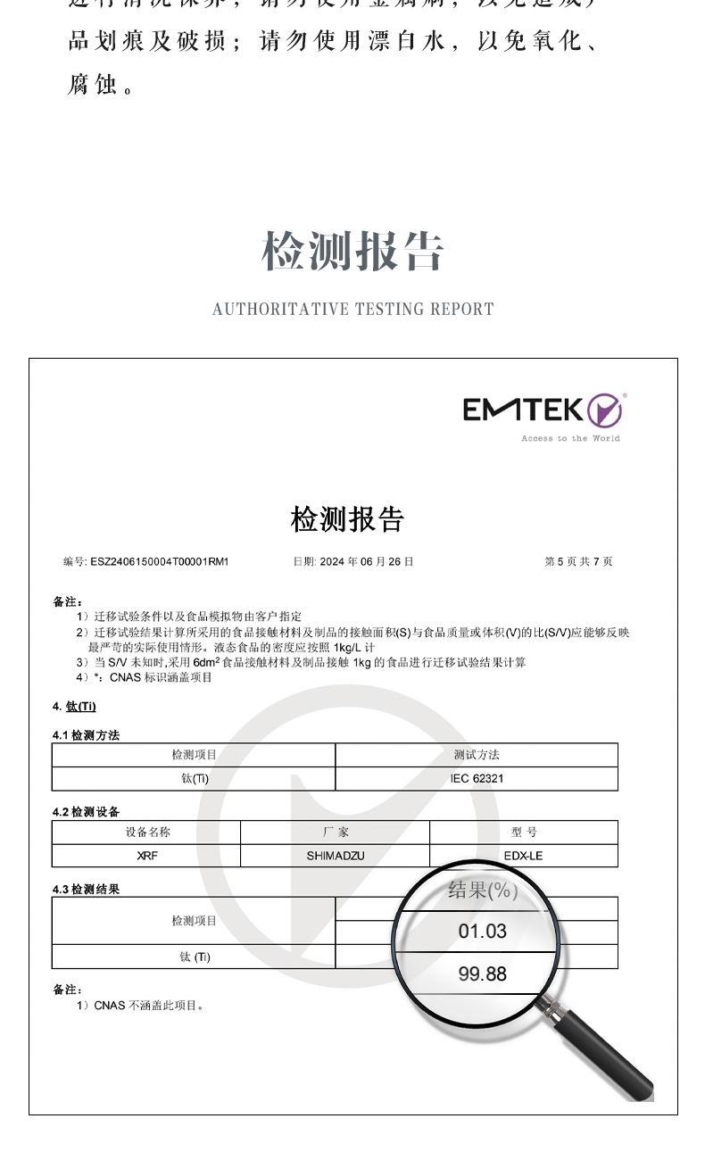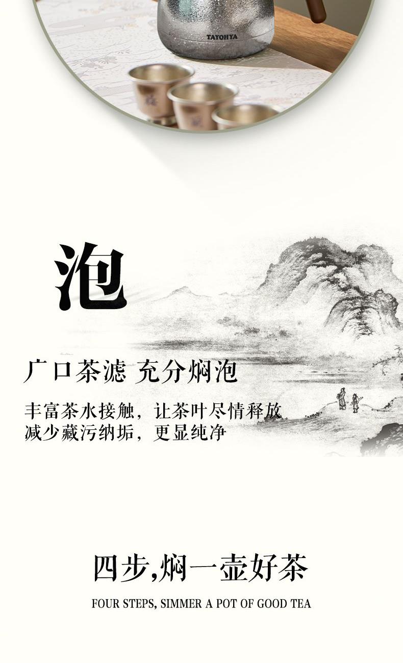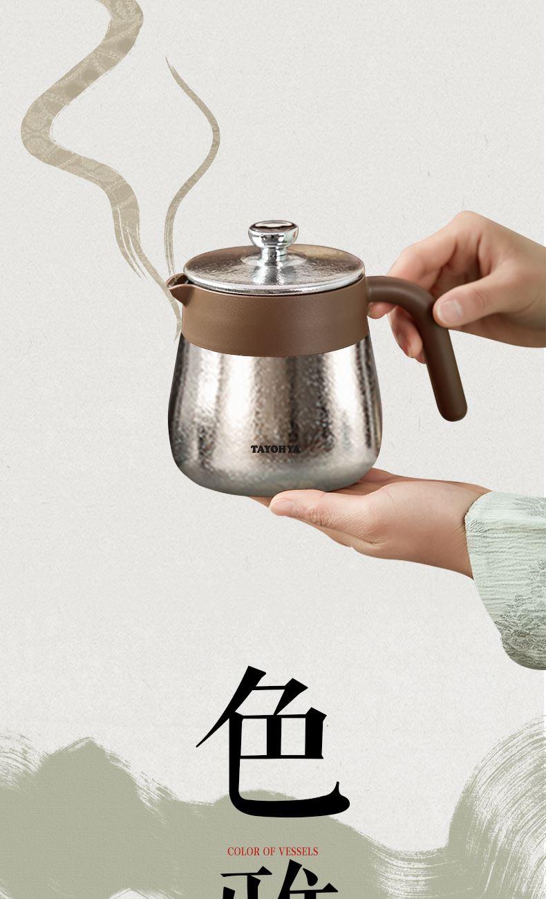 产品型号:TA040301064ZZ 颜色分类:钛本色 容 量:600ml 产品配置:焖茶壶X1/茶承X1/小杯X4 装 箱 数:6PCS 金属材质:99%纯钛(Ti) 茶仓滤网:99%纯钛(Ti) 把手材质:食品级PP(聚丙烯) 包装方式:礼盒包装