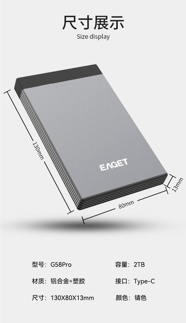 (EAGET)忆捷G58pro高速传输商务移动硬盘2TB