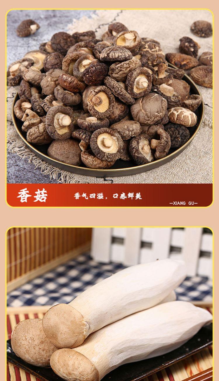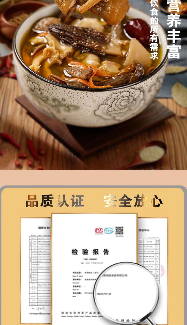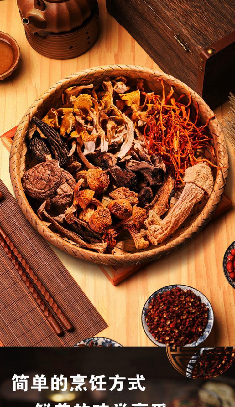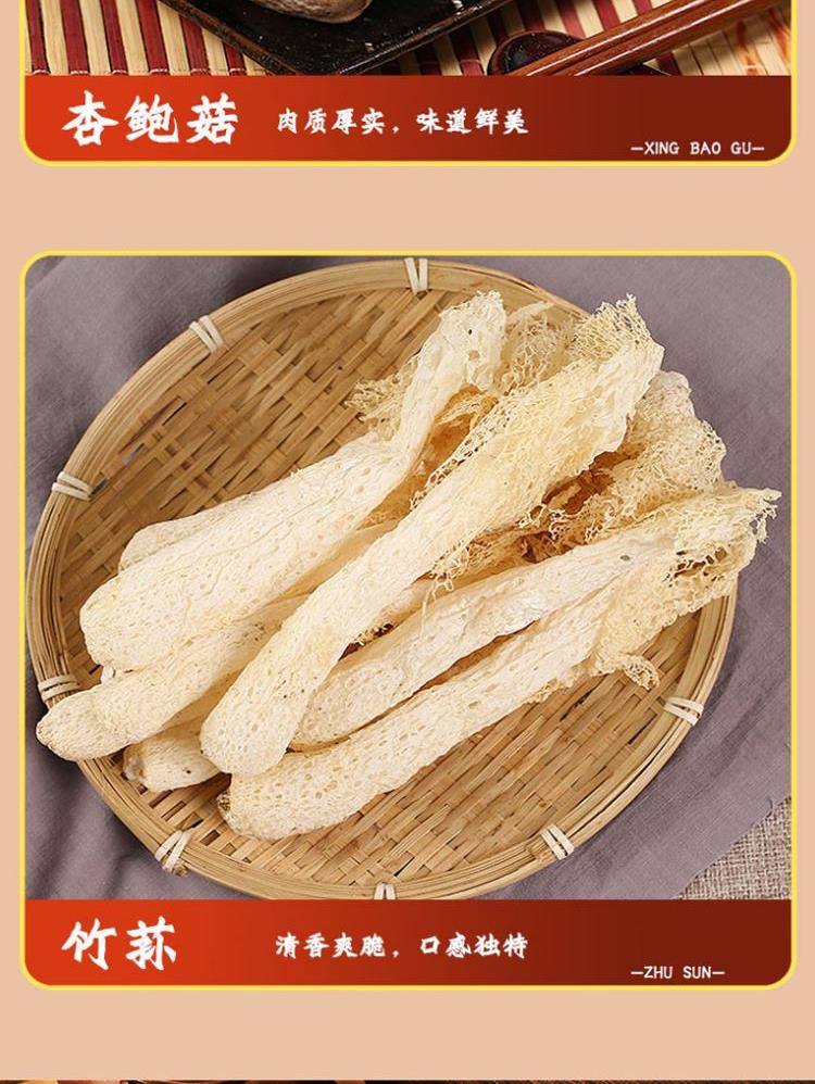 配置: 精选黑木耳100g/精选猴头菇100g/精选鲍鱼菇150g/精选杏鲍菇150g/精选香菇100g/精选桂圆250g 净重:850g 简介:山珍尊品,品质礼盒,常年品质坚守,只为美味如初。得天独厚的生长环境,深山孕育,自然采摘,采摘到成品,全程放心无污染。原生态,真滋补,无硫无添,自然晾晒,营养搭配。人工挑选,菇体肥大,肉感厚实,口感脆嫩,汤汁色泽棕黄清澈。