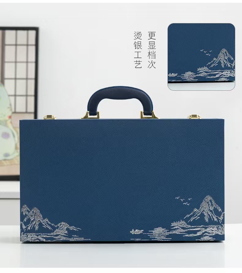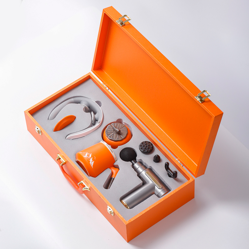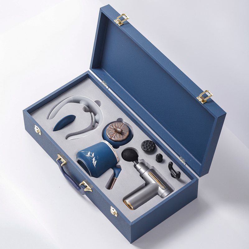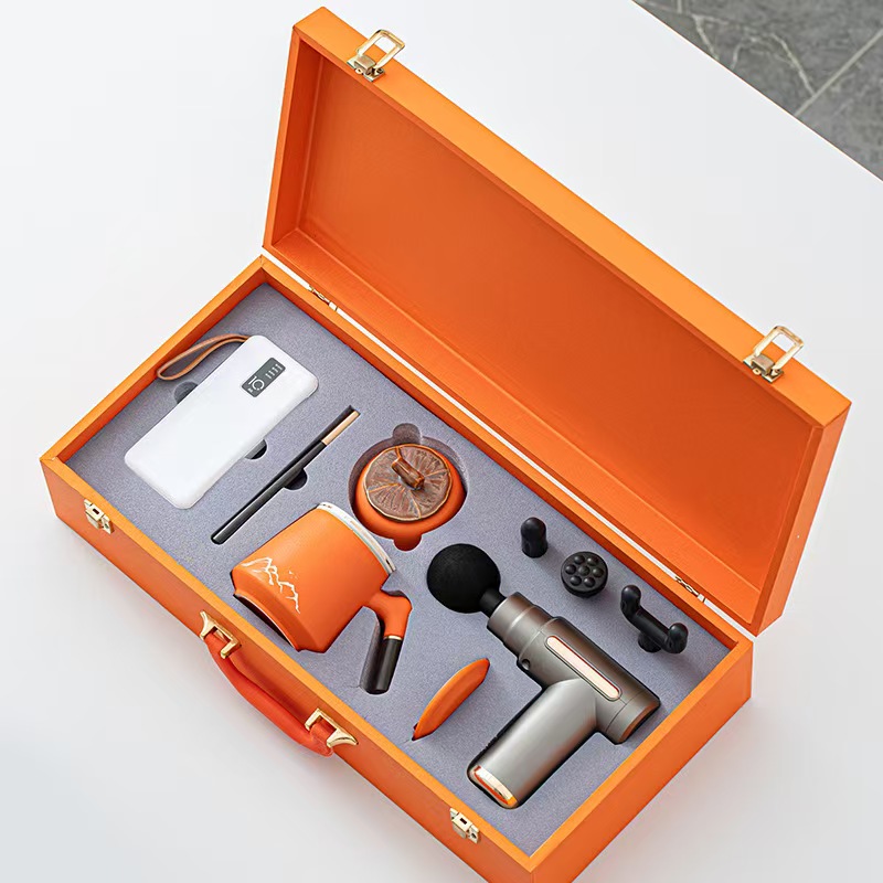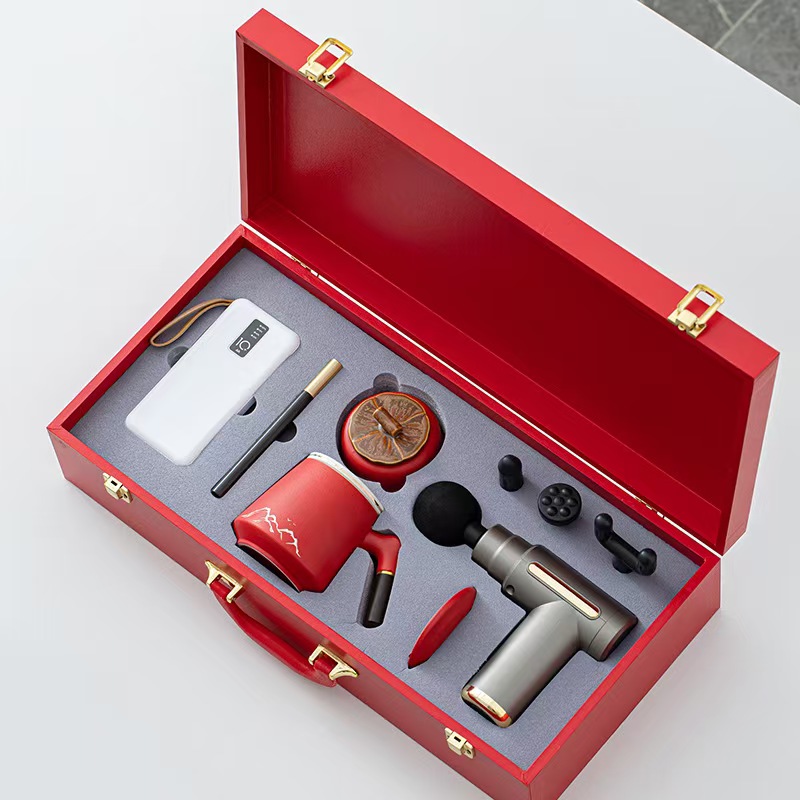 配 制: 1筋膜枪 办公杯 茶叶罐 颈椎仪或移动充电宝 笔记本锦盒 规格:筋膜枪:17.4*14cm 办公杯14.5*10.4cm 茶叶罐9.6*9cm 颈椎仪:300毫安 礼盒47.9*23cm 工艺:商务实用性礼品,上班族刚需产品。专业级筋膜枪,6档变速,4种按摩头,液晶触屏,深度缓解肌肉酸胀。移动充电宝,1W毫安,自带四根可拆线,内置手机支架轻薄便携,大容量智能电芯,续航更长充电更快。