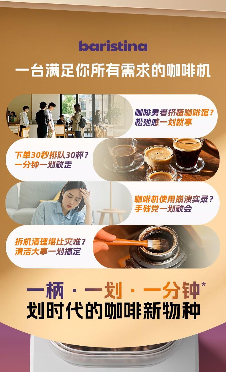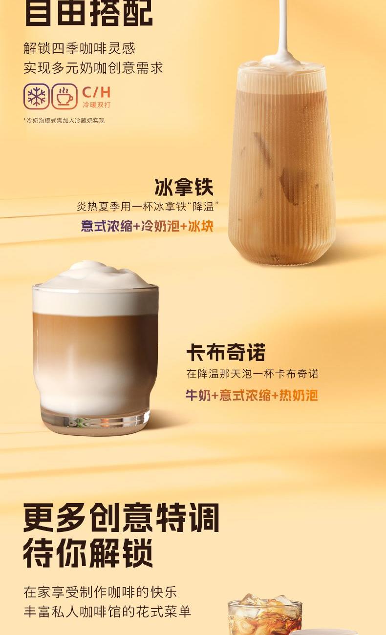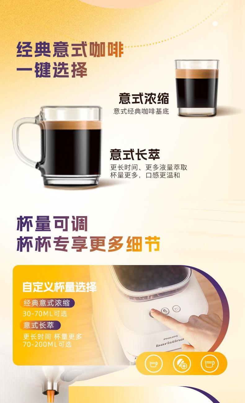 6丶提供意式浓缩咖啡、长萃咖啡、加浓意式咖啡、加浓长萃咖啡饮品选择,满足个性化需求。