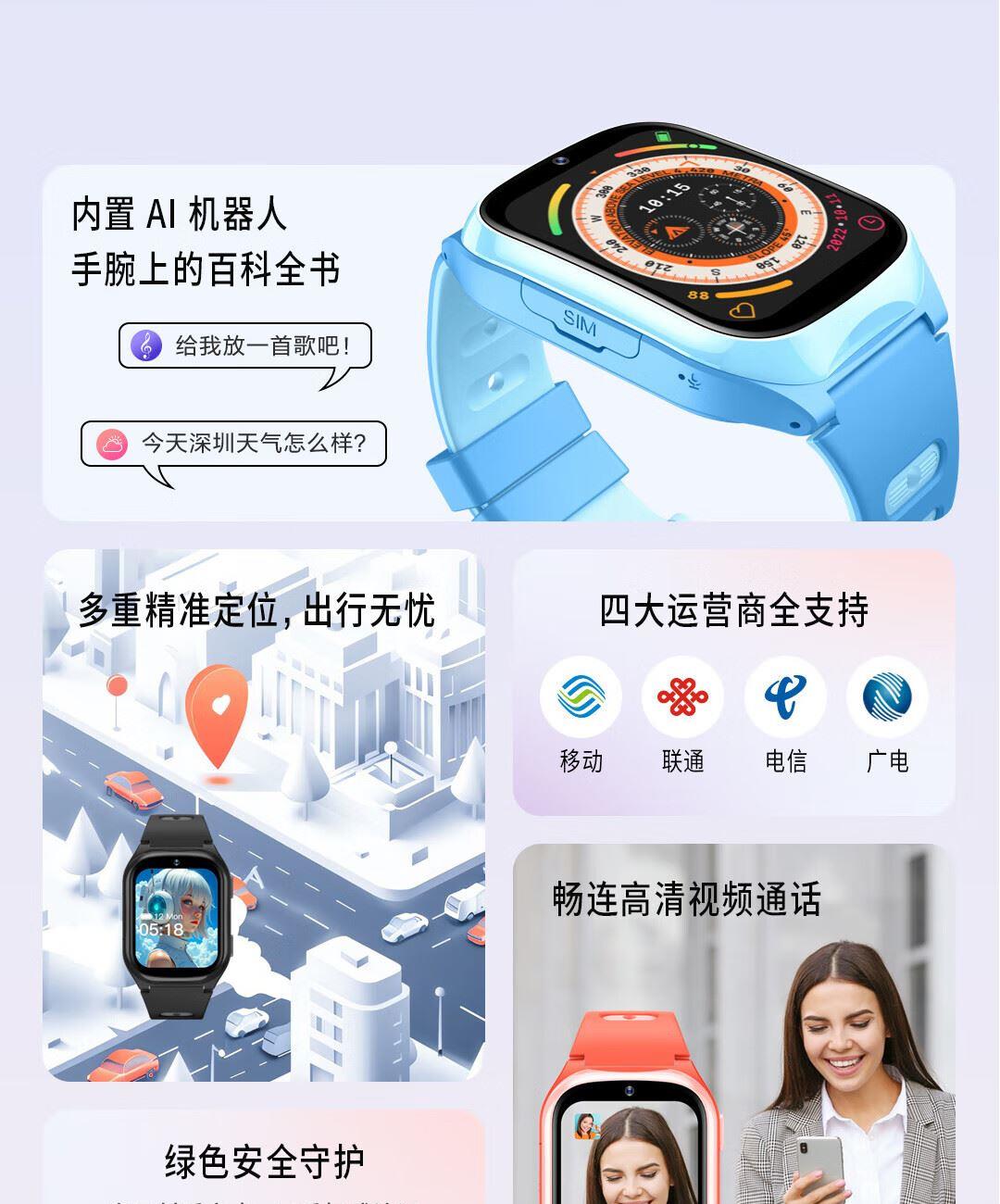 表面镜片:全透玻璃镜面 防水等级:IP67 电池容量:800mAh 电池电压:3.8V 显示屏类型:IPS 显示屏尺寸:1.69英寸 系统:RTOS 存储容量:8M 充电:磁吸充电线 支持网络:4G全网通 功能:支付功能 小度AI 定位GPS系统 前置摄像头
