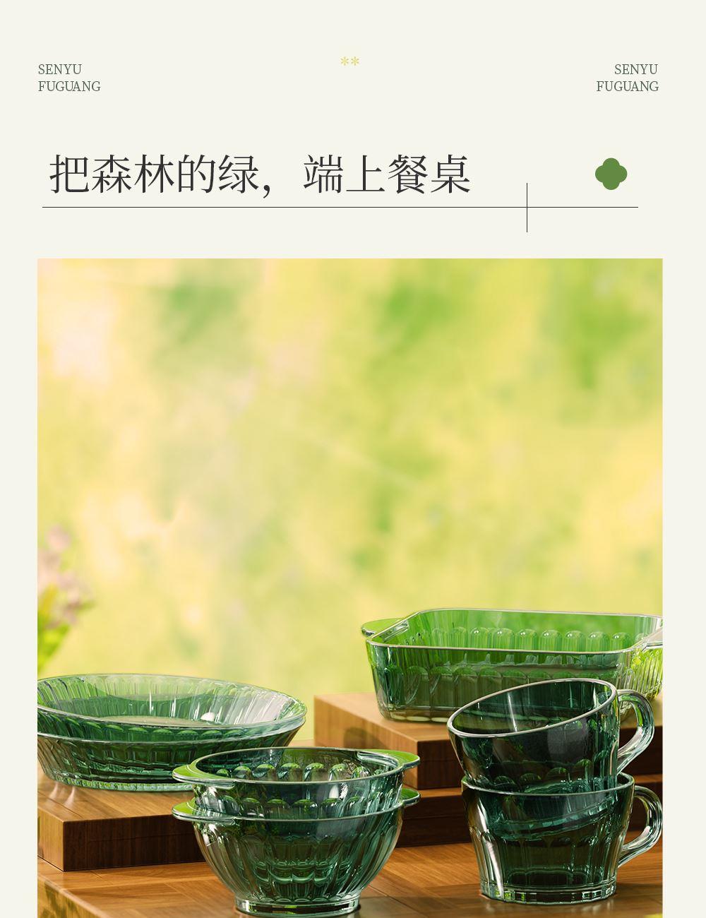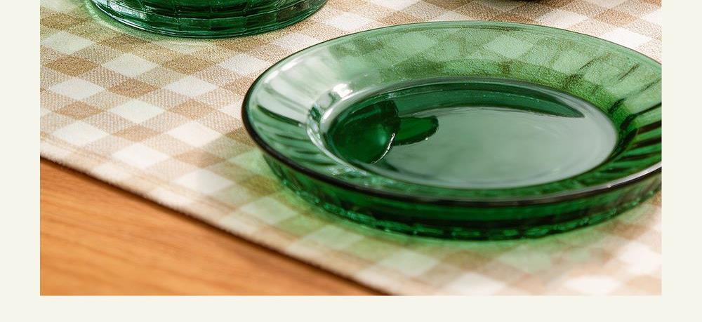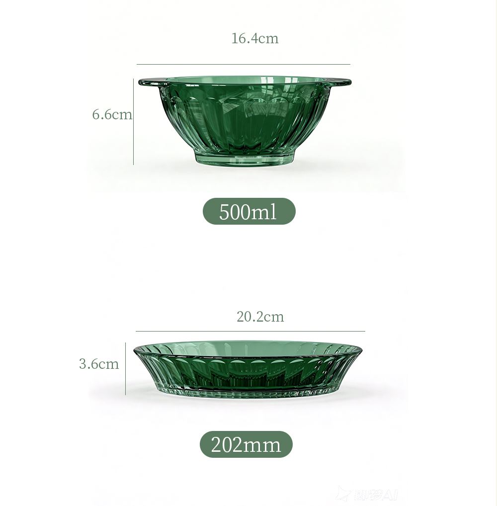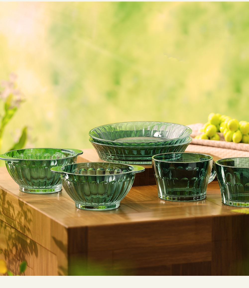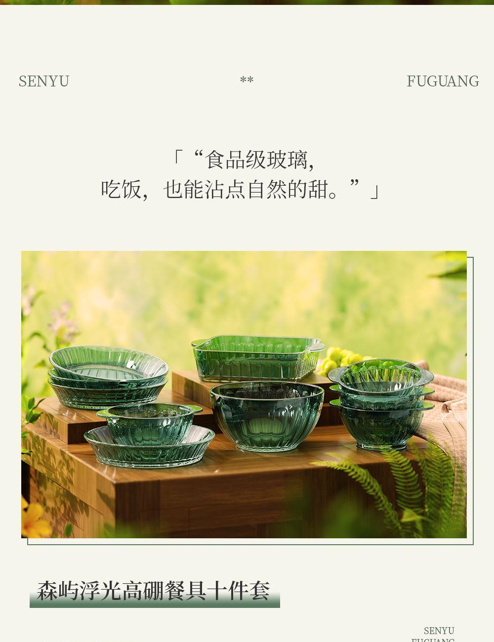 材 质:高硼色料玻璃 产品参数:小碗*4、盘子*4、大碗*1、烤盘*1 产品卖点:1.它是原色玻璃:不是表面涂层,杜绝铅镉等重金属析出。 2.它是高硼硅材质:能从冰箱直接进烤箱,不炸裂,不娇气。 3.它是顶配厚度:竖纹肌理,重工加厚,手感无与伦比。 只服务懂行、追求极 致生活品质的客户。礼盒发售中,详情私信。