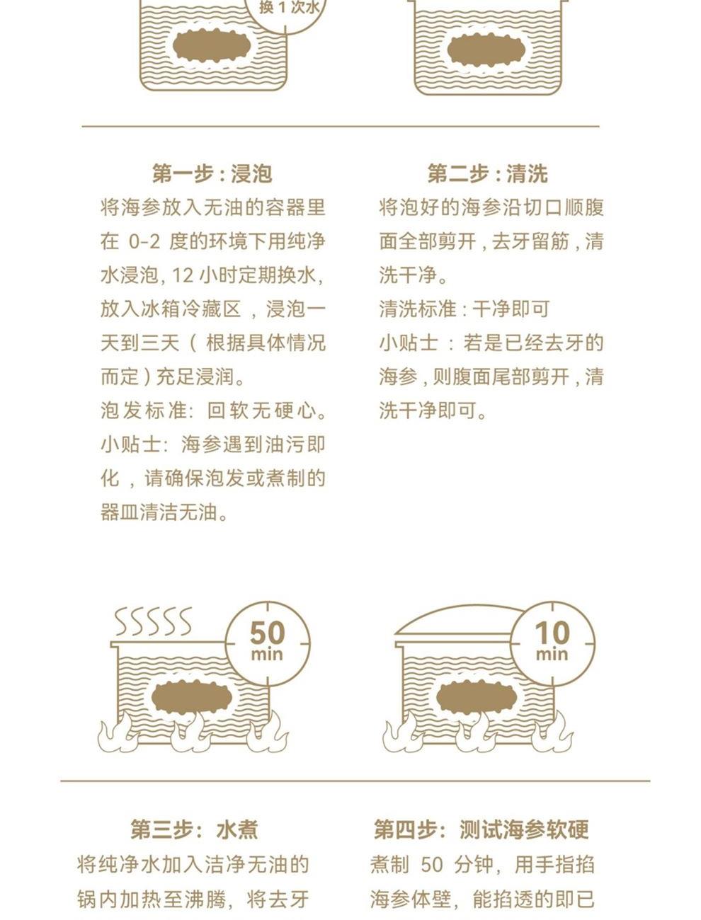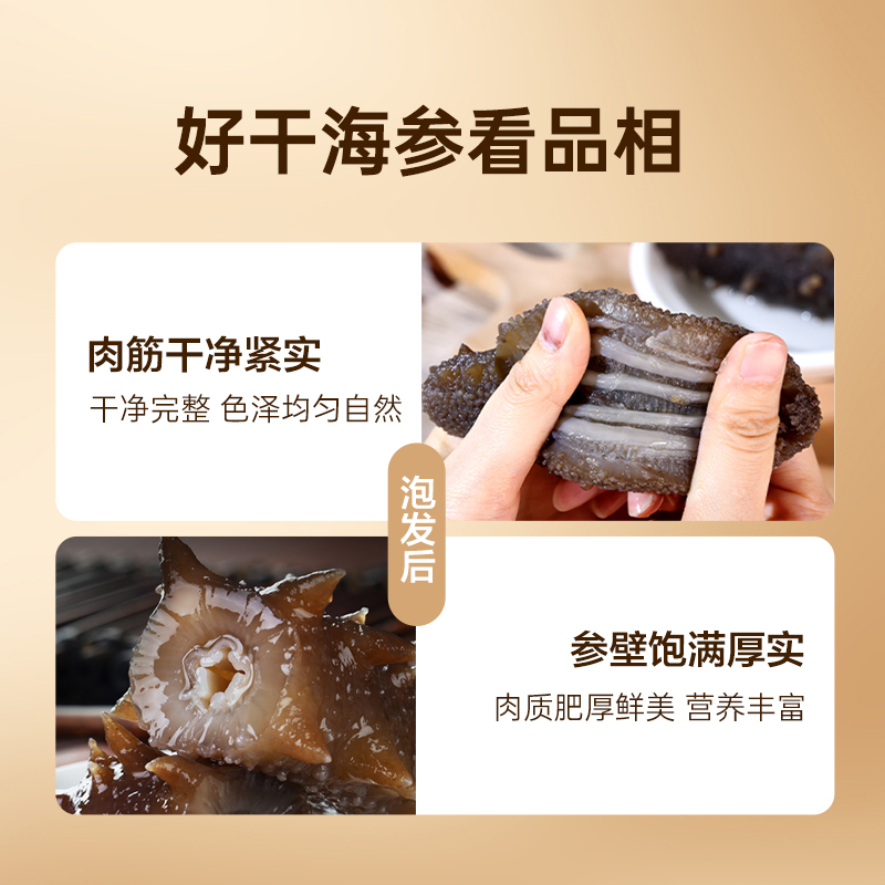 - 淡干工艺保留了海参的营养成分。通过自然晾晒或者低温烘干,减少了海参营养在加工过程中的流失。