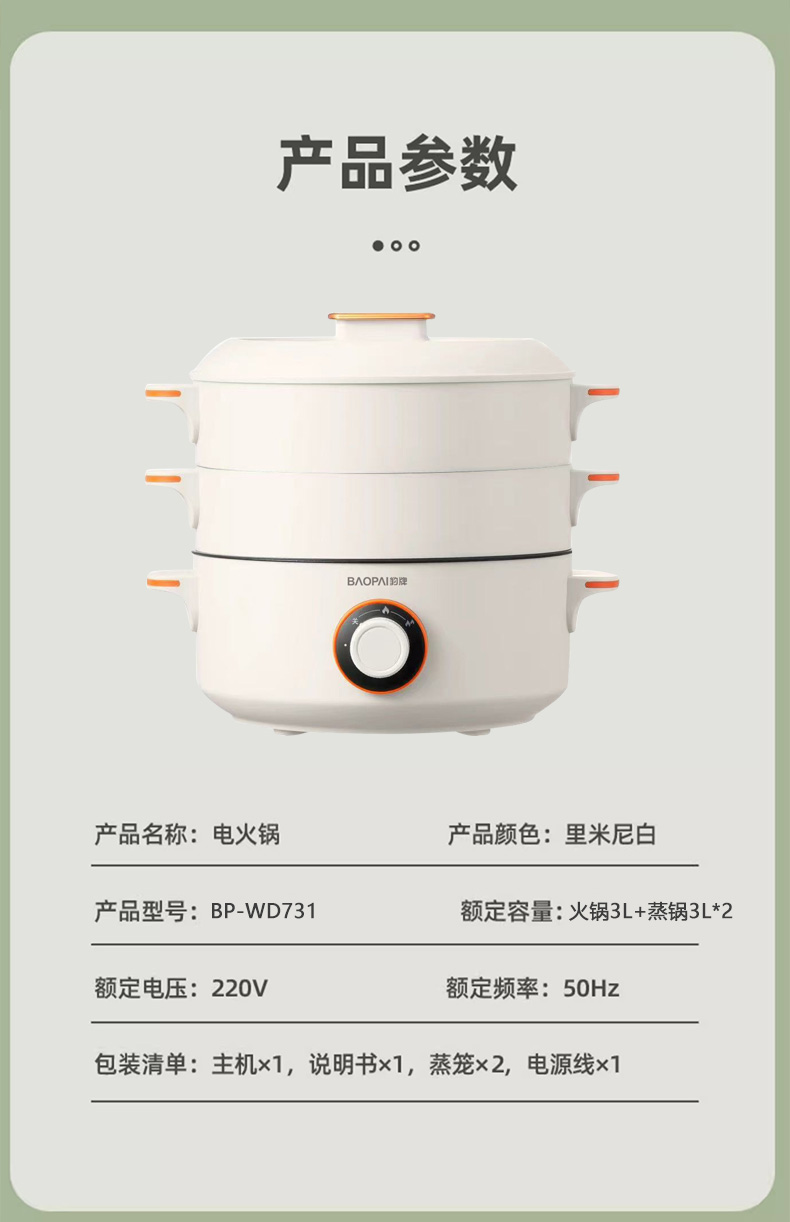 豹牌多功能电蒸锅BP-WD731