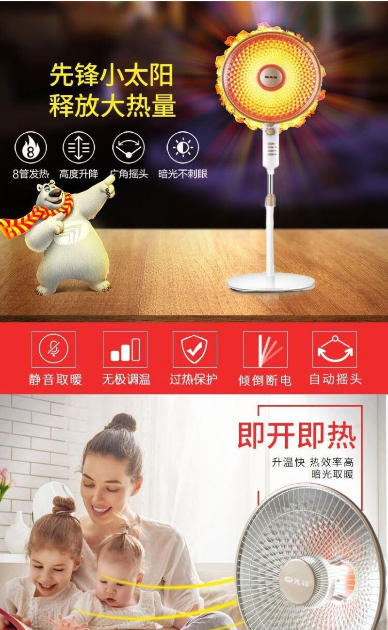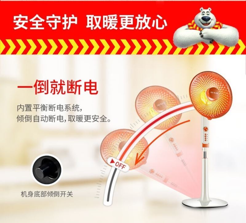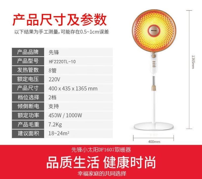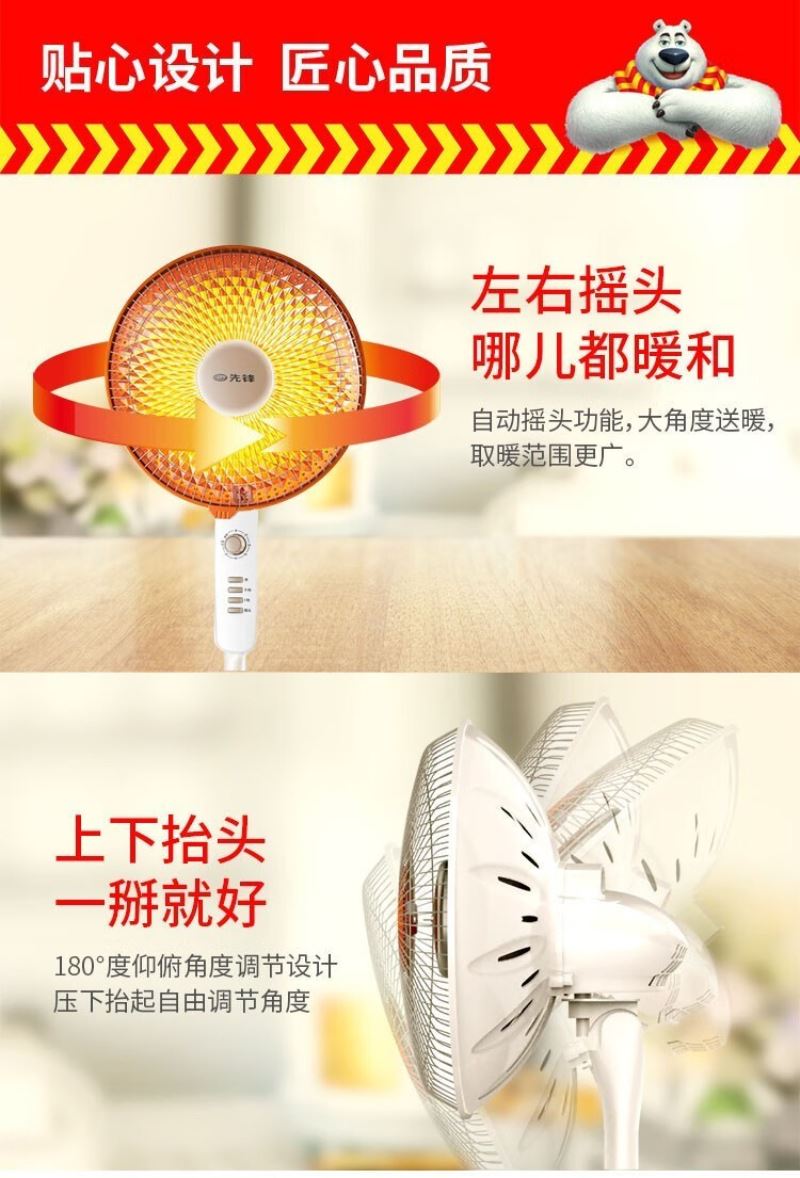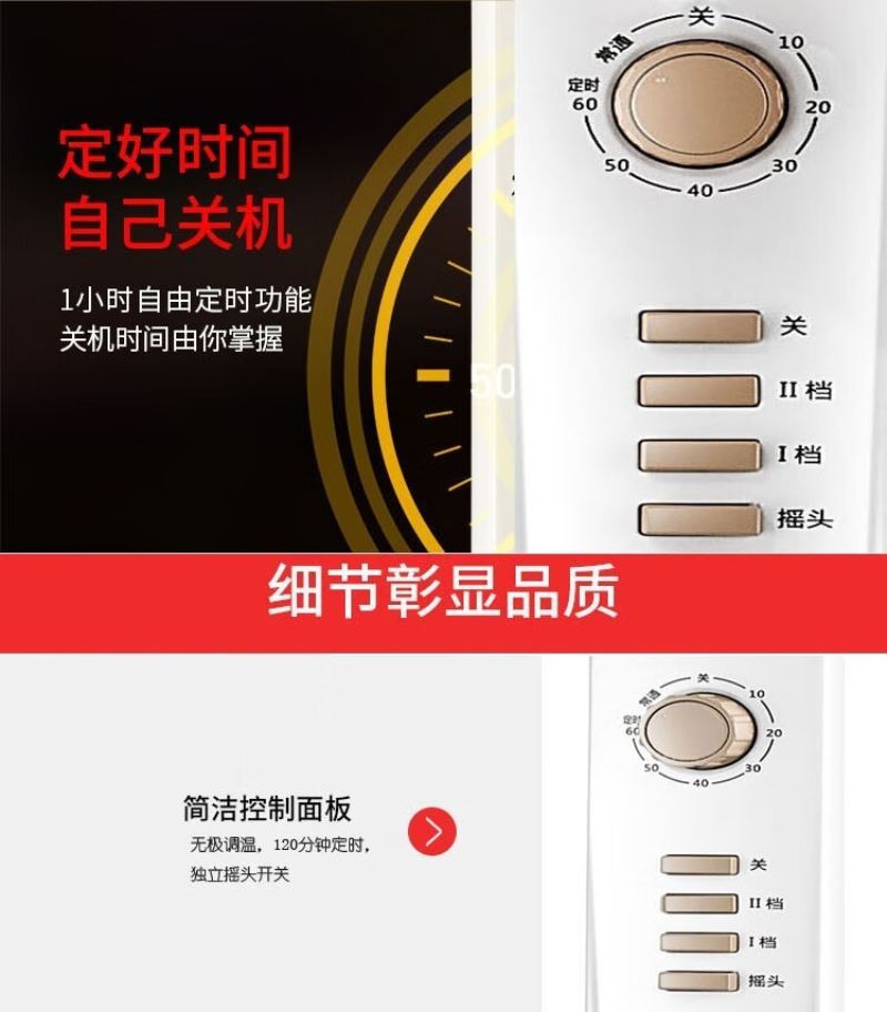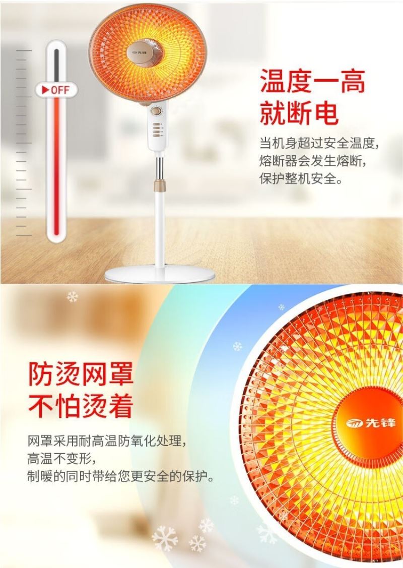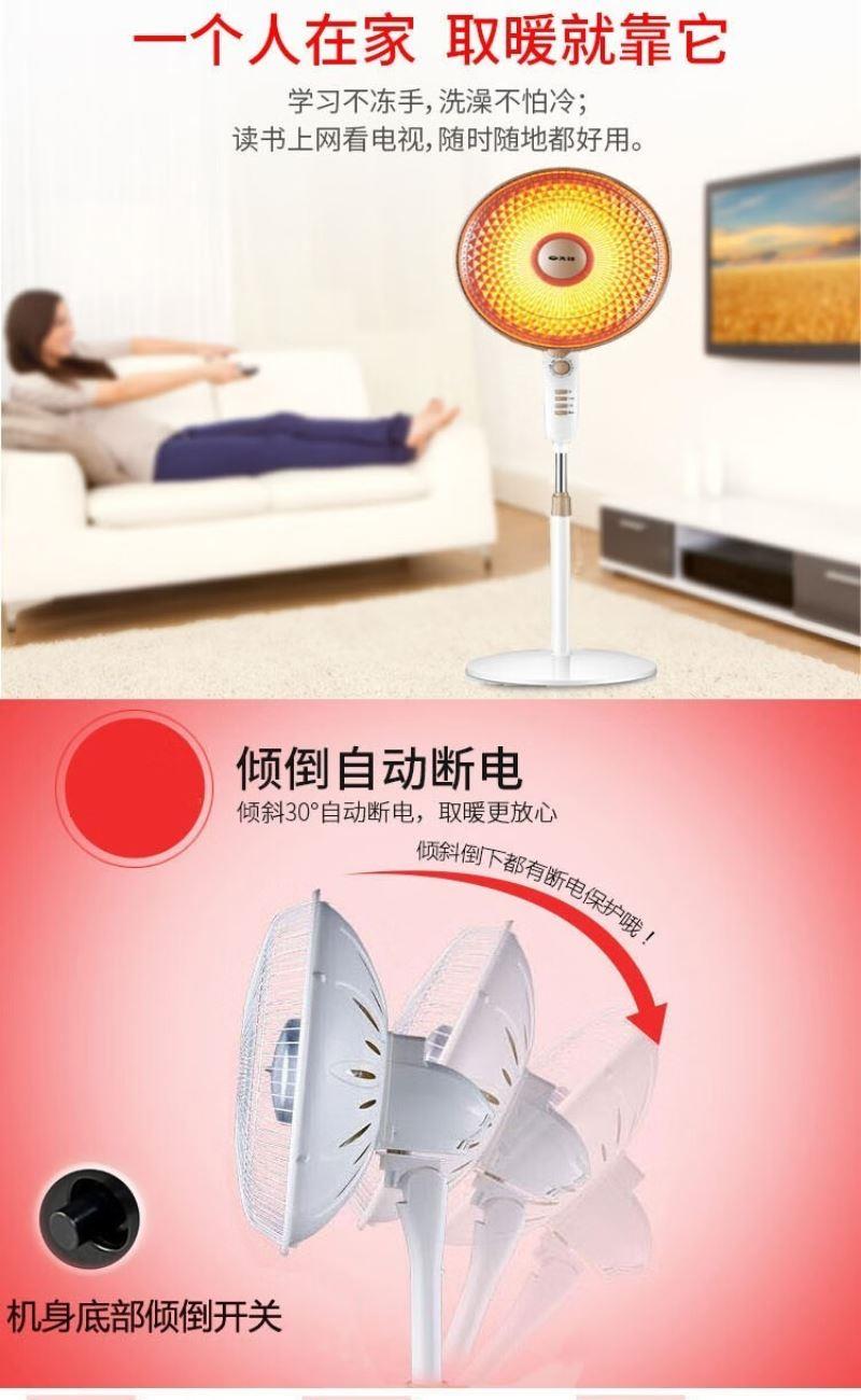 支持功能:具备倾倒断电功能,使用更安全;同时支持摇头功能,可扩大取暖范围。 加热方式:远红外加热,能快速升温。 控制方式:机械版,操作简单便捷。 档位:2 档,可根据需求调节热度。 适用面积:11-20㎡,适合在卧室、客厅等空间使用。 功率:1000 瓦特,功率适中,取暖效果较好且相对节能。