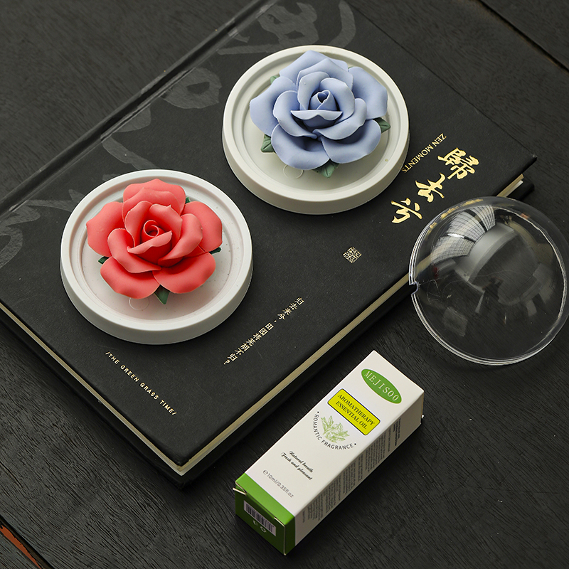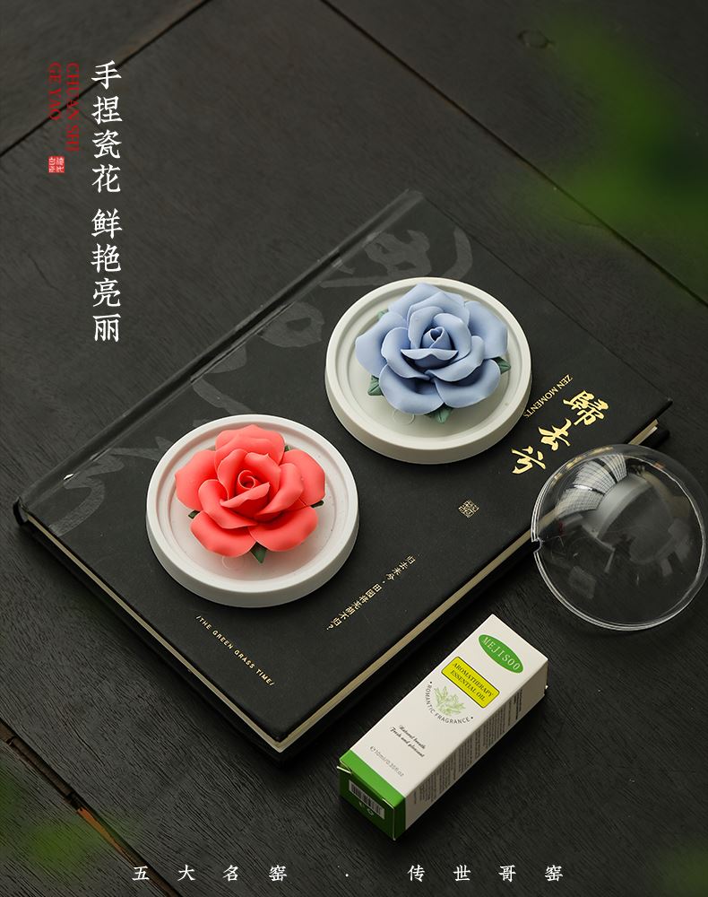 非遗手捏瓷花栩栩如生,搭配香熏精油,兼具观赏性及实用性。