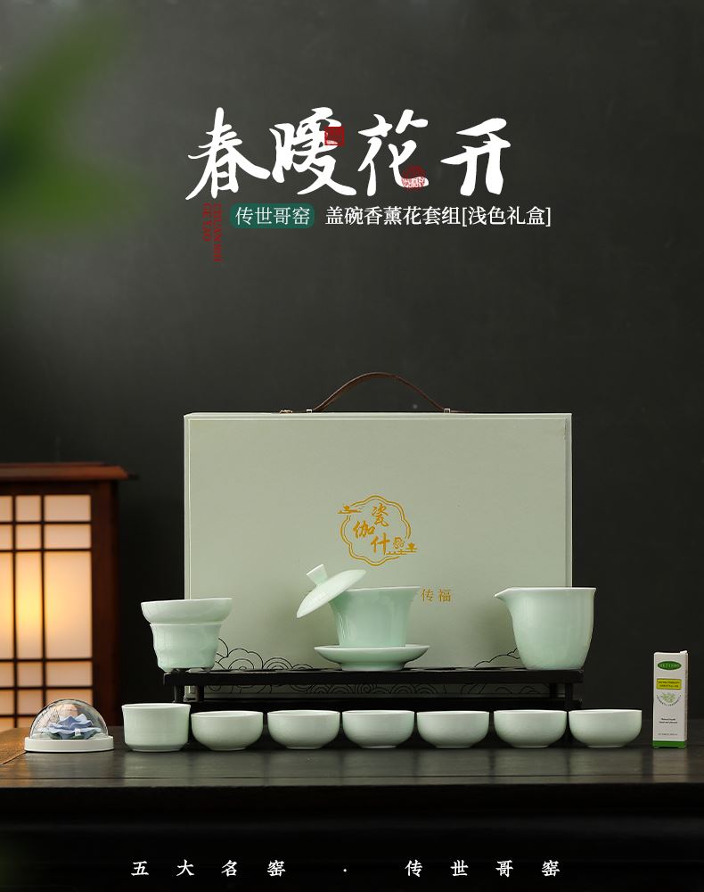 瓷伽什春暖花开哥窑茶具非遗香薰