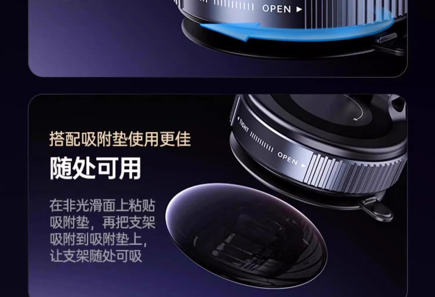 产品材质:锌合金++塑胶 颜色:黑色/白色支持设备:4.7英寸以上智能手机适用:汽车中控台,玻璃面,金属面,光滑的瓷砖和不锈钢面、桌面 折叠尺寸:64*64*40mm 包装尺寸:79x38x90mm 整箱数量:100/箱 产品重量:100g