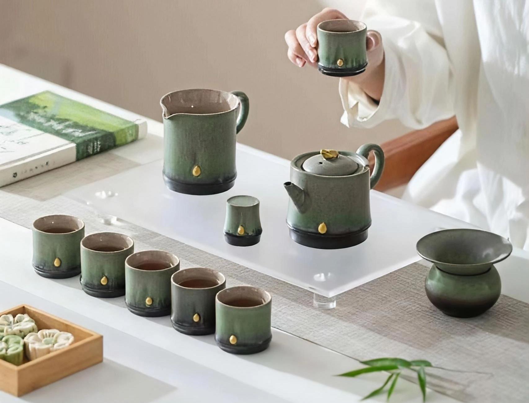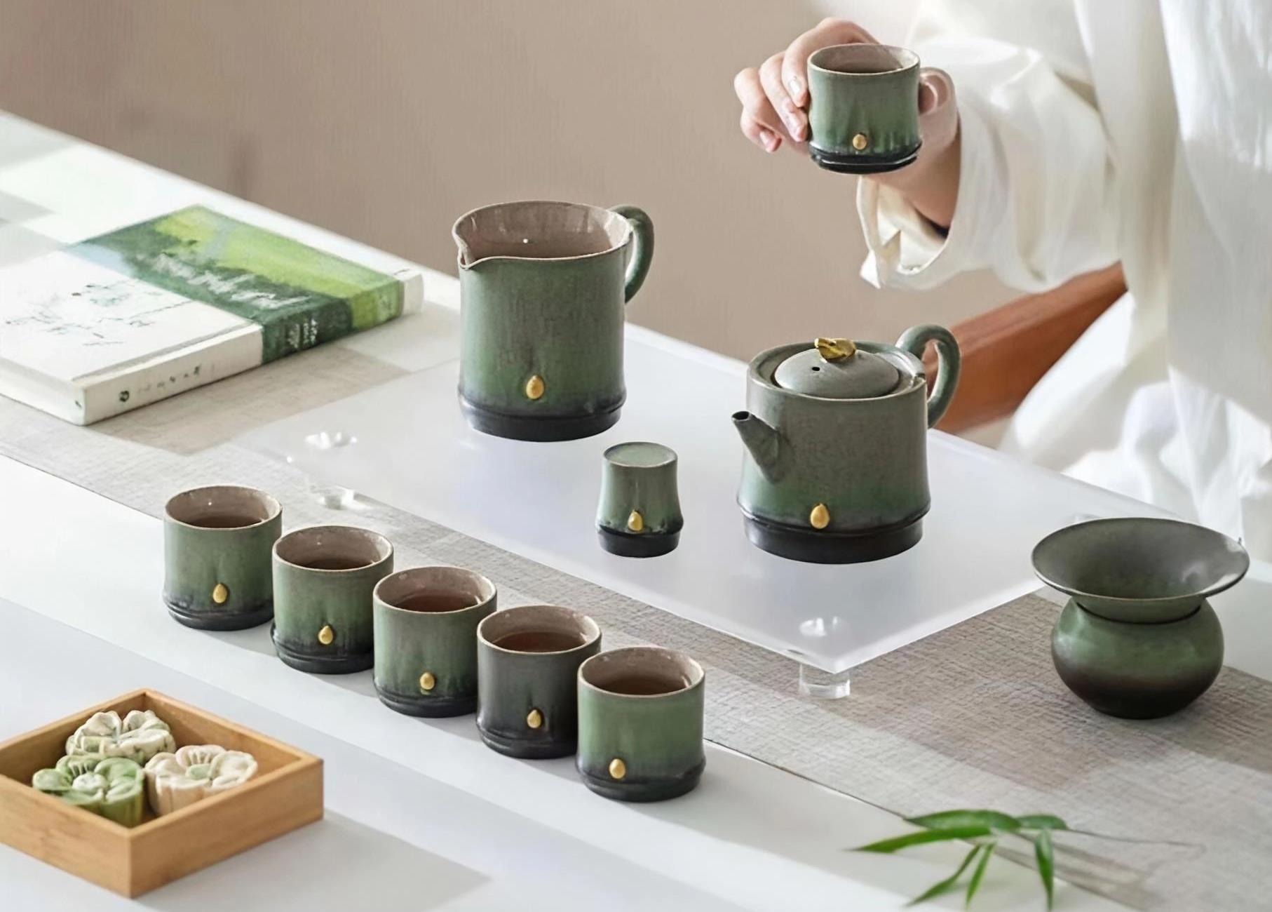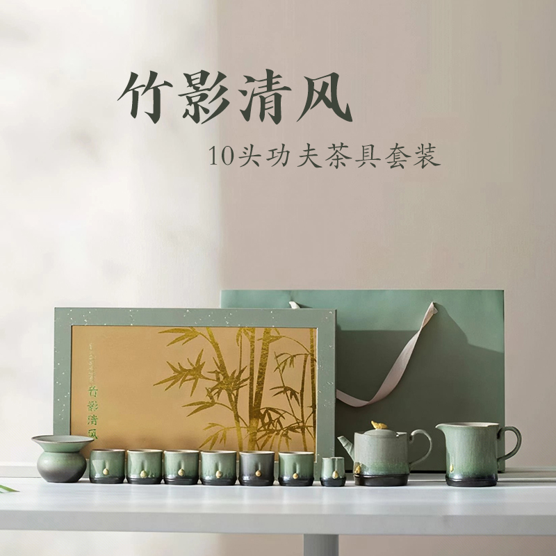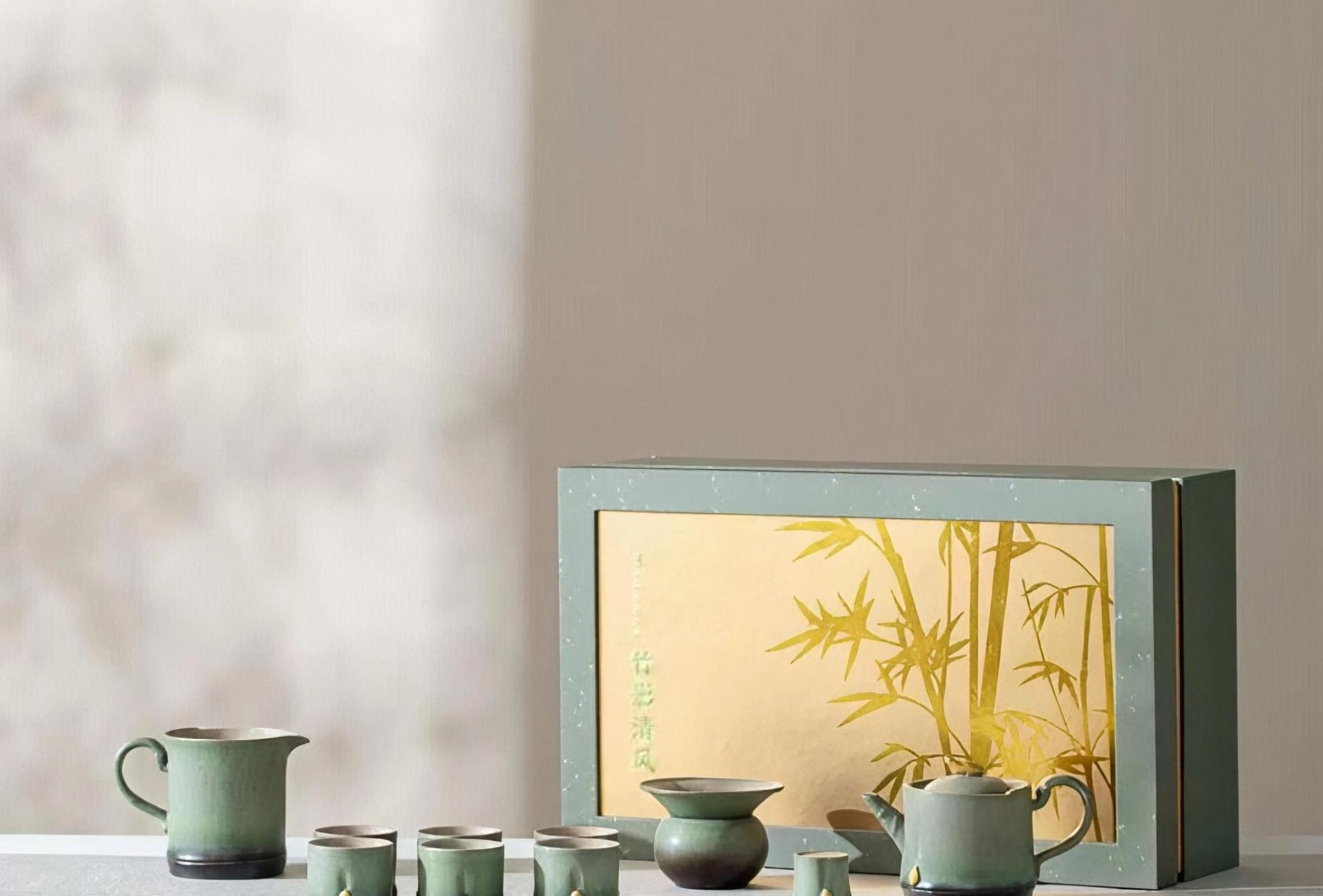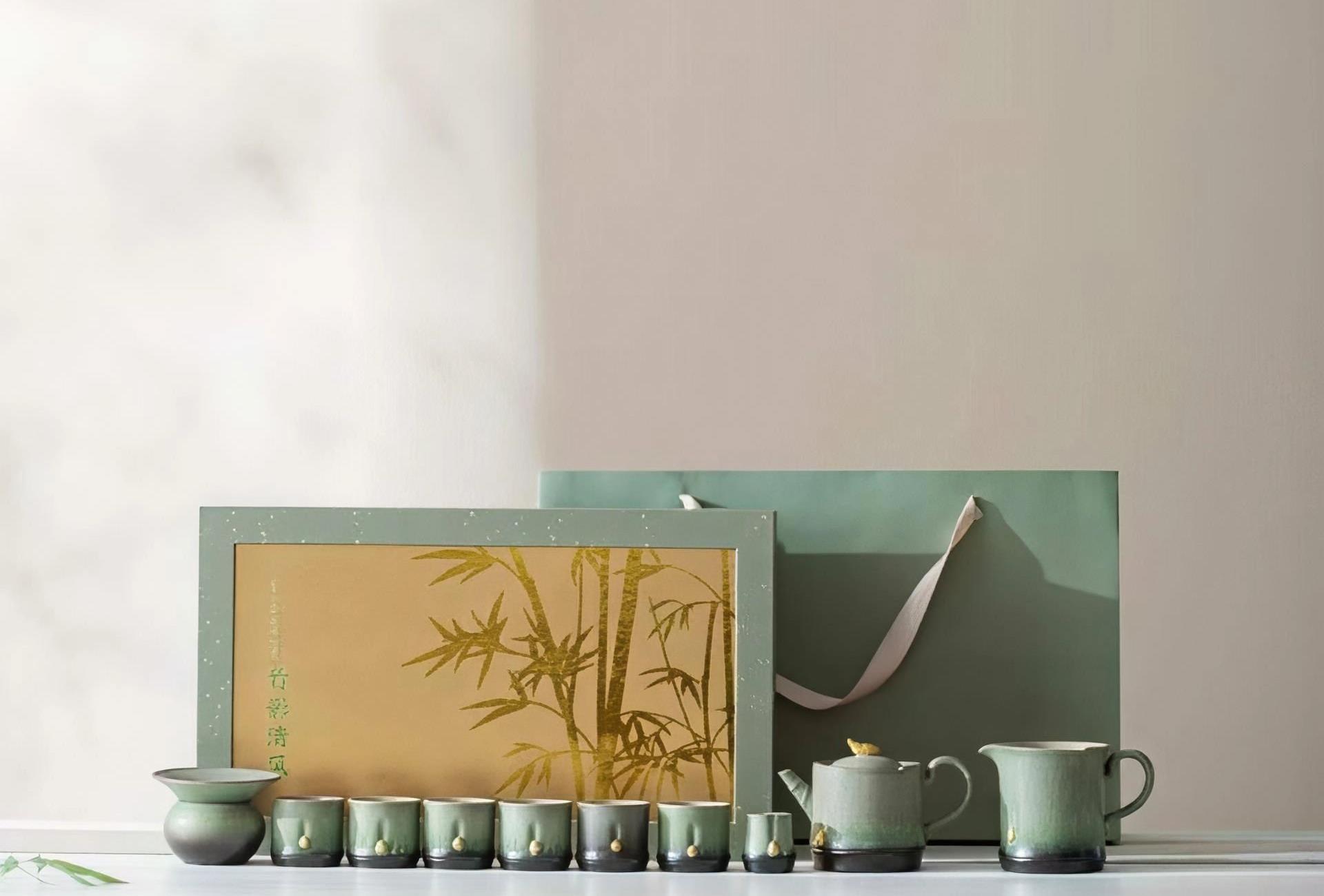 尾桥下窑故宫风文创陶瓷窑变竹影清风茶具套装开业年会商务伴手礼