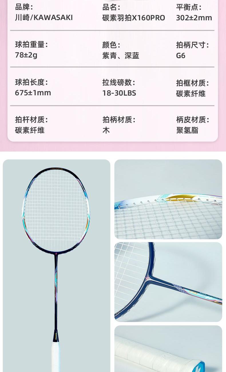 川崎羽毛球拍对拍X160-Pro蓝青色