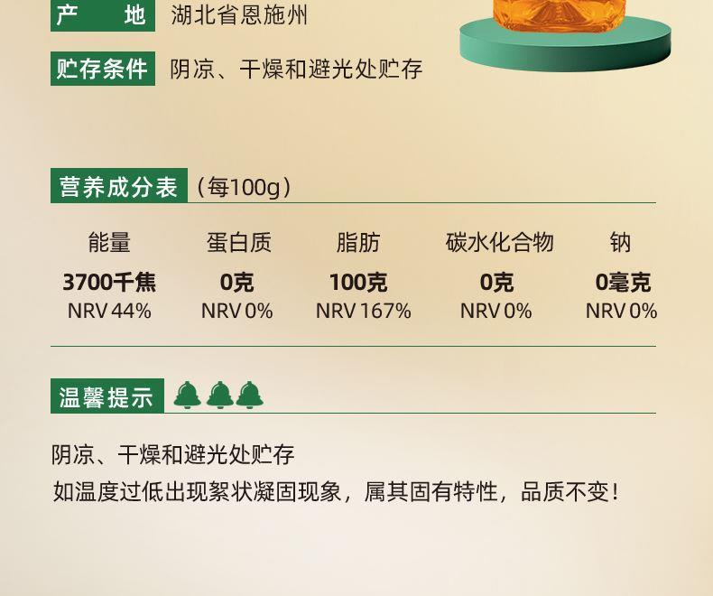 1、【原料】非转基因油菜籽为原料; 2、【加工工艺】采用压榨工艺,油品透亮; 3、【特点】烟点高、炒菜油烟少、低温下不易凝固等特点;菜籽油中还含有丰富的维生素E以及油酸、亚油酸、亚麻酸等;