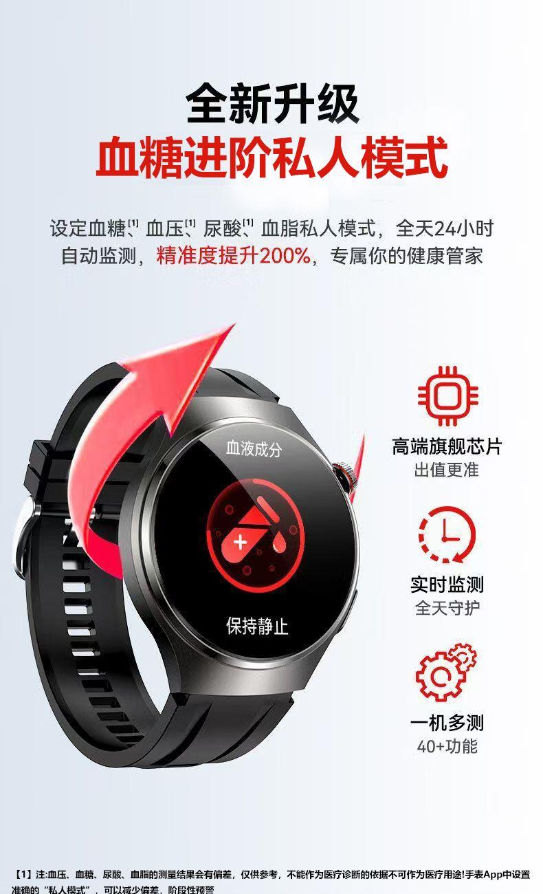 Ai辅诊报告、PPG血压监测、心率监测/超速预警、尿酸测量、血脂监测、血液成分测量、身体成分测量、血氧监测、24小时科学睡眠监测、体温监测、梅脱测量、呼吸训练、压力检测、女性健康(经期跟踪)、久坐提醒等健康功能。1、离线支付、NFC门禁、SOS紧急呼叫、50+运动模式、秒表、手电、计步、卡路里、距离、来电提醒、闹钟提醒、抬手亮屏、社交分享(微信、QQ、Facebook、Twitter)等、摇摇拍照、遥控音乐、蓝牙接听/拨打电话、消息推送、Siri拨号、查找手机、查找手环、表盘切换、IP68级防水