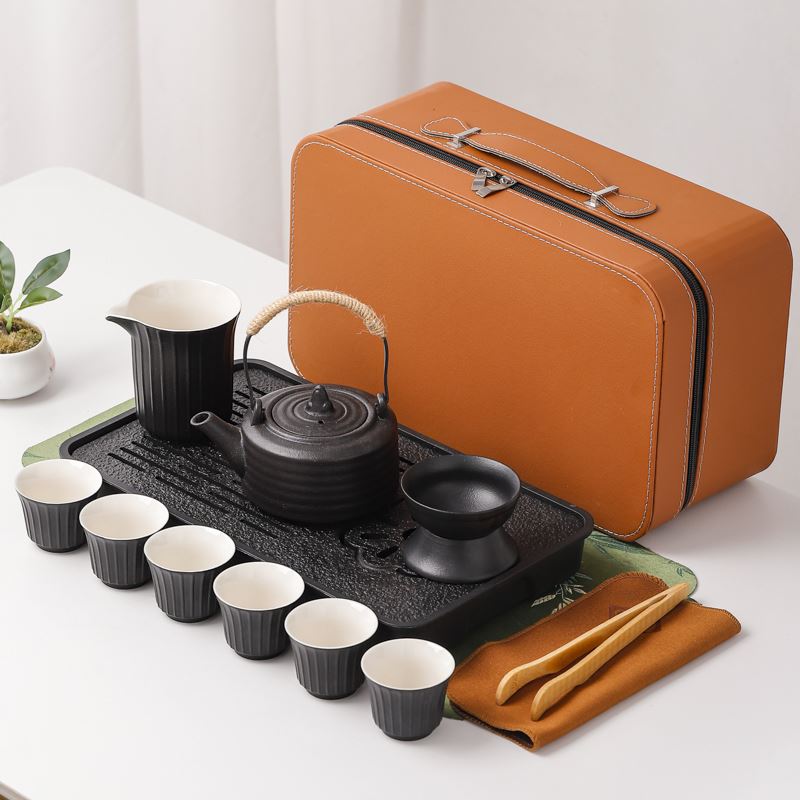鹏翼黑陶陆宝茶盘旅行茶具套装